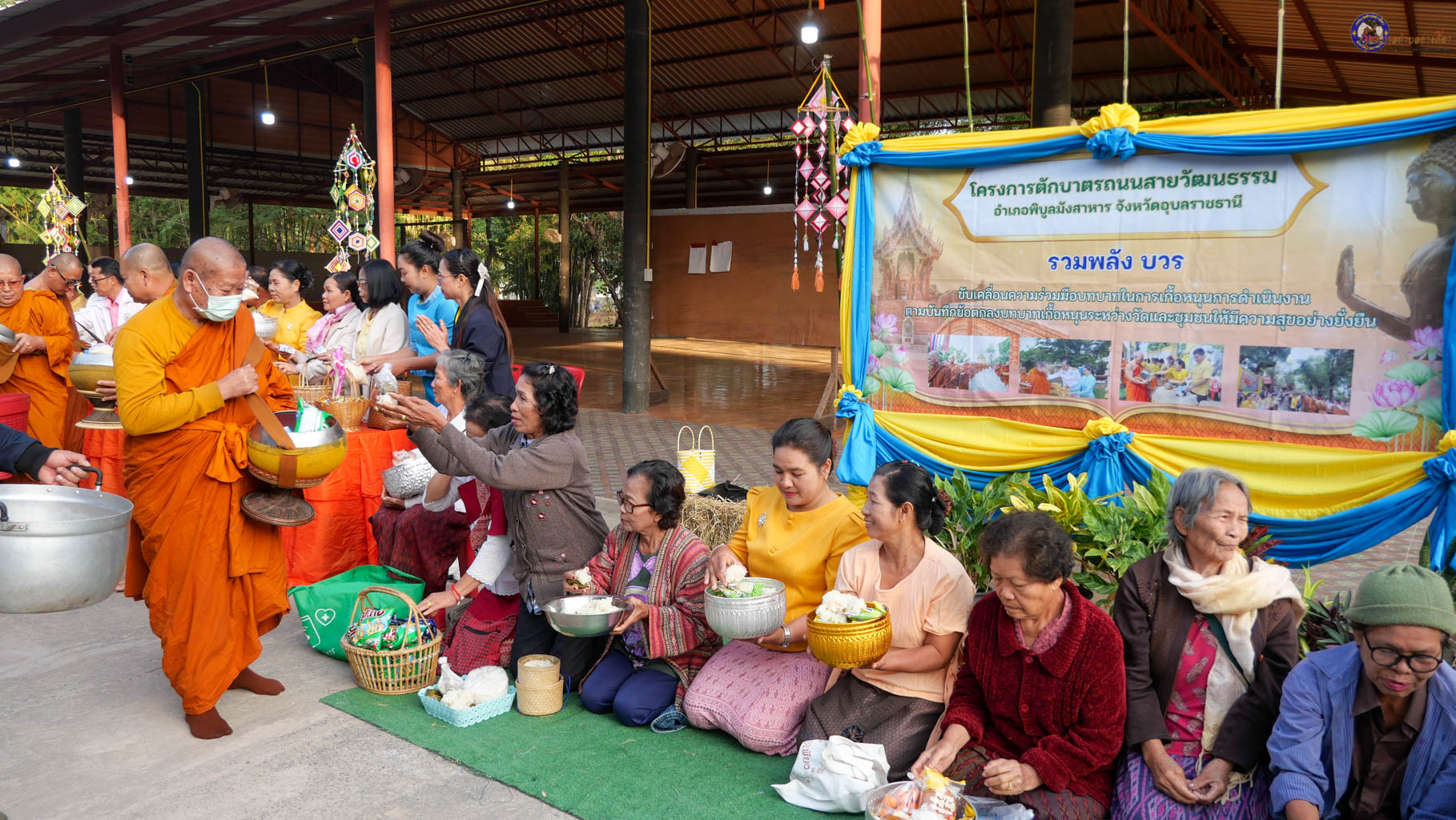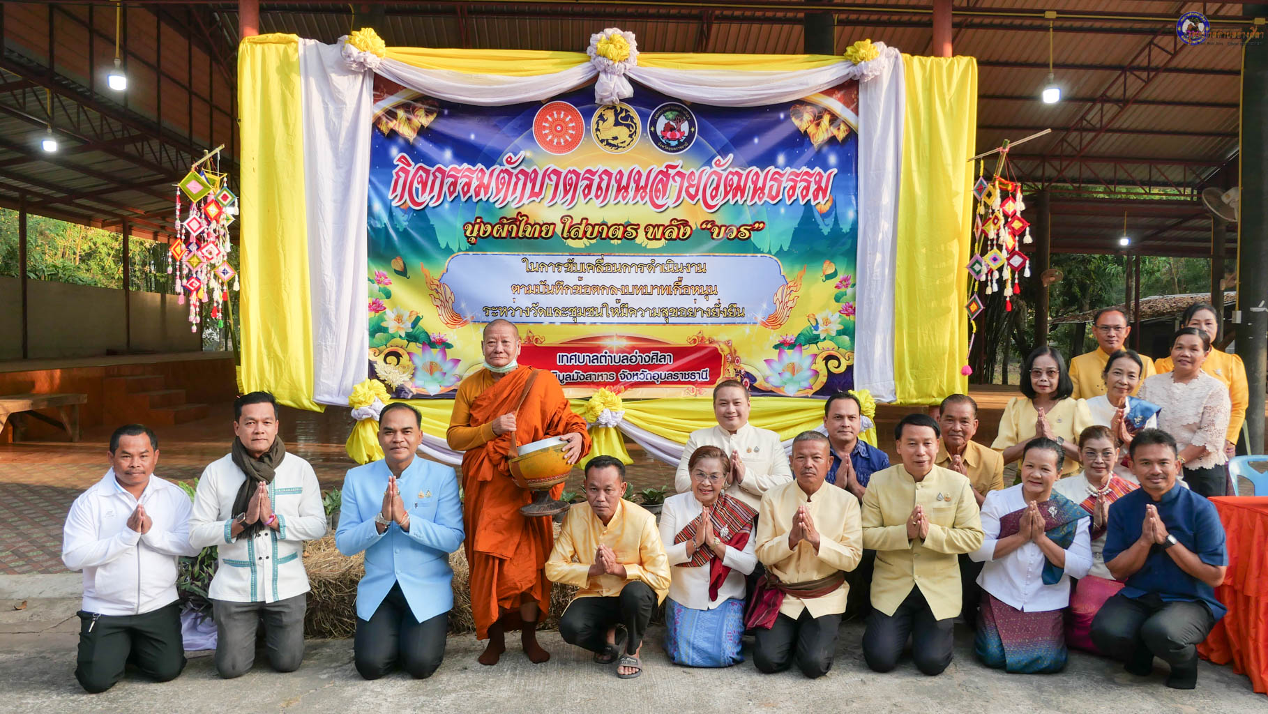 ทำบุญตักบาตรถนนสายวัฒนธรรม นุ่งผ้าไทย ใส่บาตร “พลังบวร” วัดศีลวิสุทธาราม