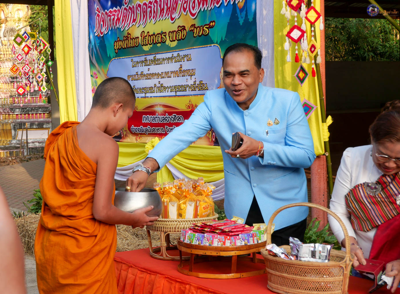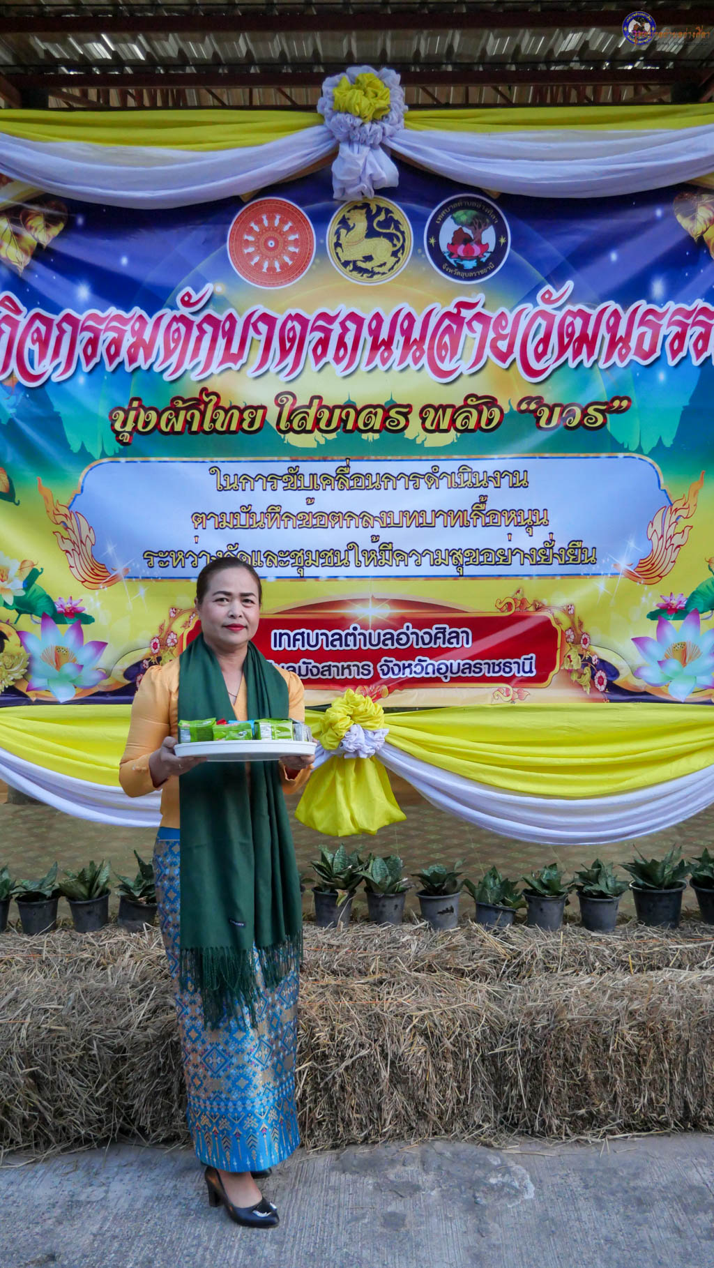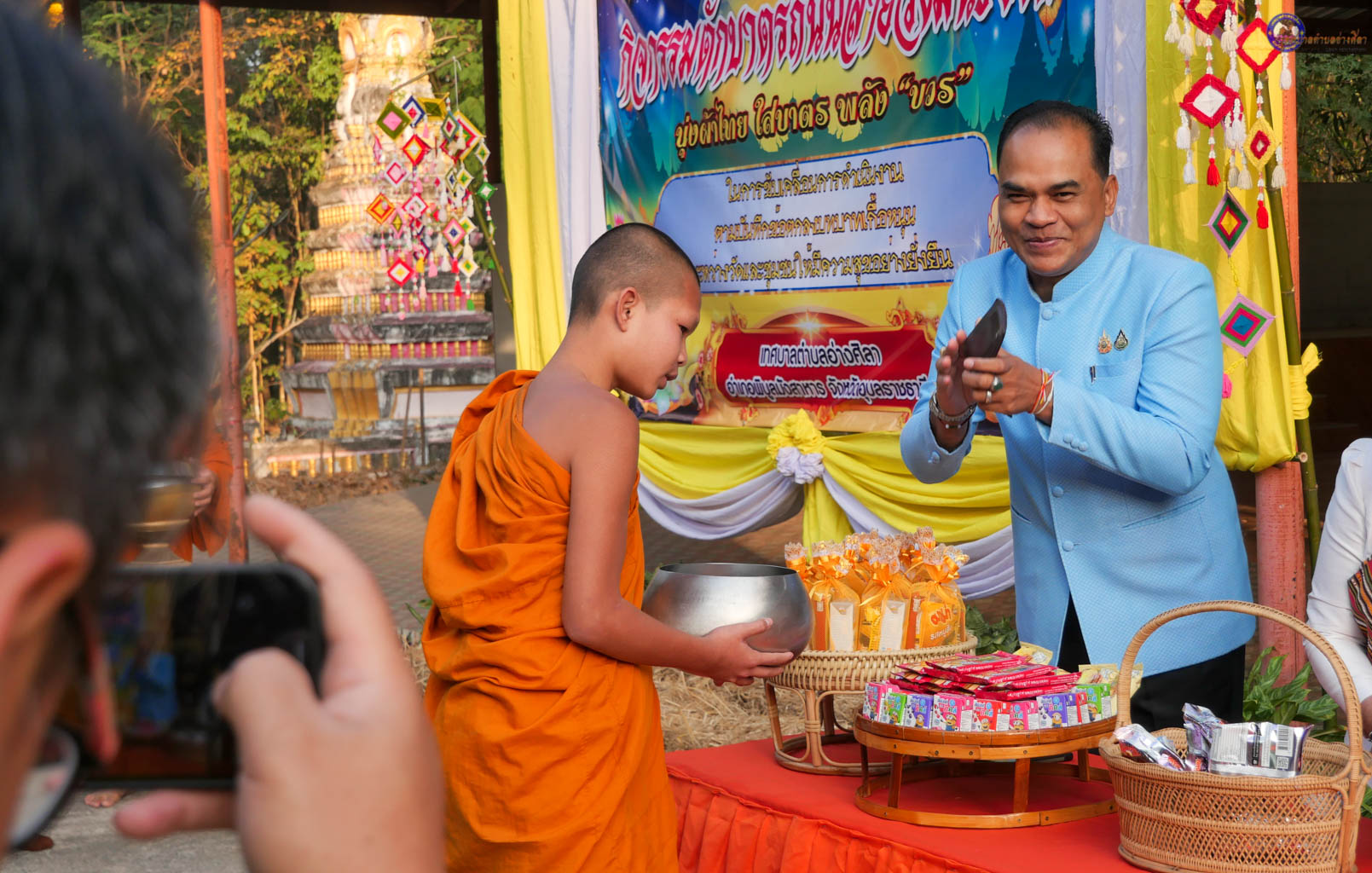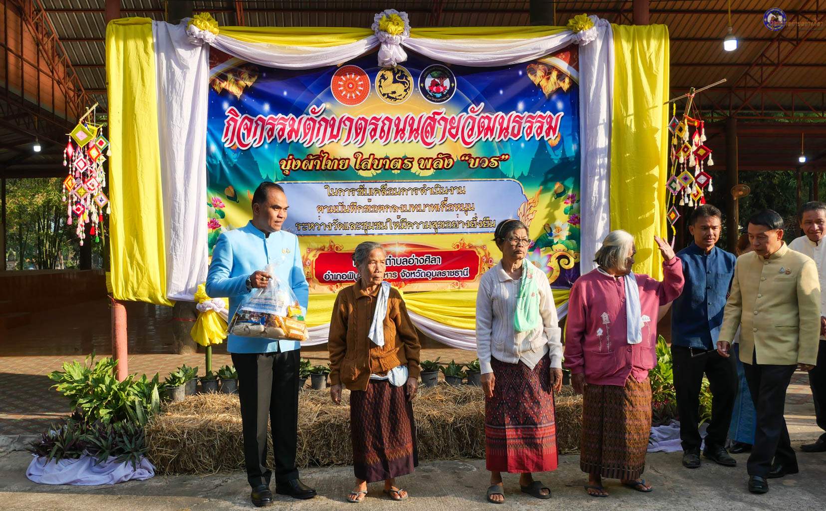 นายสรชาย ครองยุทธ นายอำเภอพิบูลมังสาหาร เป็นประธานในพิธีทำบุญตักบาตรถนนสายวัฒนธรรม จุดธูปเทียนบูชาพระรัตนตรัย ไหว้พระรับศีล กรวดน้ำรับพร