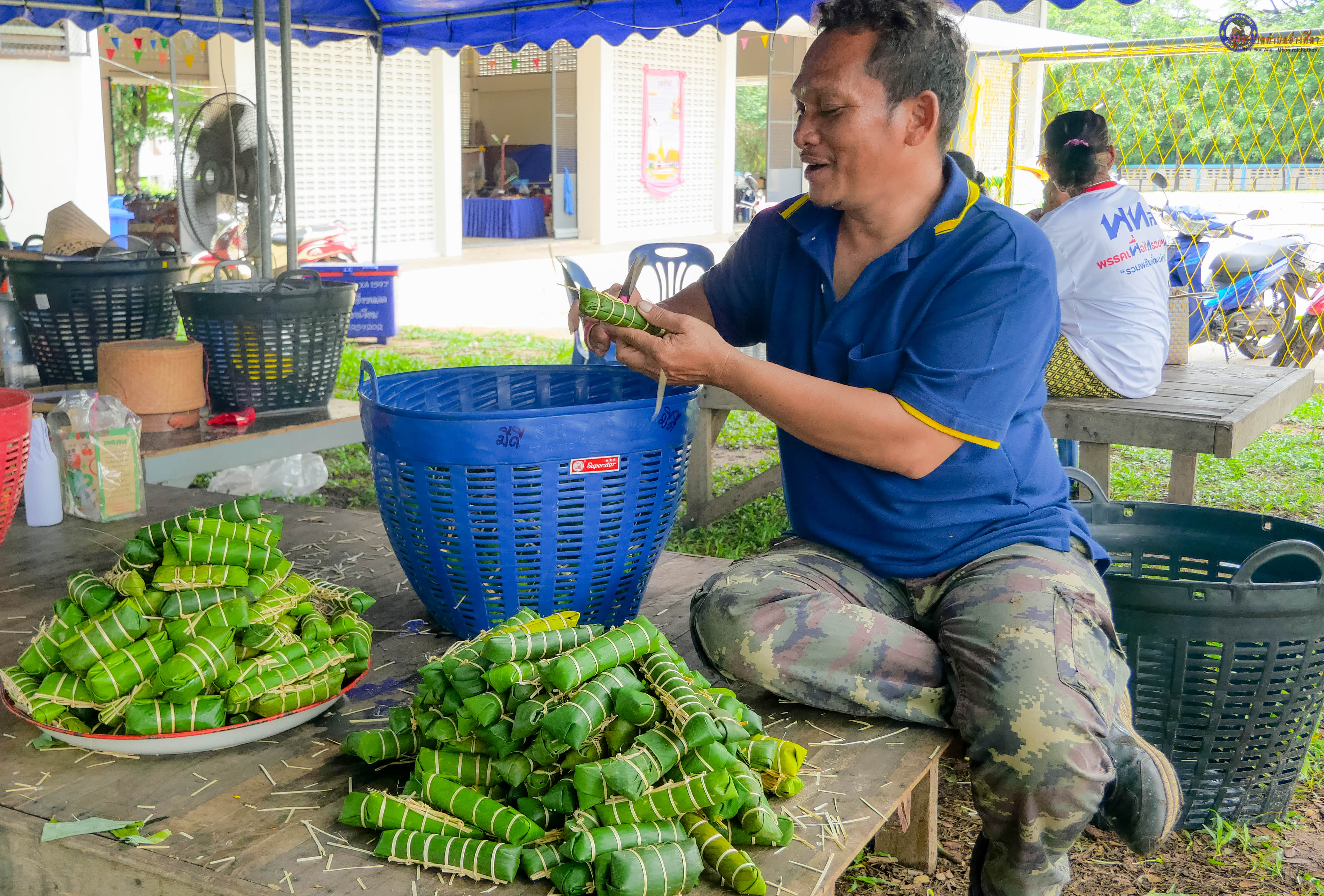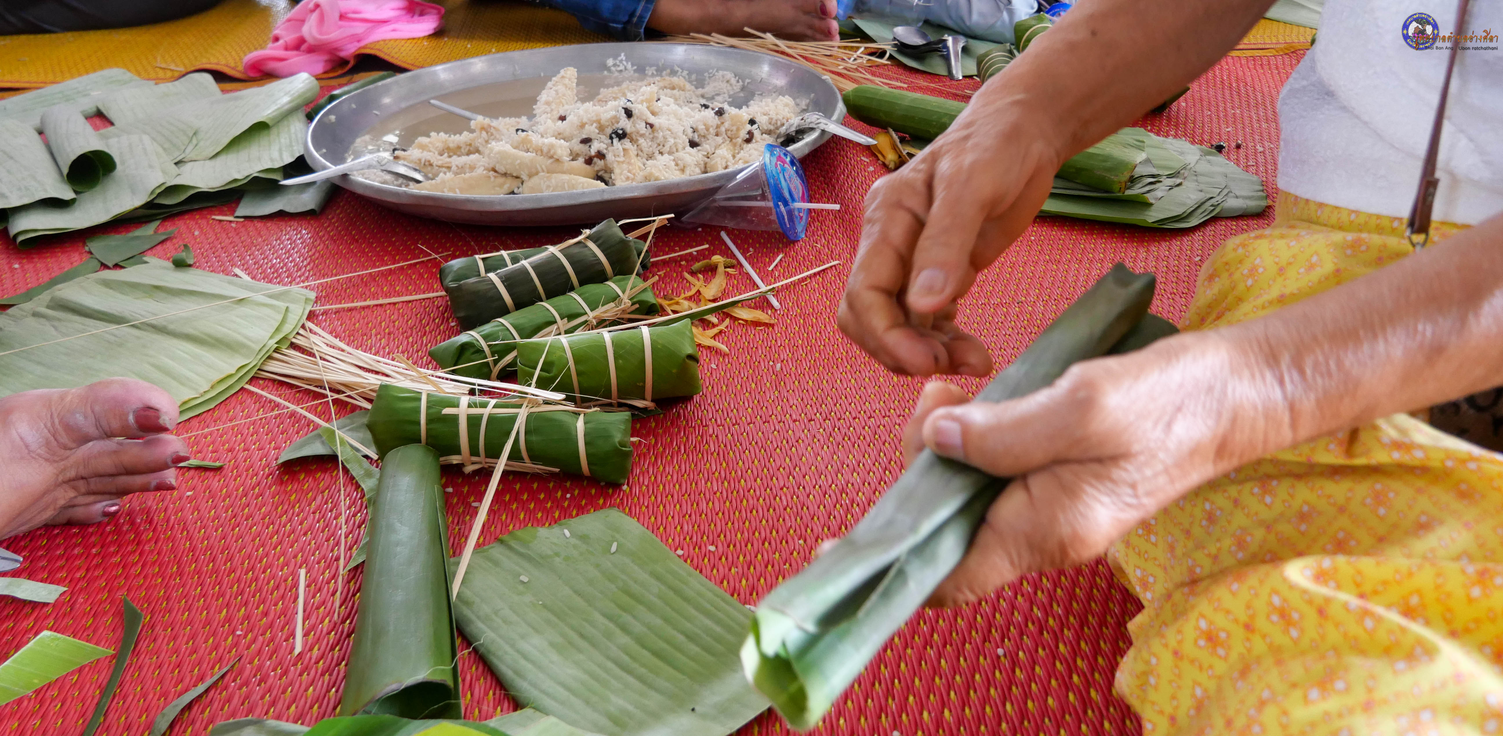 งานบุญซำฮะ จัดเตรียมข้าวปลาอาหาร ห่อข้าวต้ม เพื่อทำบุญตักบาตร