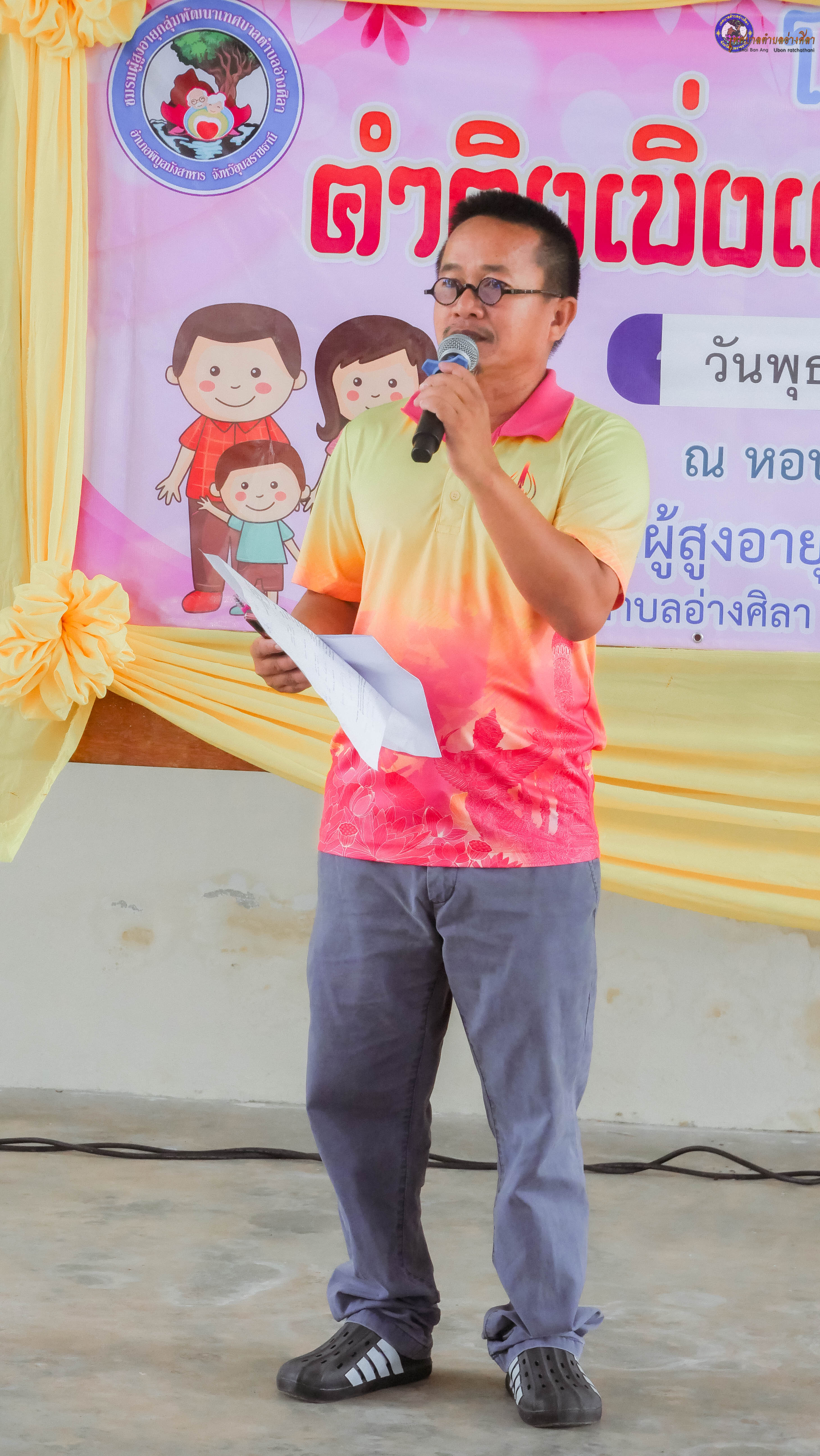 ✨️โดยมีนายสมบัติ แสนทวีสุข นายกเทศมนตรีตำบลอ่างศิลา เป็นประธานพิธีเปิดโครงการคำคิงเบิ่งแงง ฮักแพงกัน นางภัทรภา แสนหอม ประธานชมรมผู้สูงอายุฯ เป็นผู้กล่าวรายงาน ?พร้อมด้วย นายวุฒินันท์ ผิวขาว ประธานสภาเทศบาล สมาชิกสภาเทศบาลตำบลอ่างศิลาทุกท่าน นางจิรณัฐ สิงห์คำ ผอ.รพ.สต.นาชุม นางสาวธวัลรัตน์ นาจาน หัวหน้าสำนักปลัดเทศบาล นายกมลวรรธน์ ดุมแก้ว ผอ.กองการศึกษา พันจ่าเอกวชิรพงษ์ จิรพงษ์พรชัย. ผอ.กองสาธารณสุขและสิ่งแวดล้อม สมาชิกกิตติมศักดิ์ชมรมผู้สูงอายุ สมาชิกผู้สูงอายุ และพนักงานลูกจ้างเทศบาลตำบลอ่างศิลา