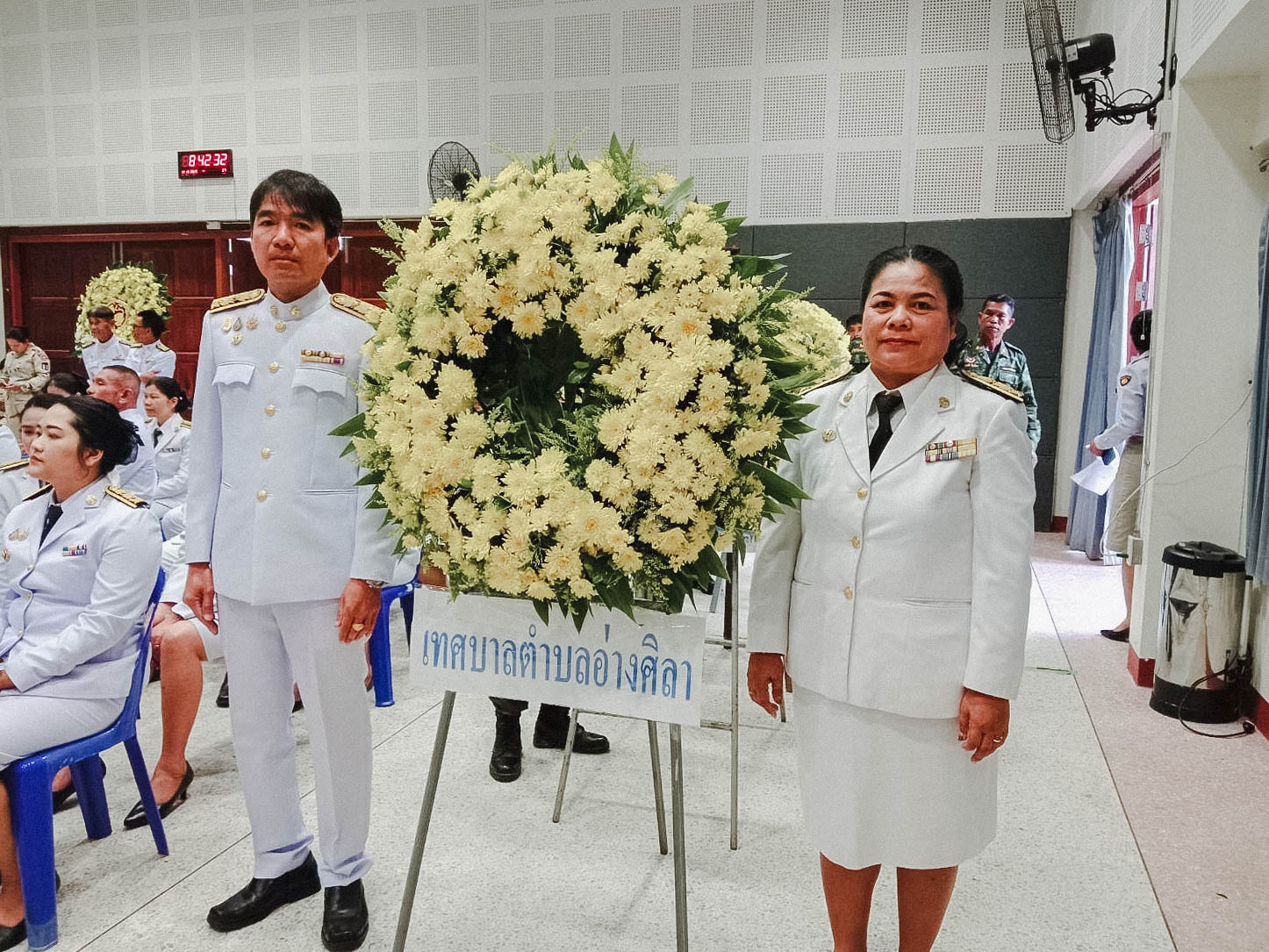 นายสมบัติ แสนทวีสุข นายกเทศมนตรีตำบลอ่างศิลา พร้อมด้วย นายแหลมทอง นามวา ผอ.กองช่าง ข้าราชการ พนักงานเทศบาลตำบลอ่างศิลา ร่วมพิธีทำบุญตักบาตรถวายพระราชกุศลและพิธีวางพวงมาลาถวายราชสักการะ เนื่องใน "วันนวมินทรมหาราช" พ.ศ. 2568