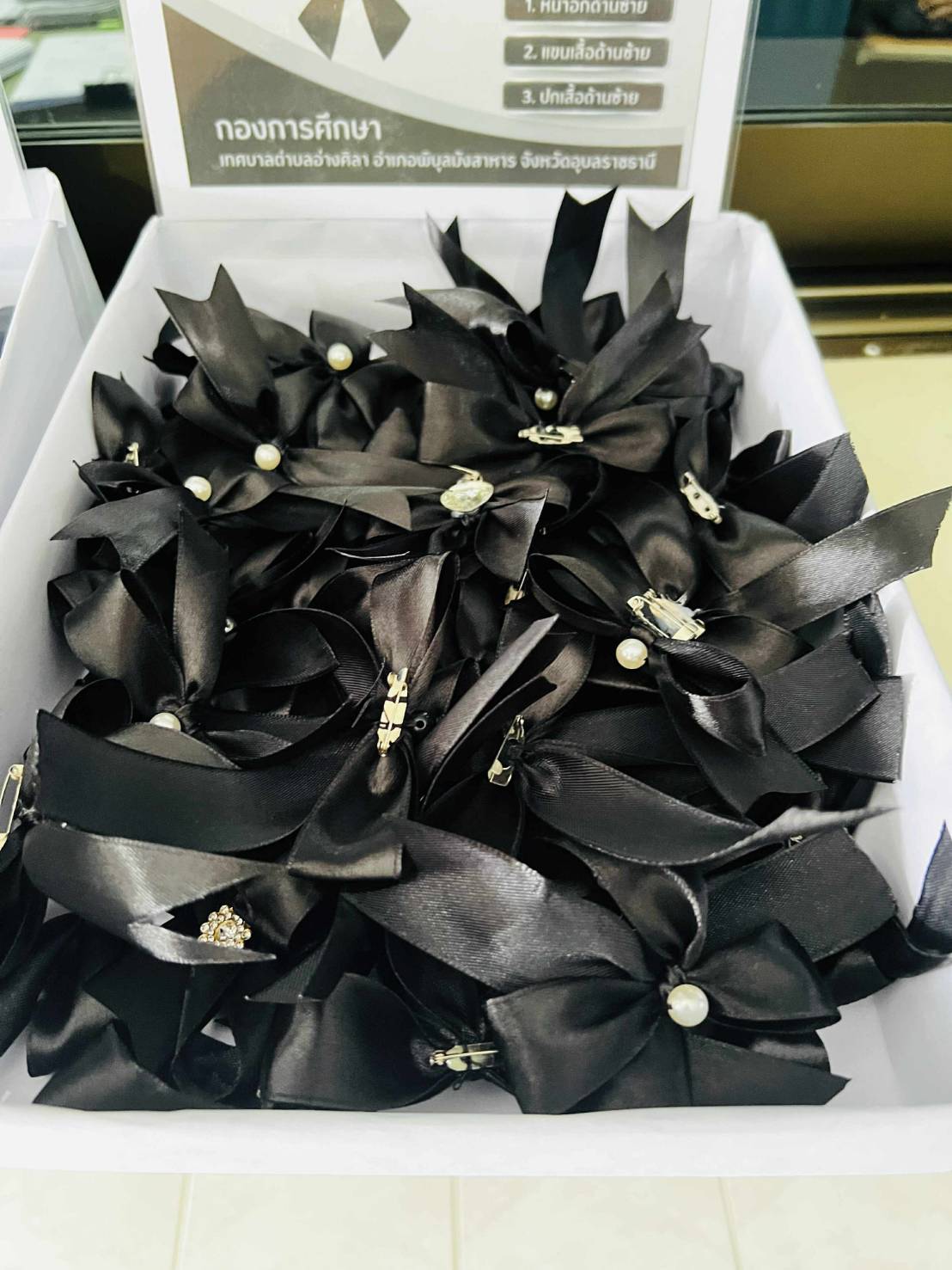 เทศบาลตำบลอ่างศิลา ร่วมกันประดิษฐ์โบว์ริบบิ้นสีดำ เพื่อแจกจ่ายให้ประชาชนนำไปติดเสื้อด้านซ้าย เป็นสัญลักษณ์แห่งการไว้อาลัยและน้อมรำลึกในพระมหากรุณาธิคุณของสมเด็จพระนางเจ้าสิริกิติ์ พระบรมราชินีนาถ พระบรมราชชนนีพันปีหลวง