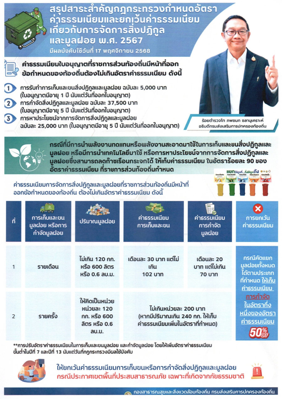 ‼️?สรุปสาระสำคัญ กฎกระทรวงกำหนดอัตรา ค่ารรรมเนียมและยกเว้นค่ารรรมเนียม เกี่ยวกับการจัดการสิ่งปฏิกูล และมูลฝอย พ.ศ. 2567 ‼️