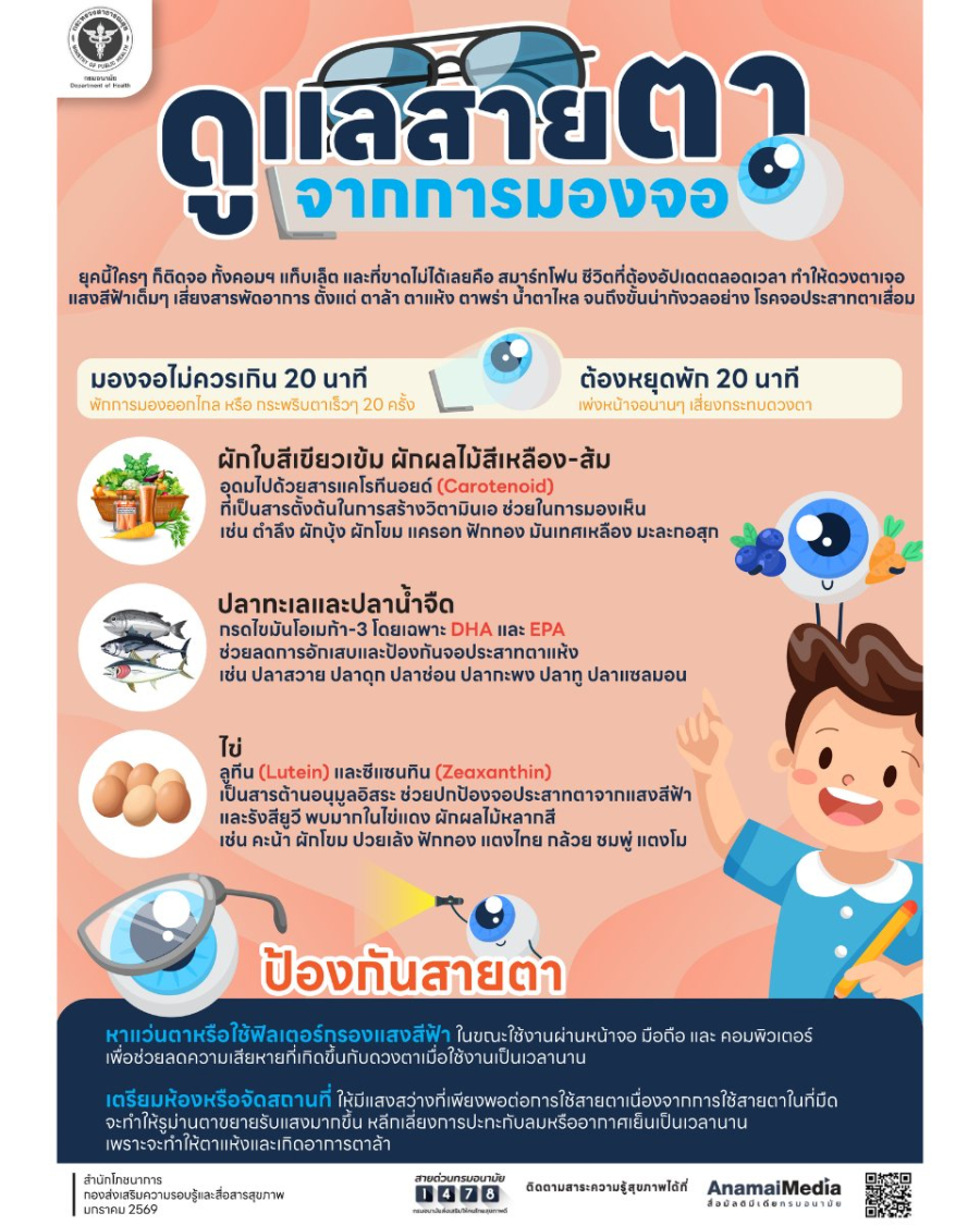 #กรมอนามัย #สำนักโภชนาการ #กองส่งเสริมความรอบรู้และสื่อสารสุขภาพ #ดูแลสายตา #แสงสีฟ้า #ComputerVisionSyndrome #บำรุงสายตา #AnamaiMedia #สุขภาพดี #DigitalDetox #HealthLiteracy #แม่และเด็ก #วัยเรียนวัยรุ่น #วัยทำงาน #สูงวัย #lgbtqia2s #กรมอนามัยส่งเสริมให้คนไทยสุขภาพ #กรมอนามัยกระทรวงสาธารณสุข.