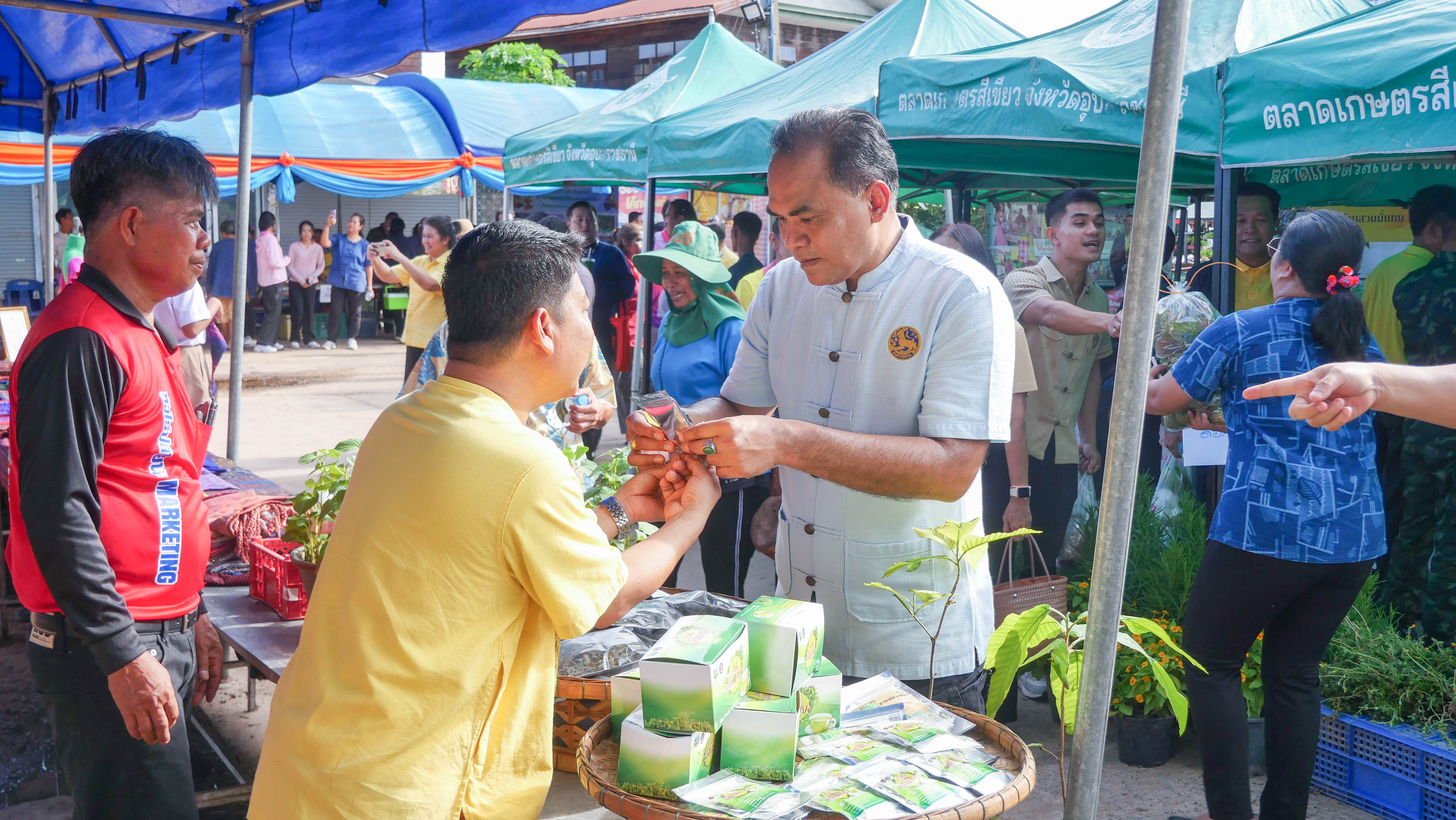 ร่วมเป็นเกียรติในพิธีเปิด"ตลาดสีเขียว" โครงการพัฒนาคุณภาพชีวิตของประชาชน เที่ยวชมและเลือกซื้อสินค้าทางการเกษตร สินค้าชุมชน OTOP สินค้าพื้นบ้าน เสื้อผ้า อาหาร และสินค้าเบ็ดเตล็ด ของพ่อค้าแม่ค้าในตลาดสีเขียว