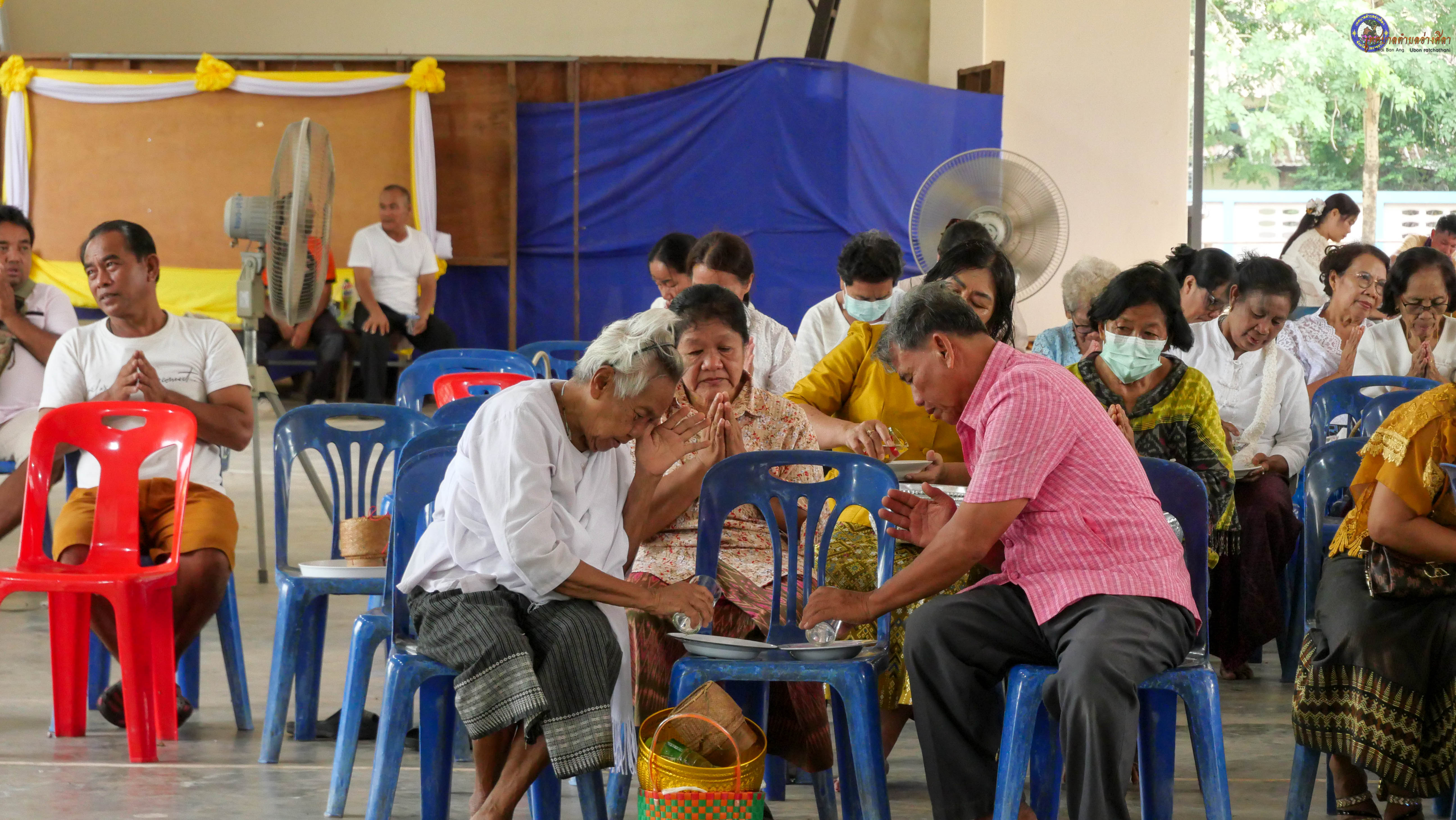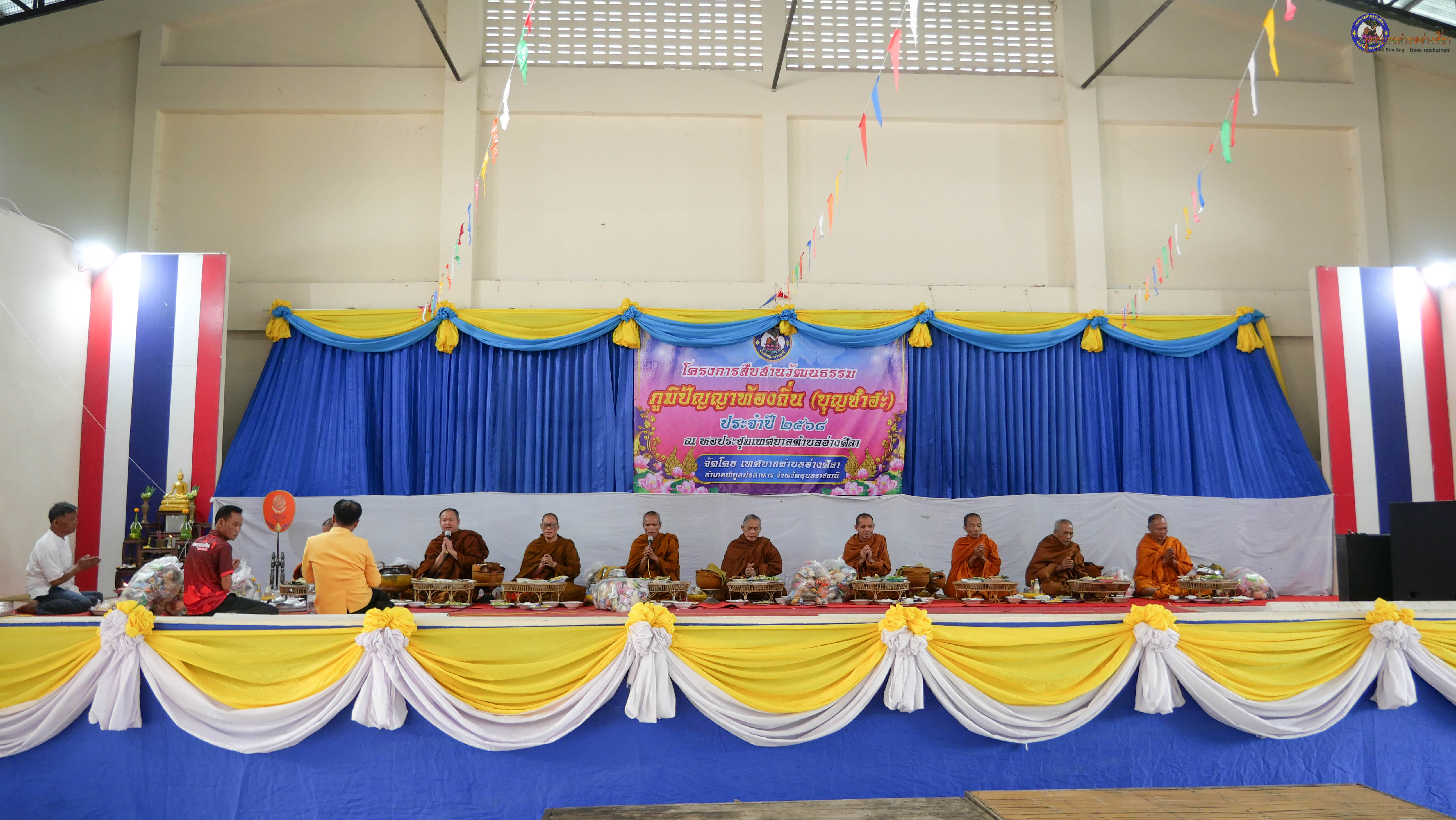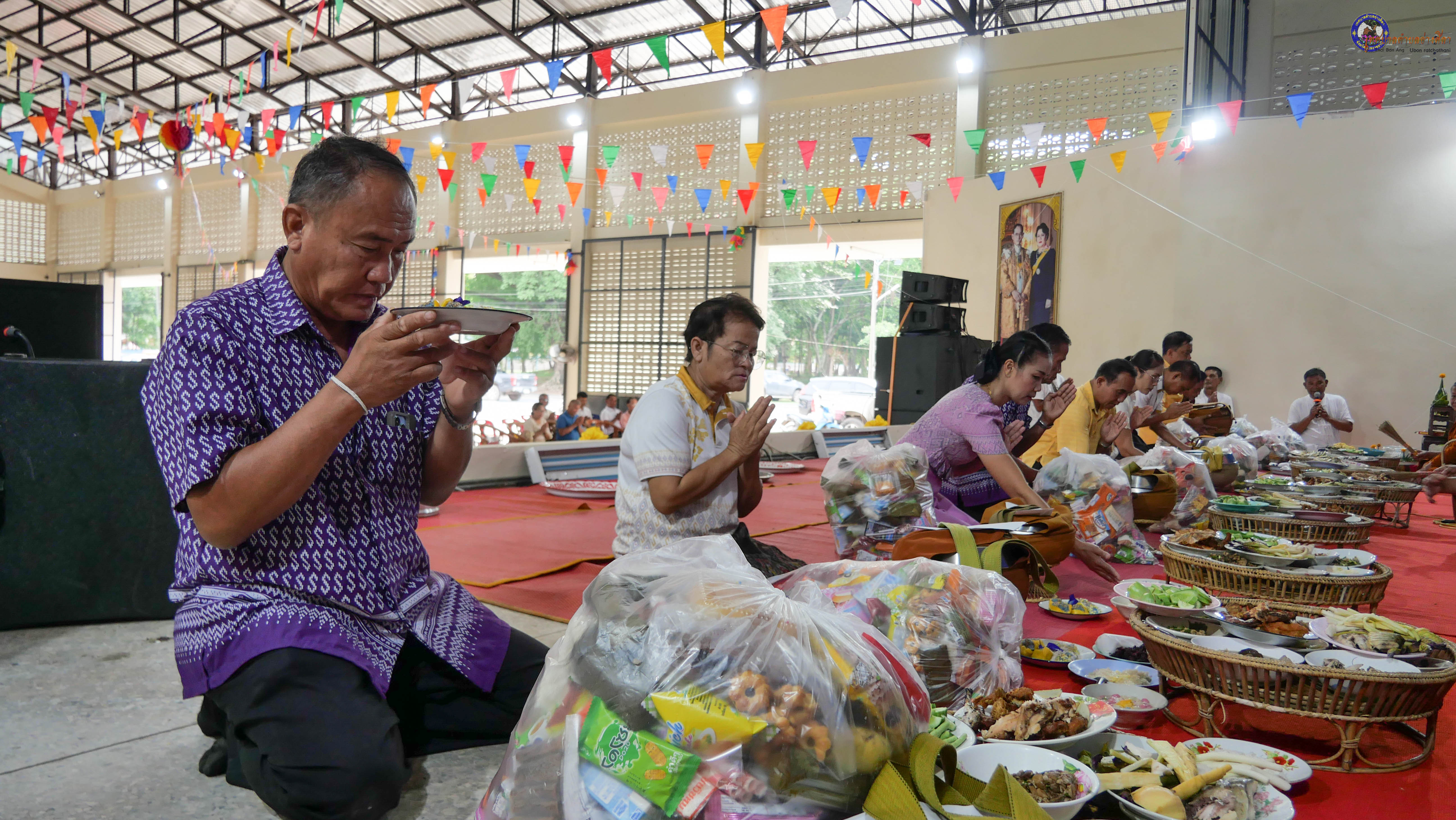 ร่วมทำบุญตักบาตร ถวายภัตาหารแด่พระภิกษุสงฆ์ จำนวน 9 รูป งานบุญซำฮะหรือบุญเดือนเจ็ด ซึ่งเป็น วันหงายพาข้าว ตามประเพณีจะสวดเจริญพระพุทธมนต์ สวดมนต์เย็น สามวัน พร้อมสักการะบวงสรวงศาลหลักบ้าน ชาวบ้านจะนำกรวด ก้อนหิน ดินทราย เทียนเวียนหัว มารวมกันไว้ในสถานที่ทำพิธี หลังเสร็จพิธีจะนำไปหว่านรอบบ้าน เพื่อขับไล่สิ่งชั่วร้าย ชำระล้างสิ่งที่ไม่ดีเป็นเสนียดจัญไร ออกจากร่างกายและจิตใจ เป็นประเพณีฮีตสิบสองคองอีสานที่ปฏิบัติสืบต่อกันมา
