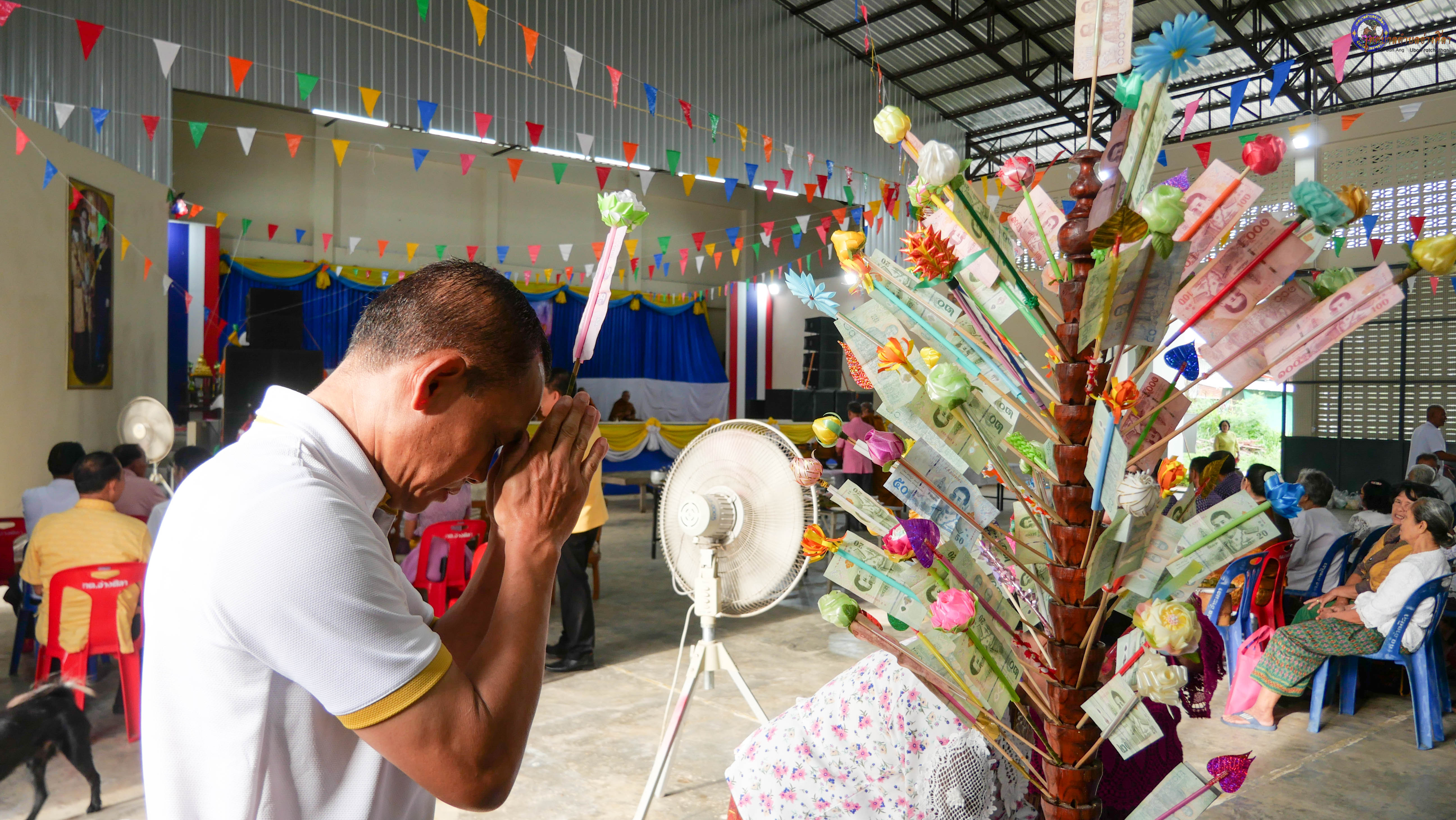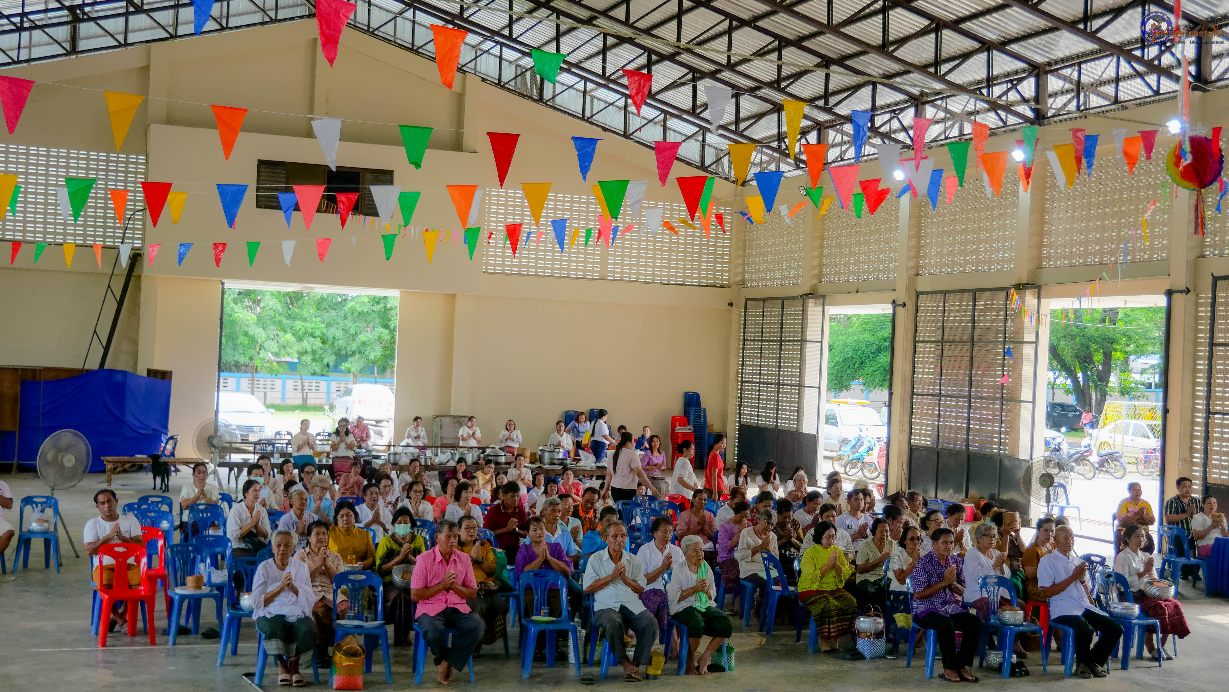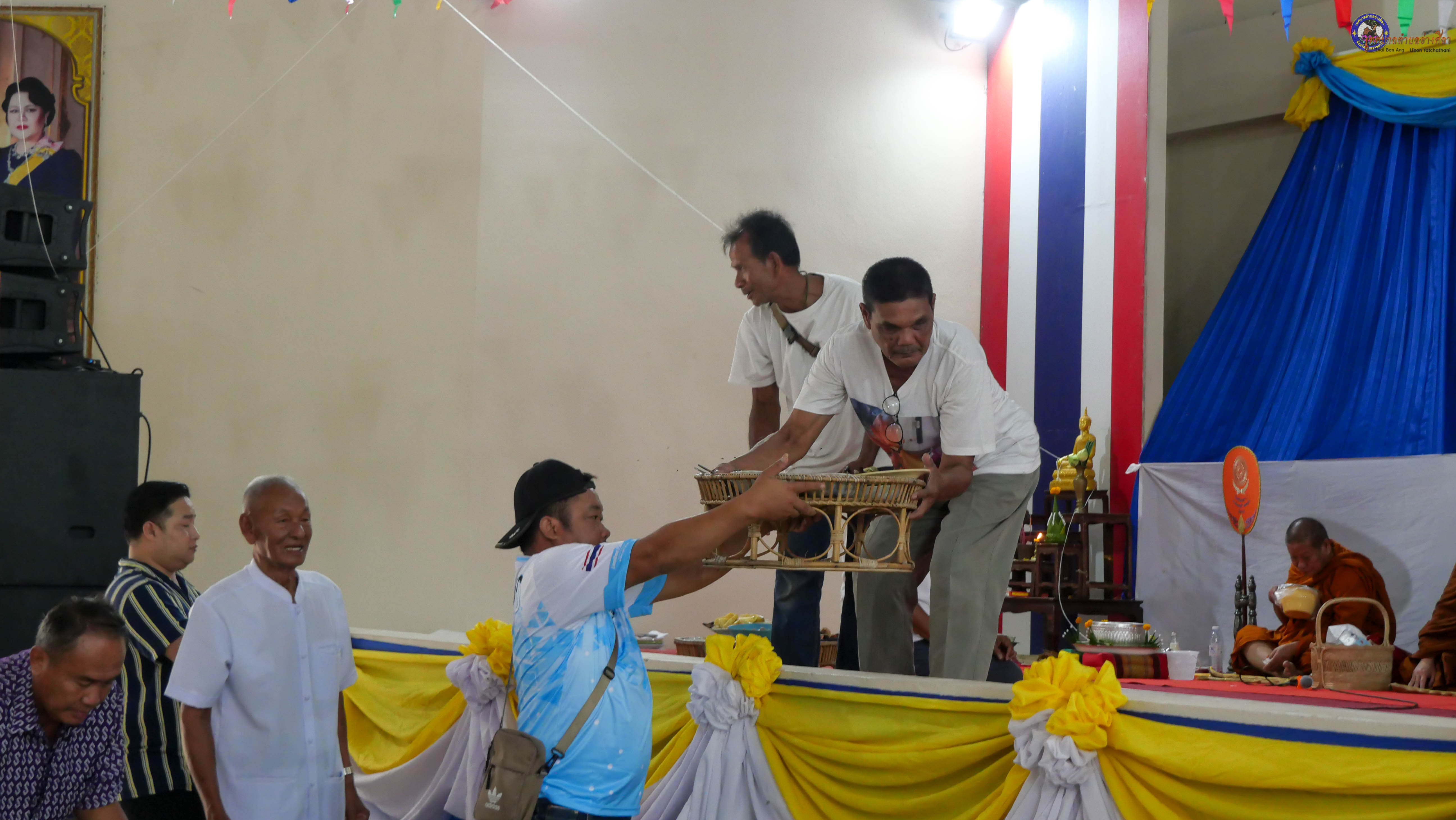 ร่วมทำบุญตักบาตร ถวายภัตาหารแด่พระภิกษุสงฆ์ จำนวน 9 รูป งานบุญซำฮะหรือบุญเดือนเจ็ด ซึ่งเป็น วันหงายพาข้าว ตามประเพณีจะสวดเจริญพระพุทธมนต์ สวดมนต์เย็น สามวัน พร้อมสักการะบวงสรวงศาลหลักบ้าน ชาวบ้านจะนำกรวด ก้อนหิน ดินทราย เทียนเวียนหัว มารวมกันไว้ในสถานที่ทำพิธี หลังเสร็จพิธีจะนำไปหว่านรอบบ้าน เพื่อขับไล่สิ่งชั่วร้าย ชำระล้างสิ่งที่ไม่ดีเป็นเสนียดจัญไร ออกจากร่างกายและจิตใจ เป็นประเพณีฮีตสิบสองคองอีสานที่ปฏิบัติสืบต่อกันมา