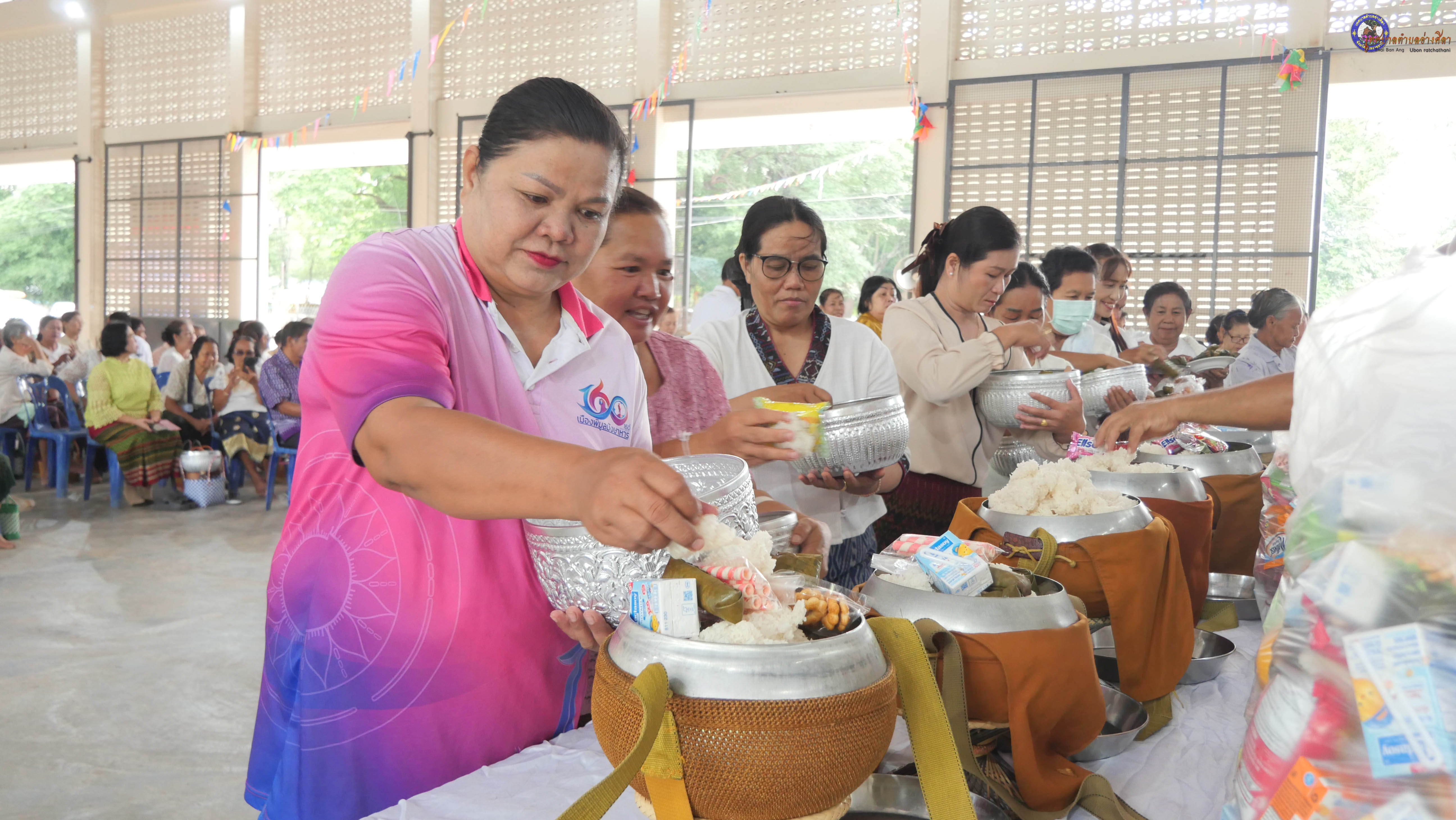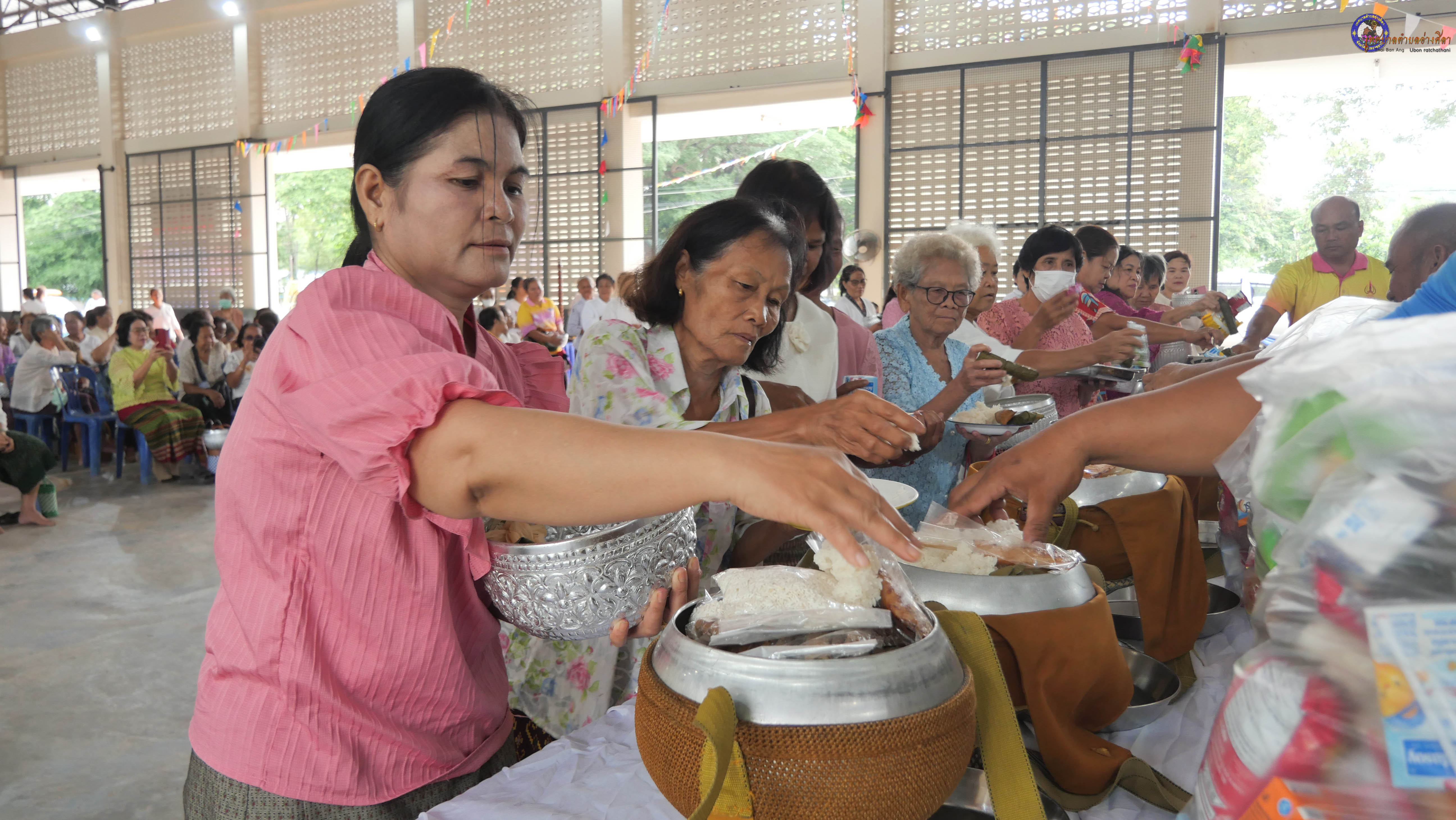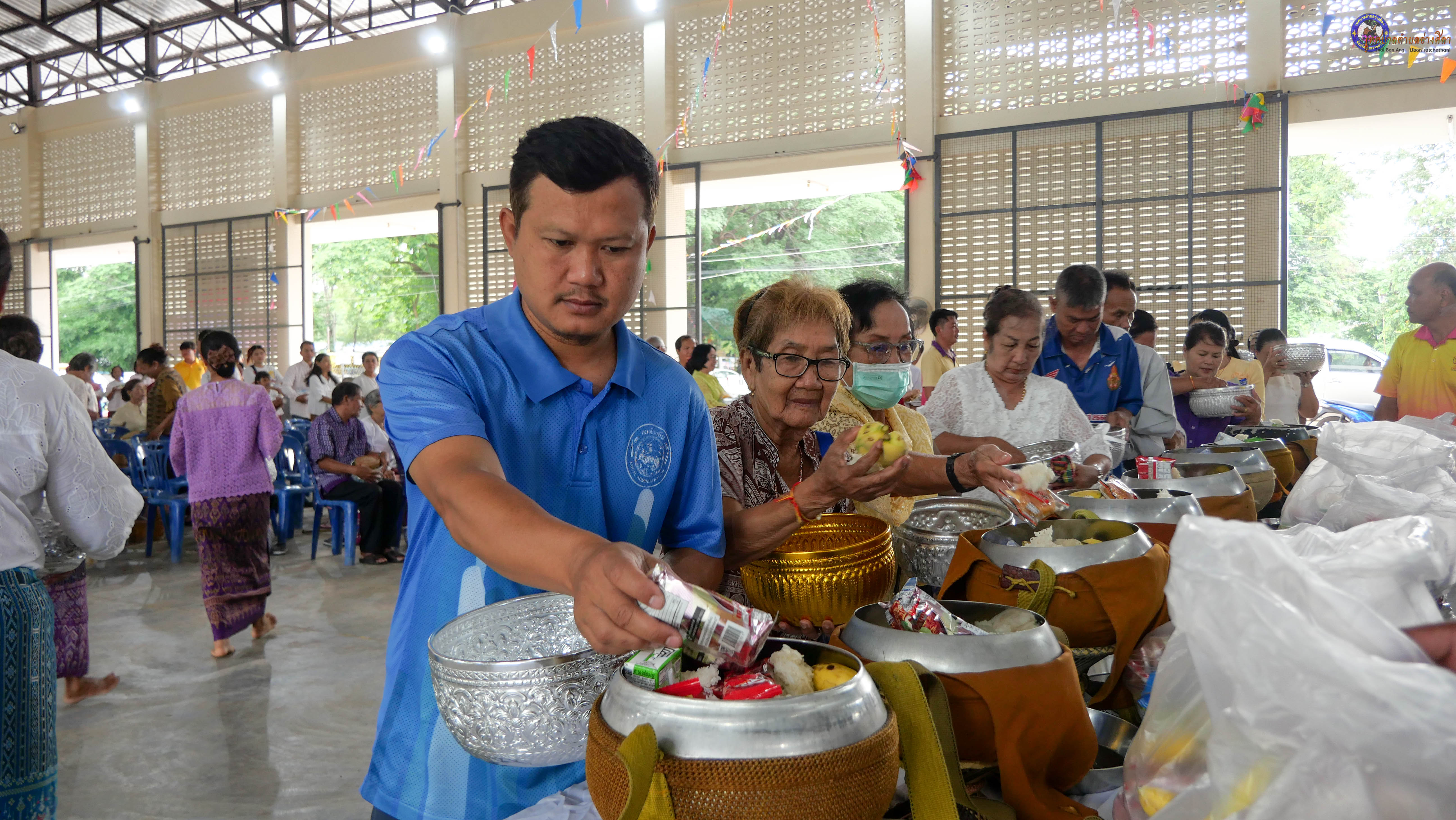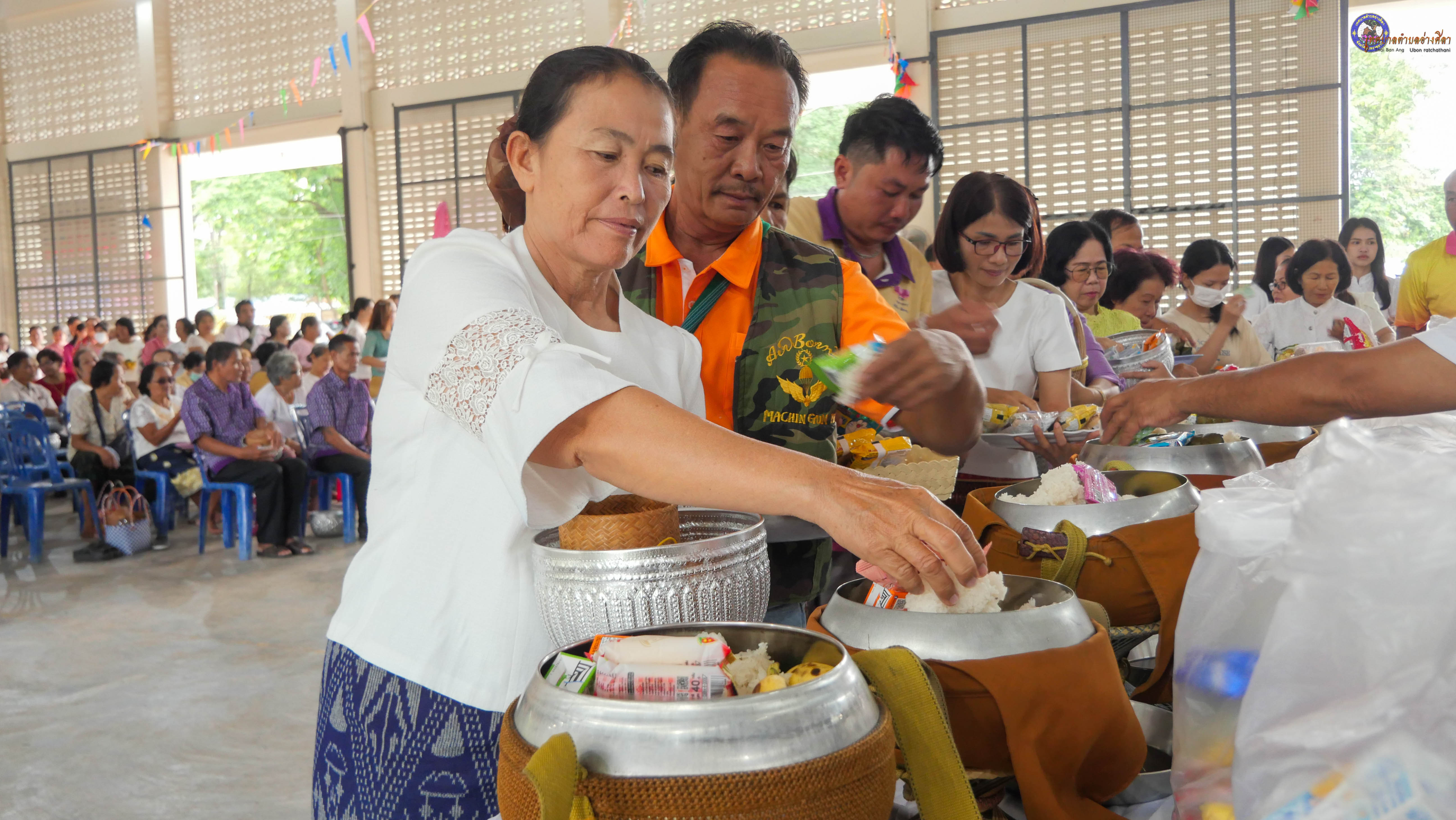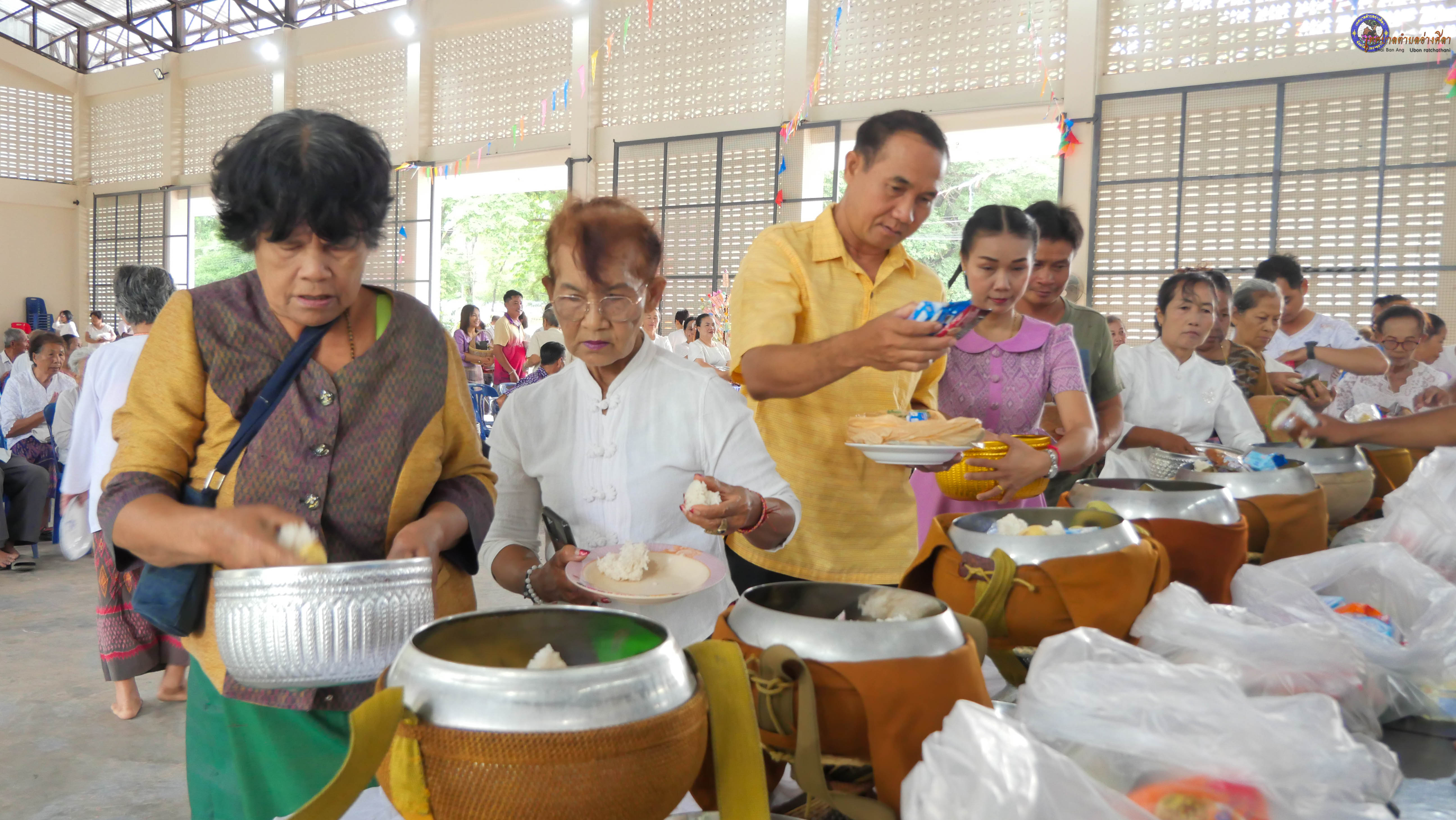 ทำบุญตักบาตร ถวายภัตาหารแด่พระภิกษุสงฆ์ งานบุญซำฮะ