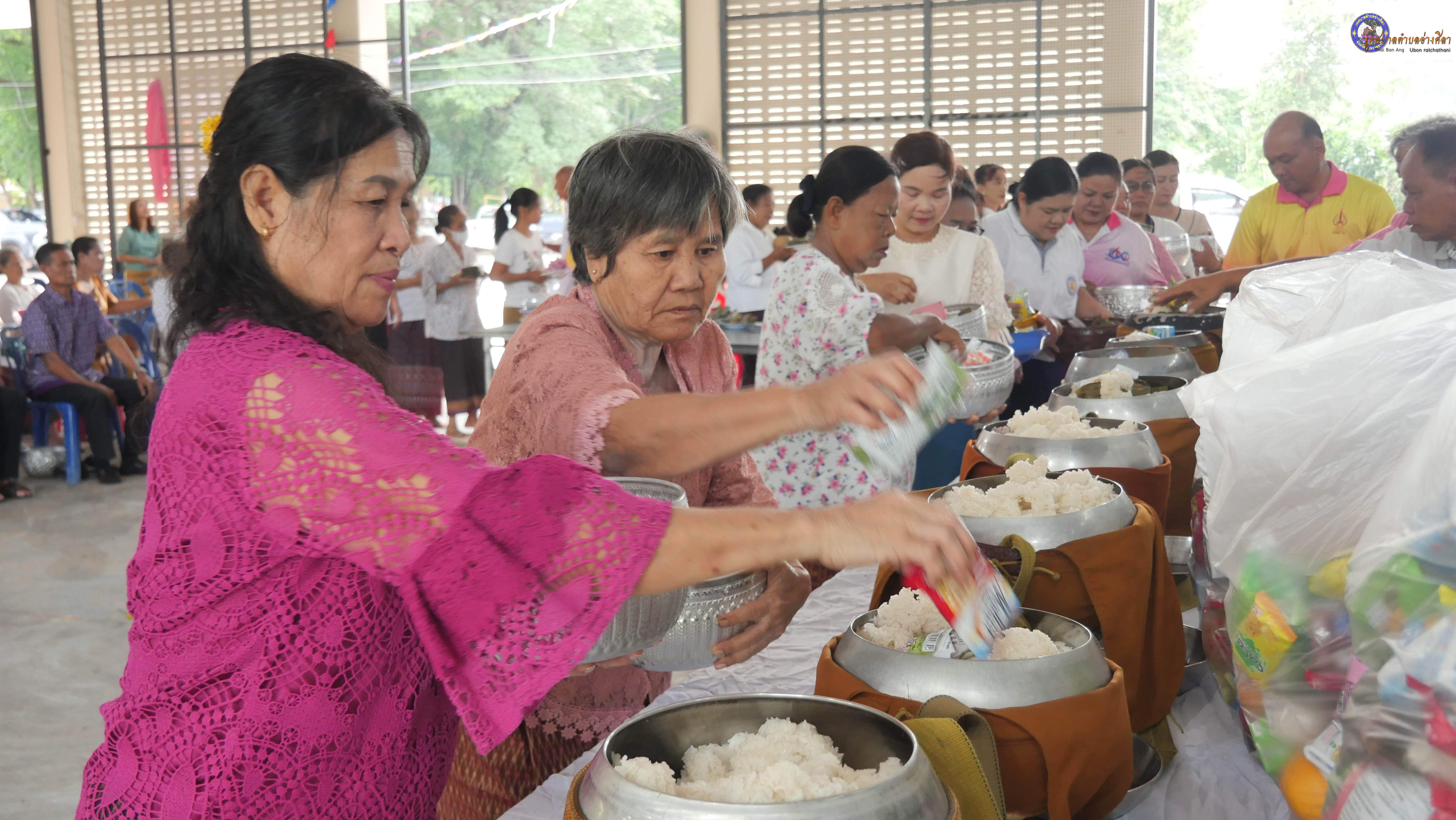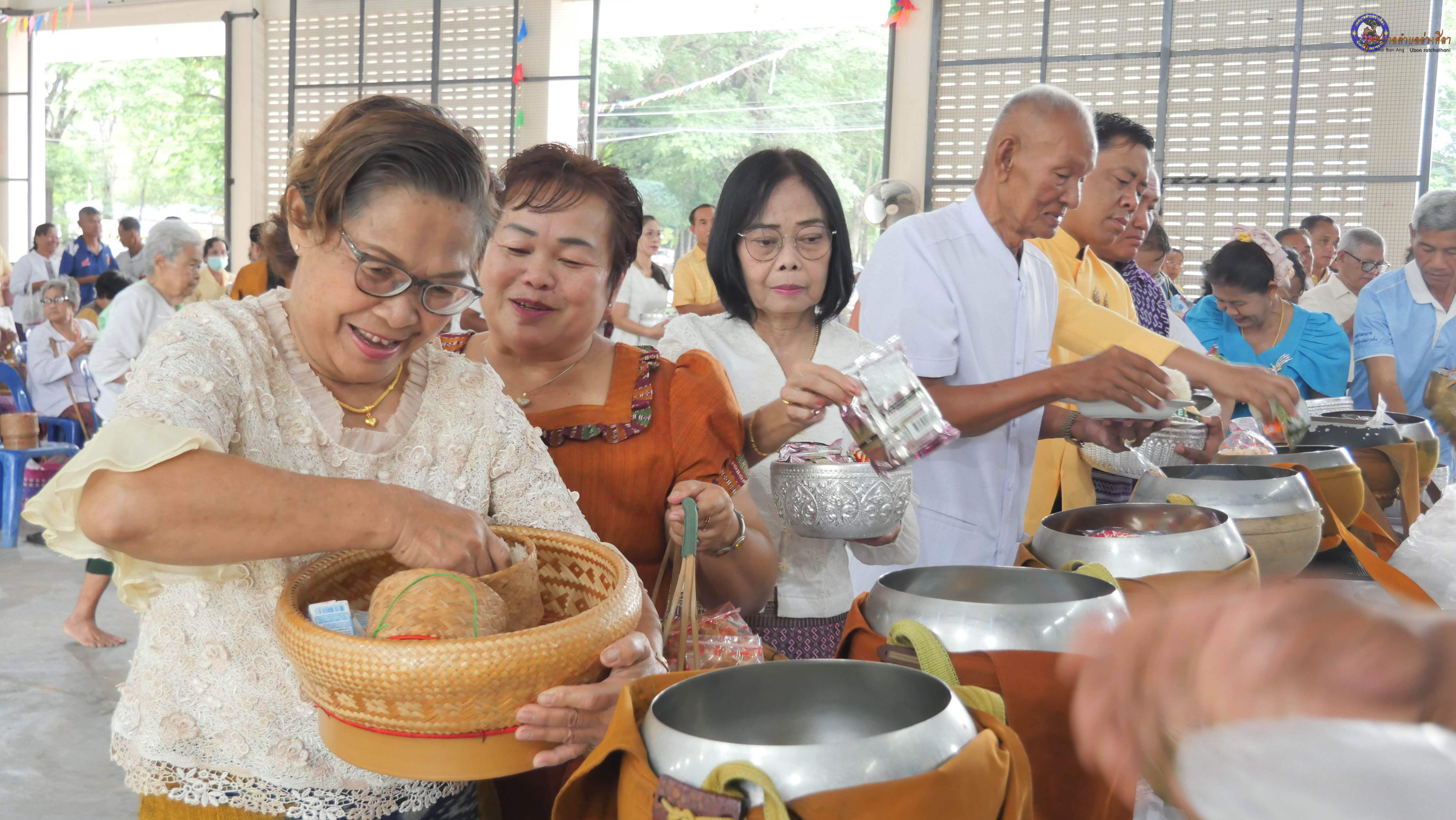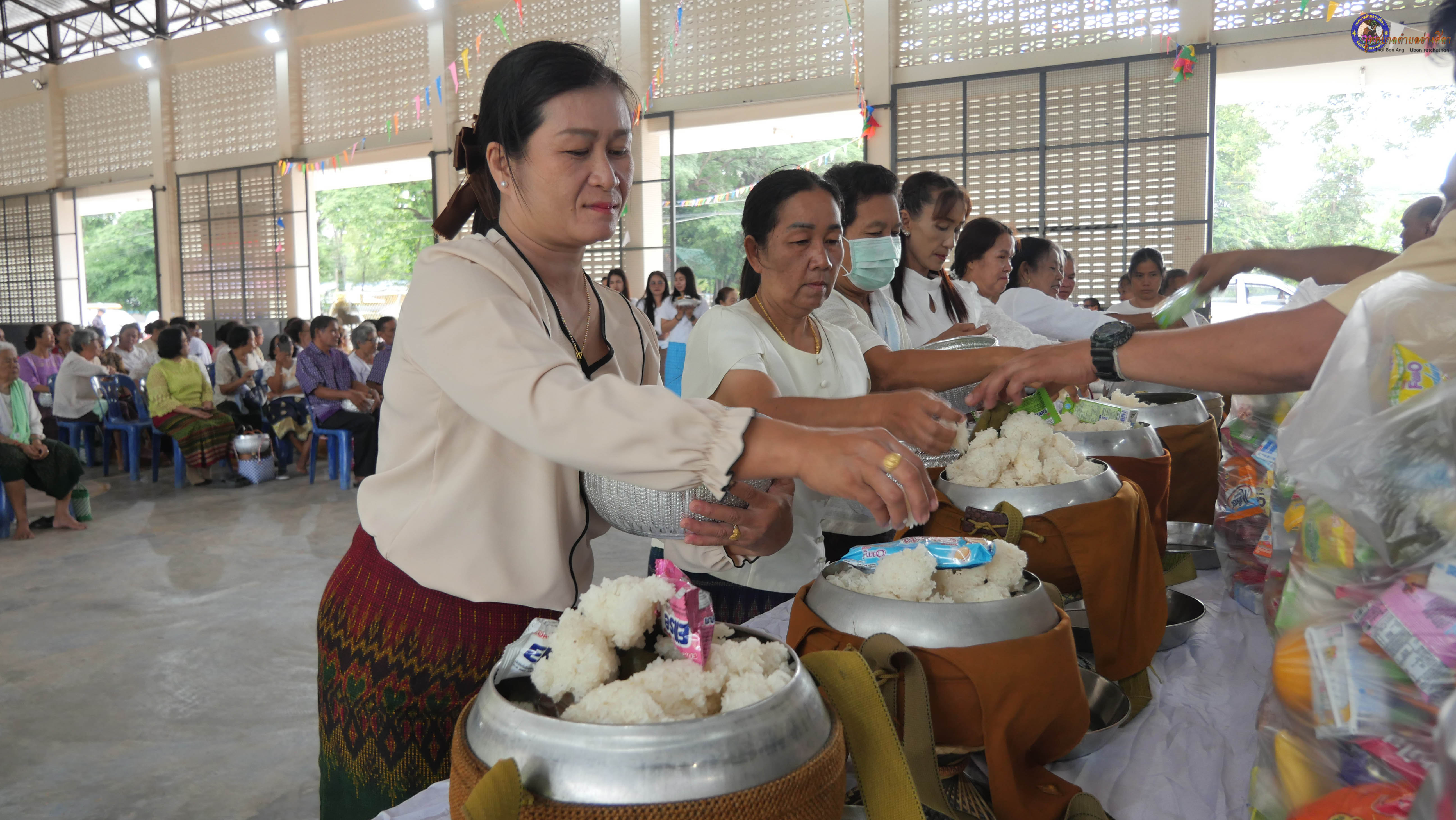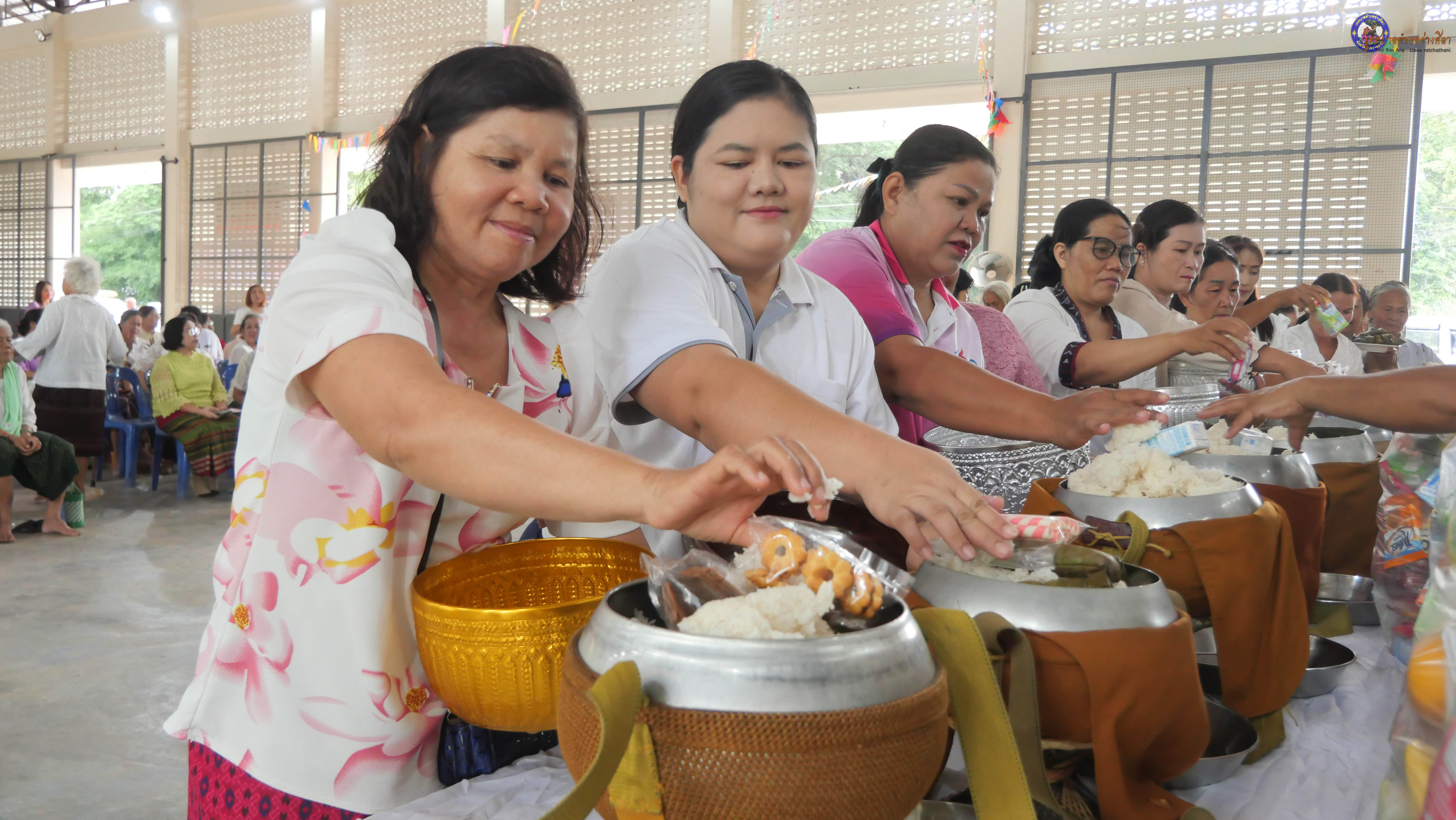 ทำบุญตักบาตร ถวายภัตาหารแด่พระภิกษุสงฆ์ งานบุญซำฮะ