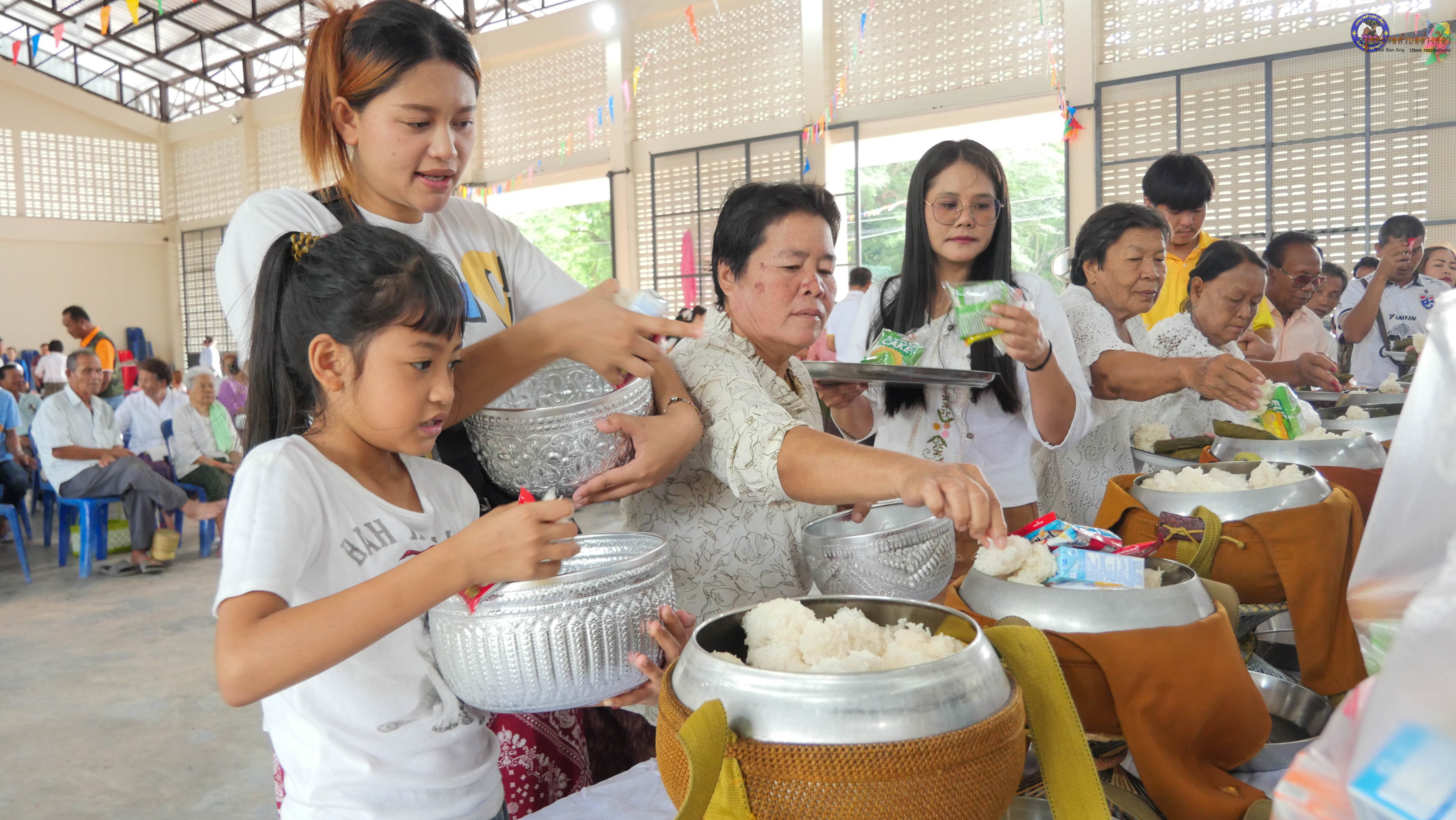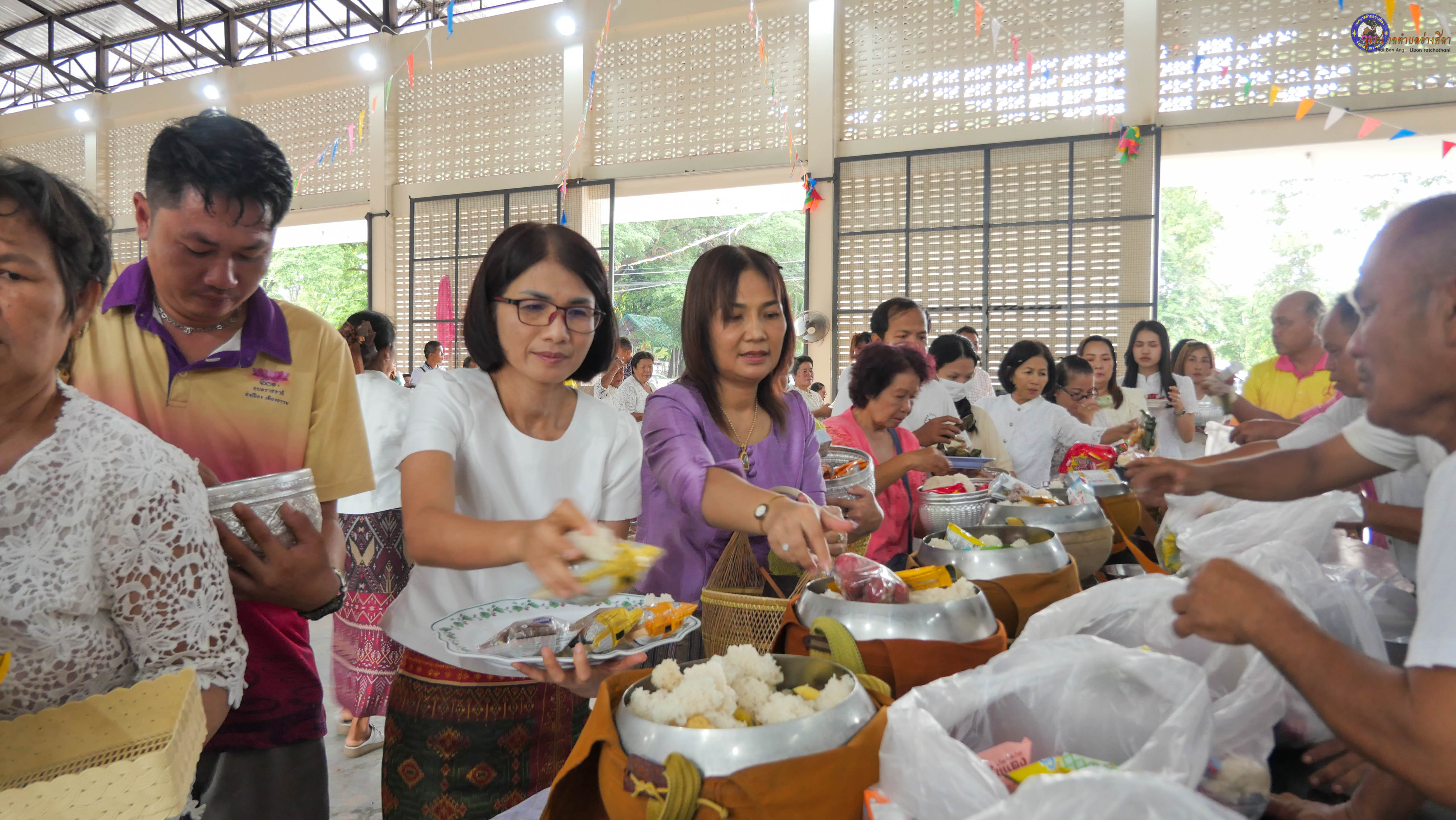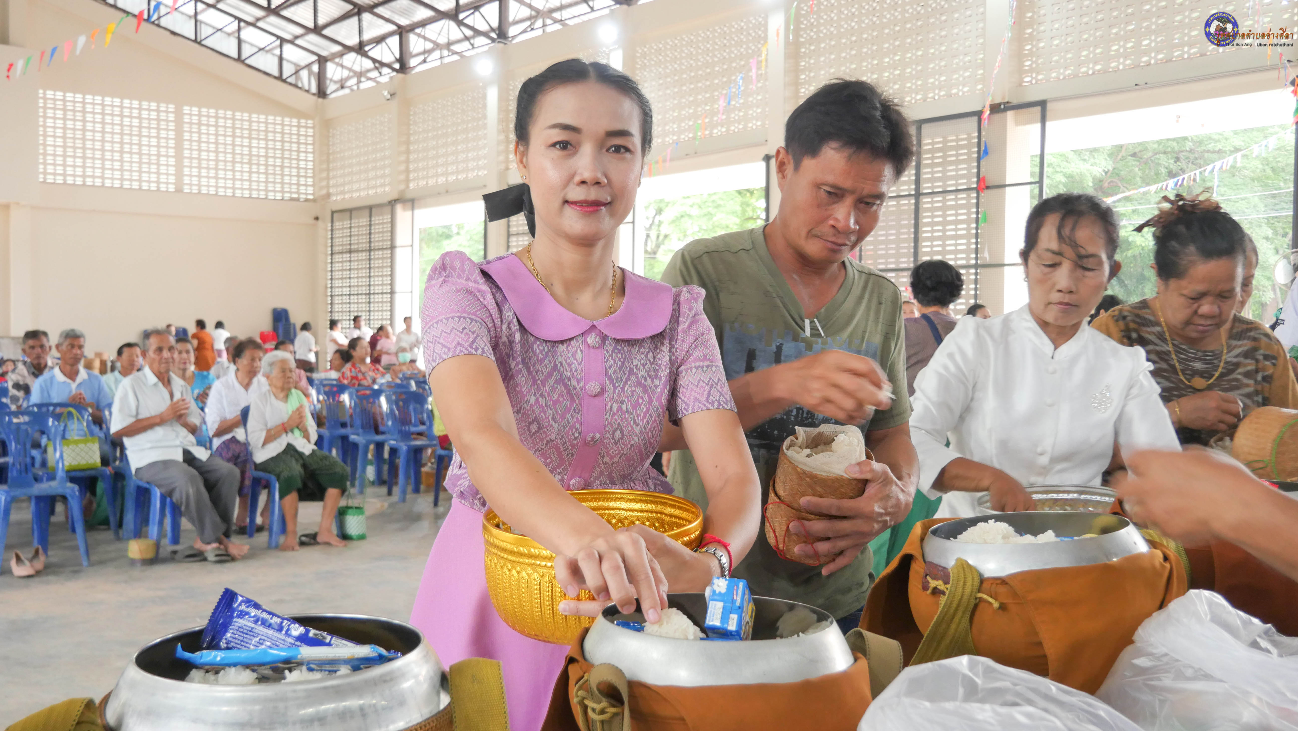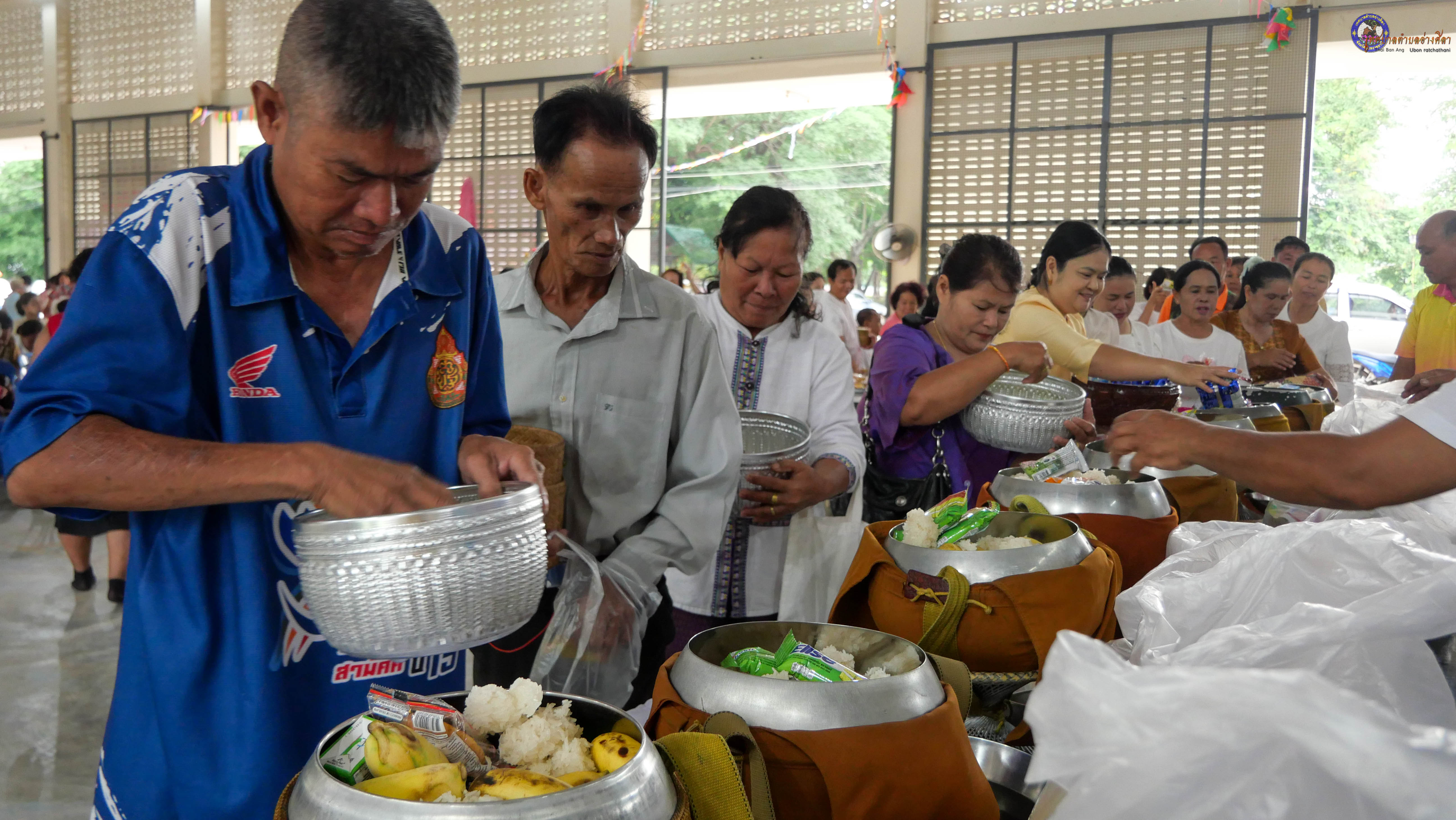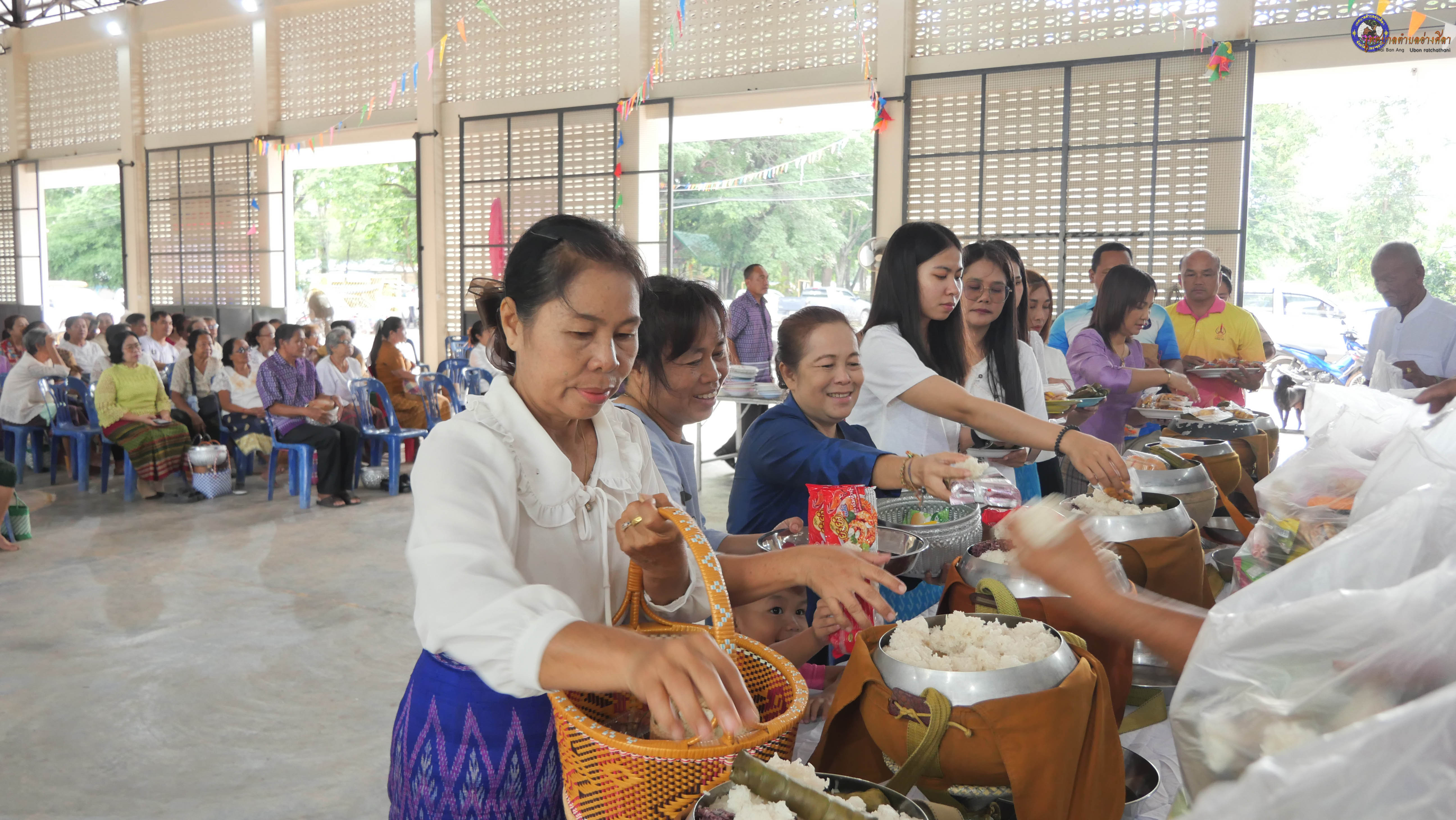 ทำบุญตักบาตร ถวายภัตาหารแด่พระภิกษุสงฆ์ งานบุญซำฮะ
