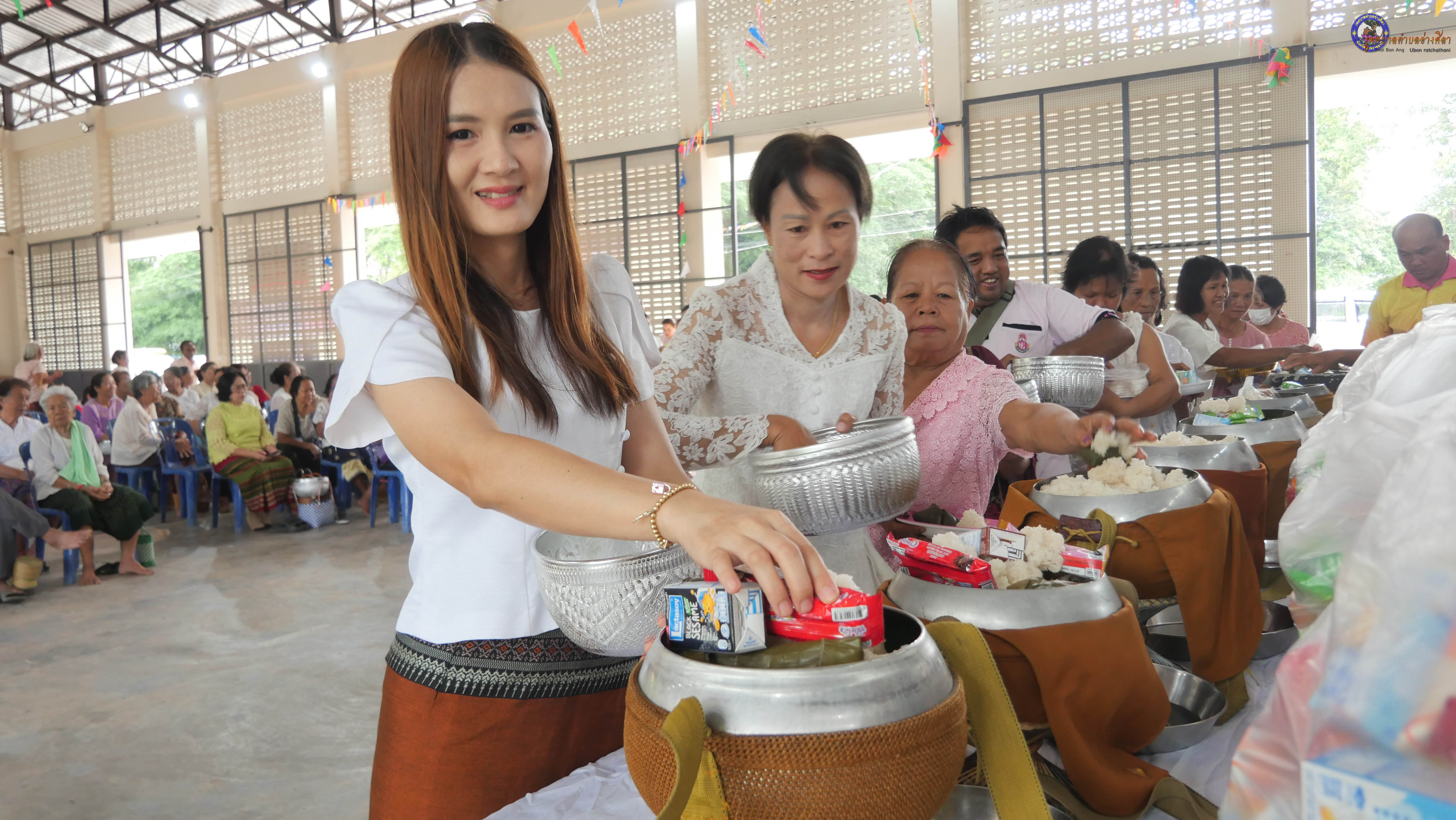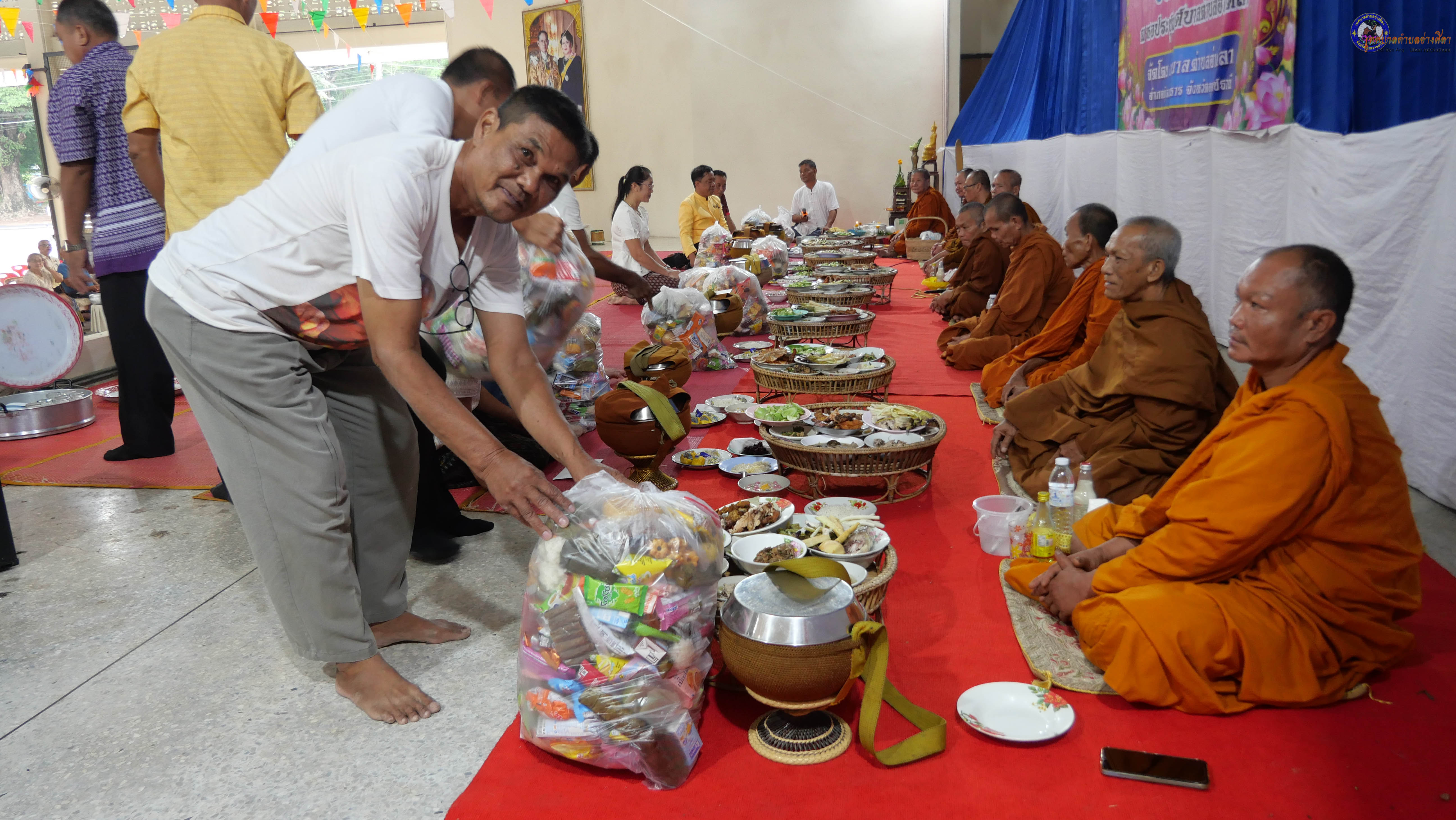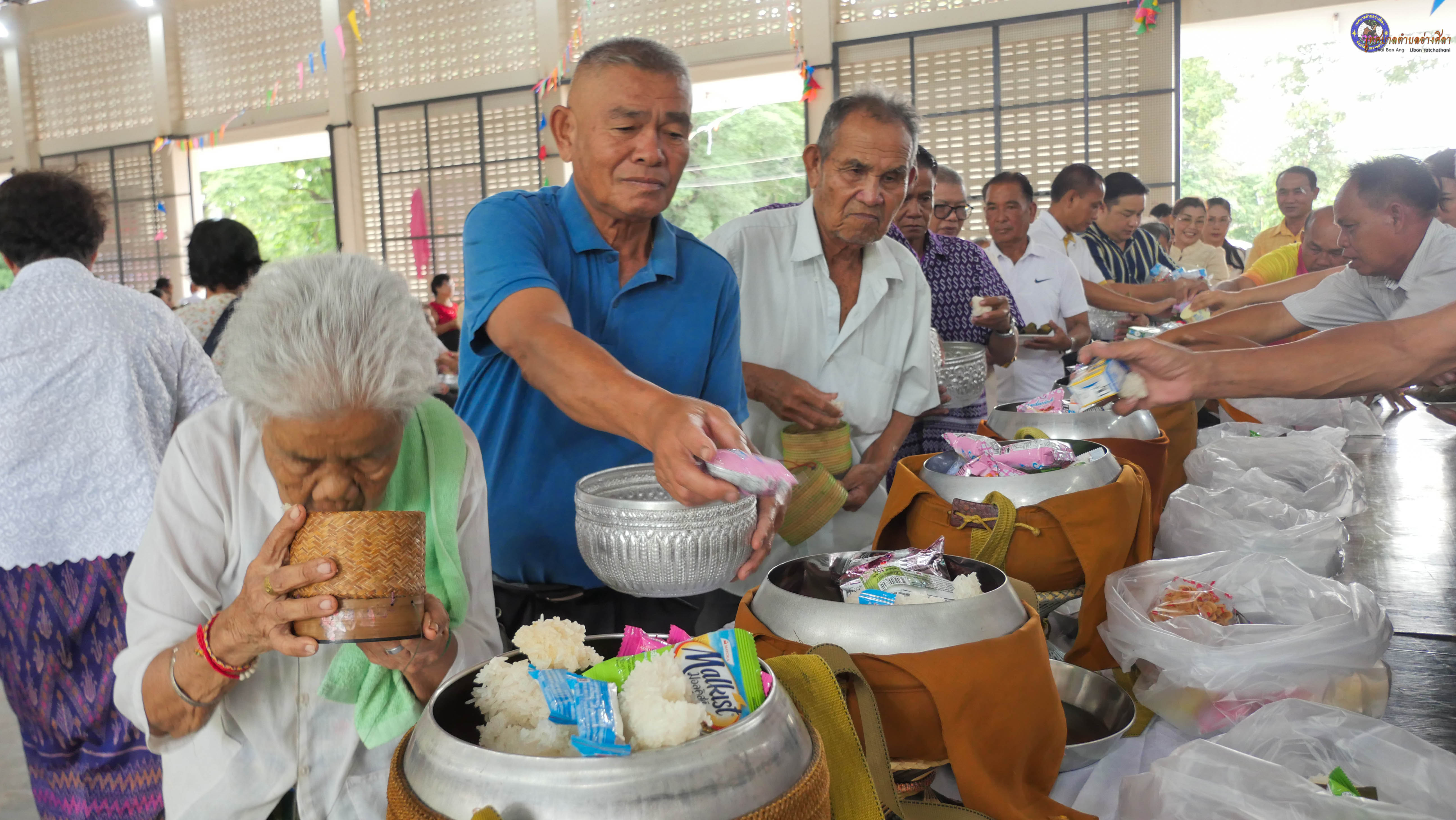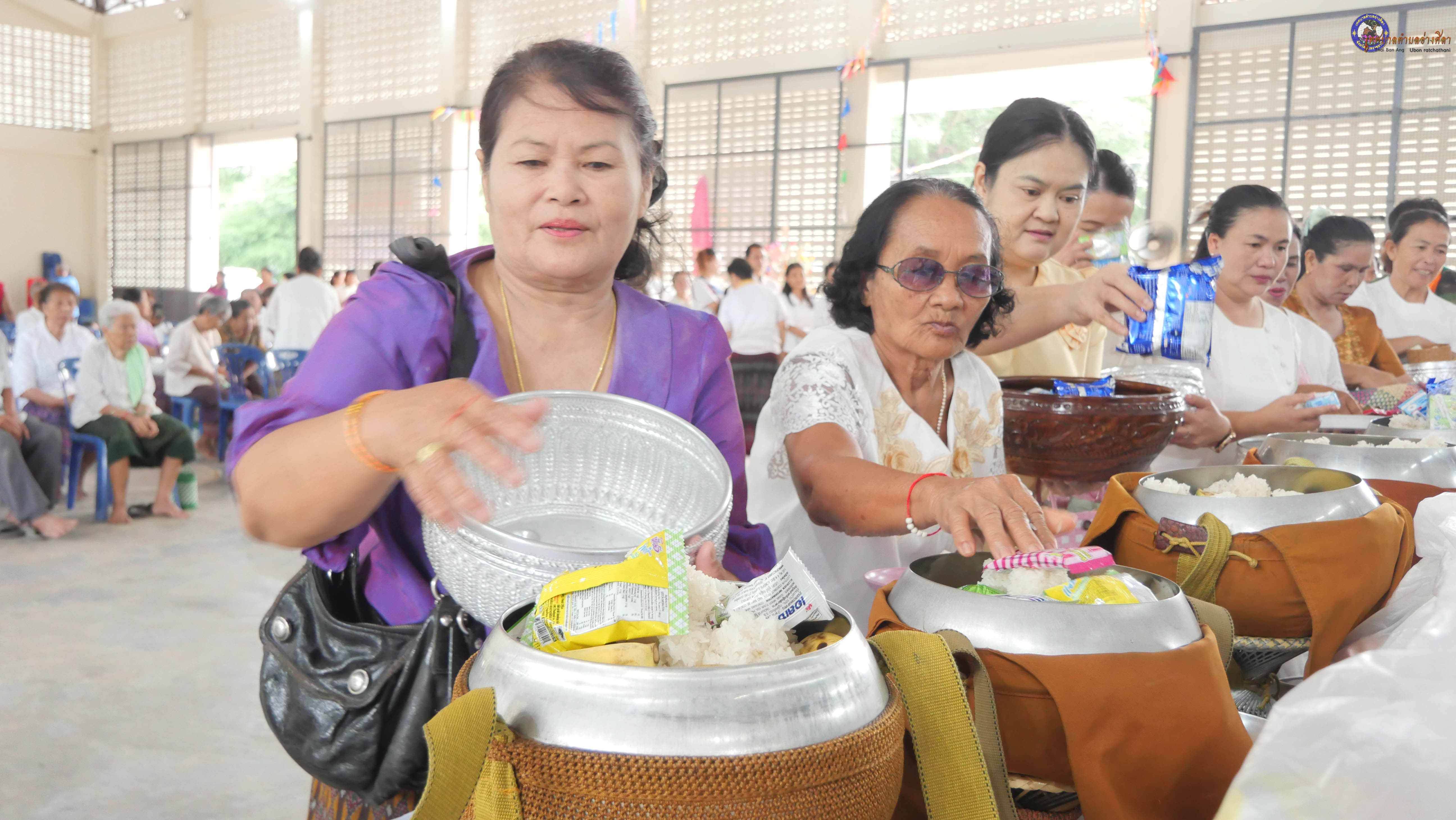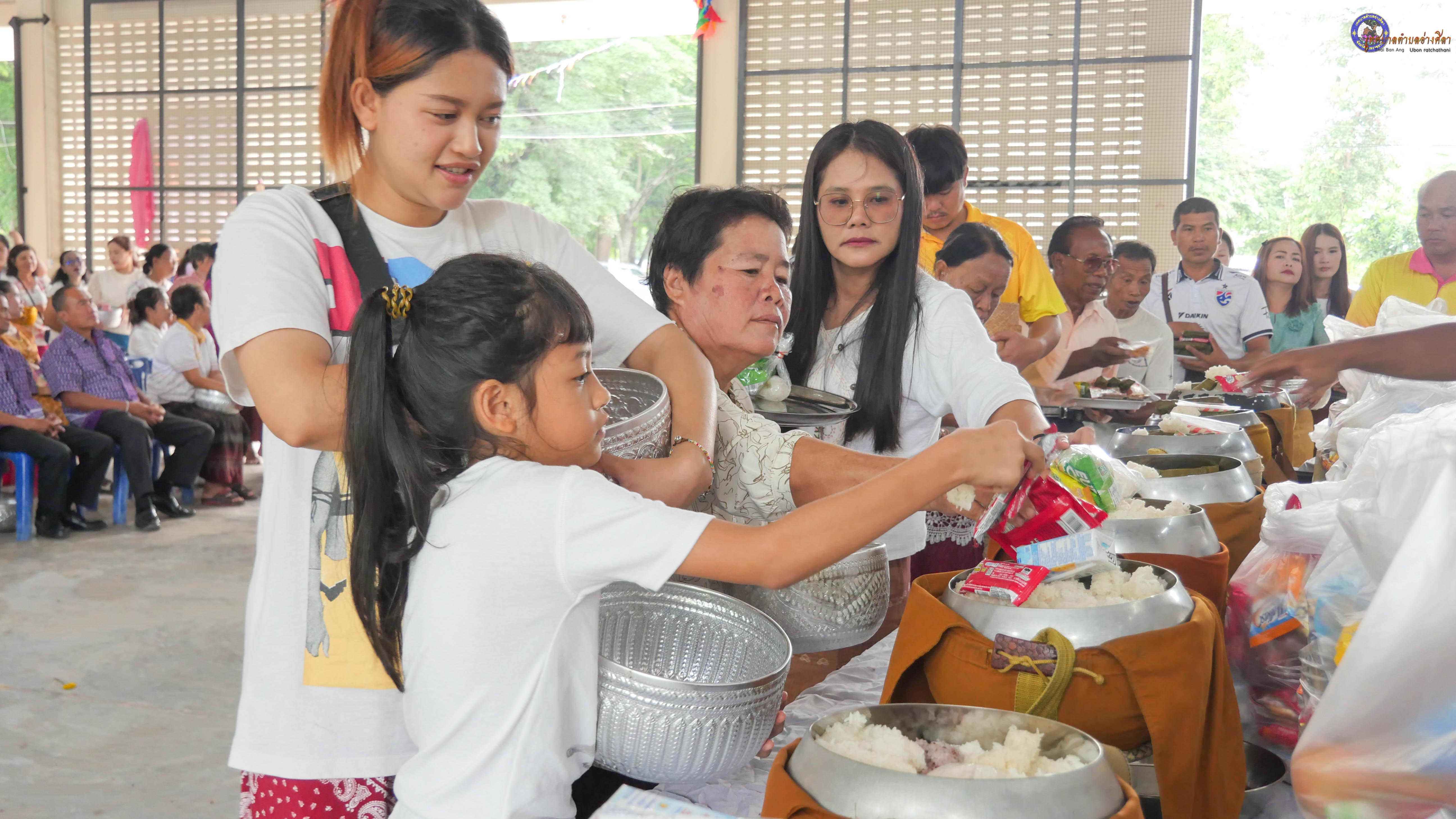 ทำบุญตักบาตร ถวายภัตาหารแด่พระภิกษุสงฆ์ งานบุญซำฮะ