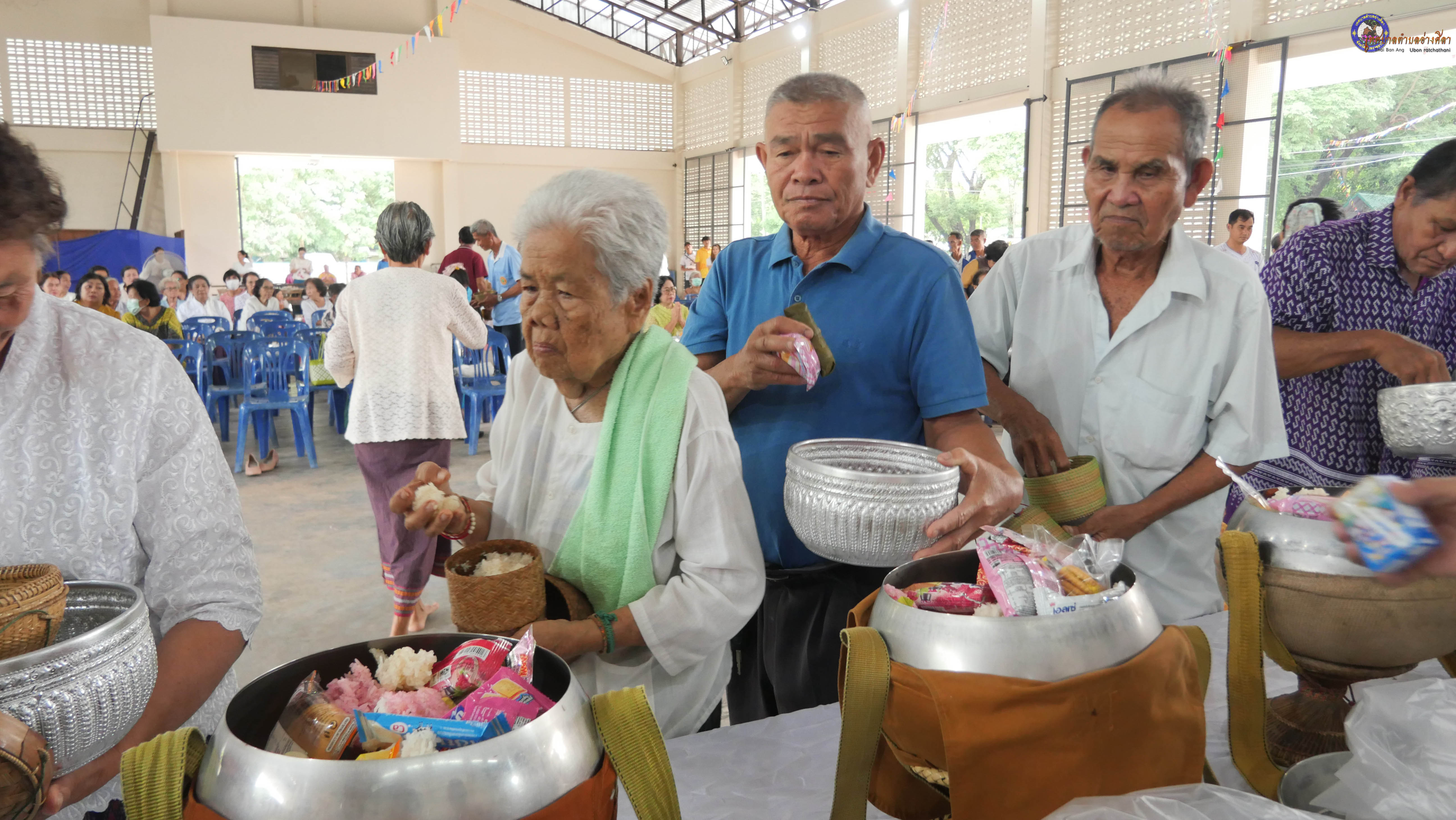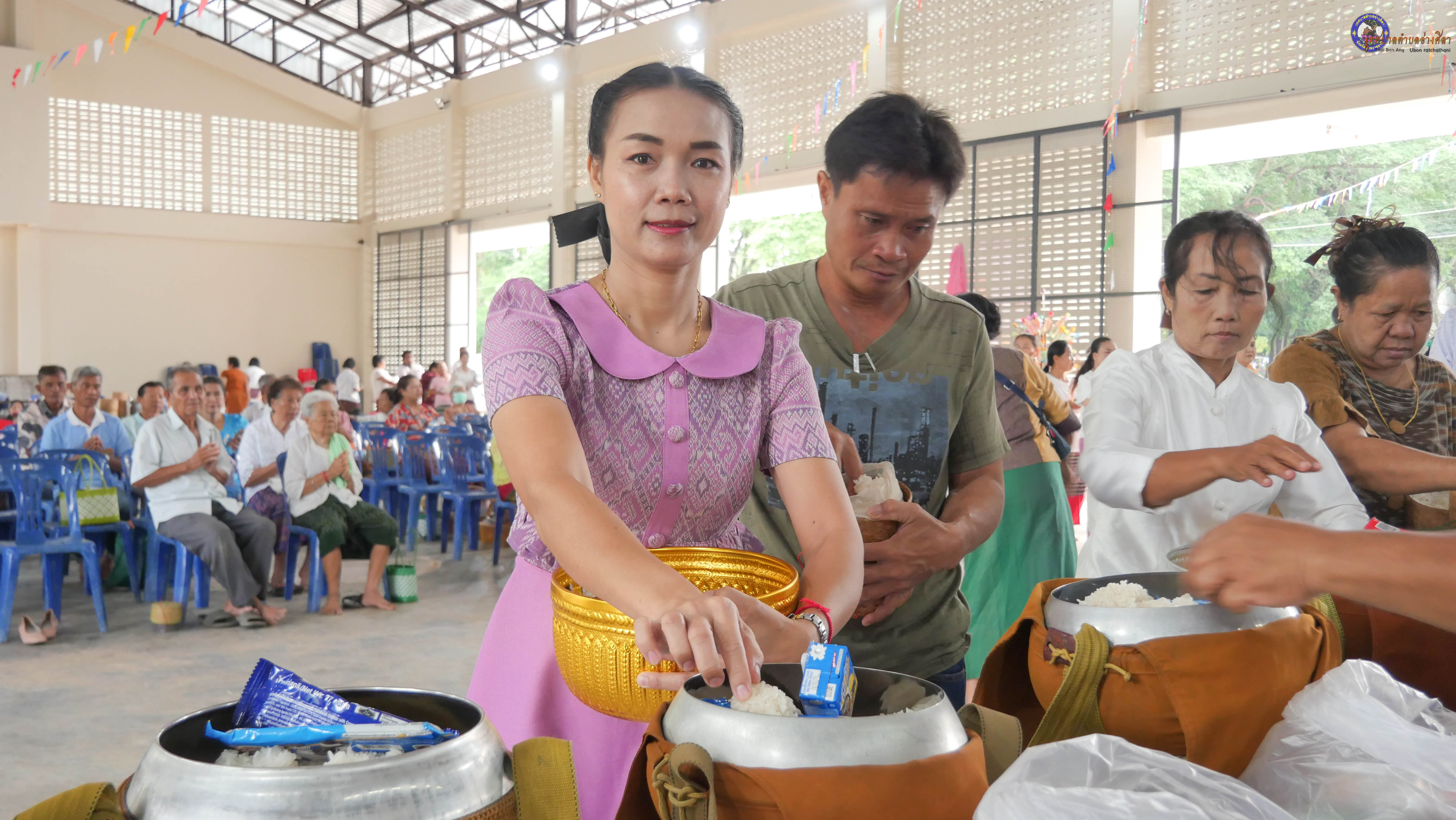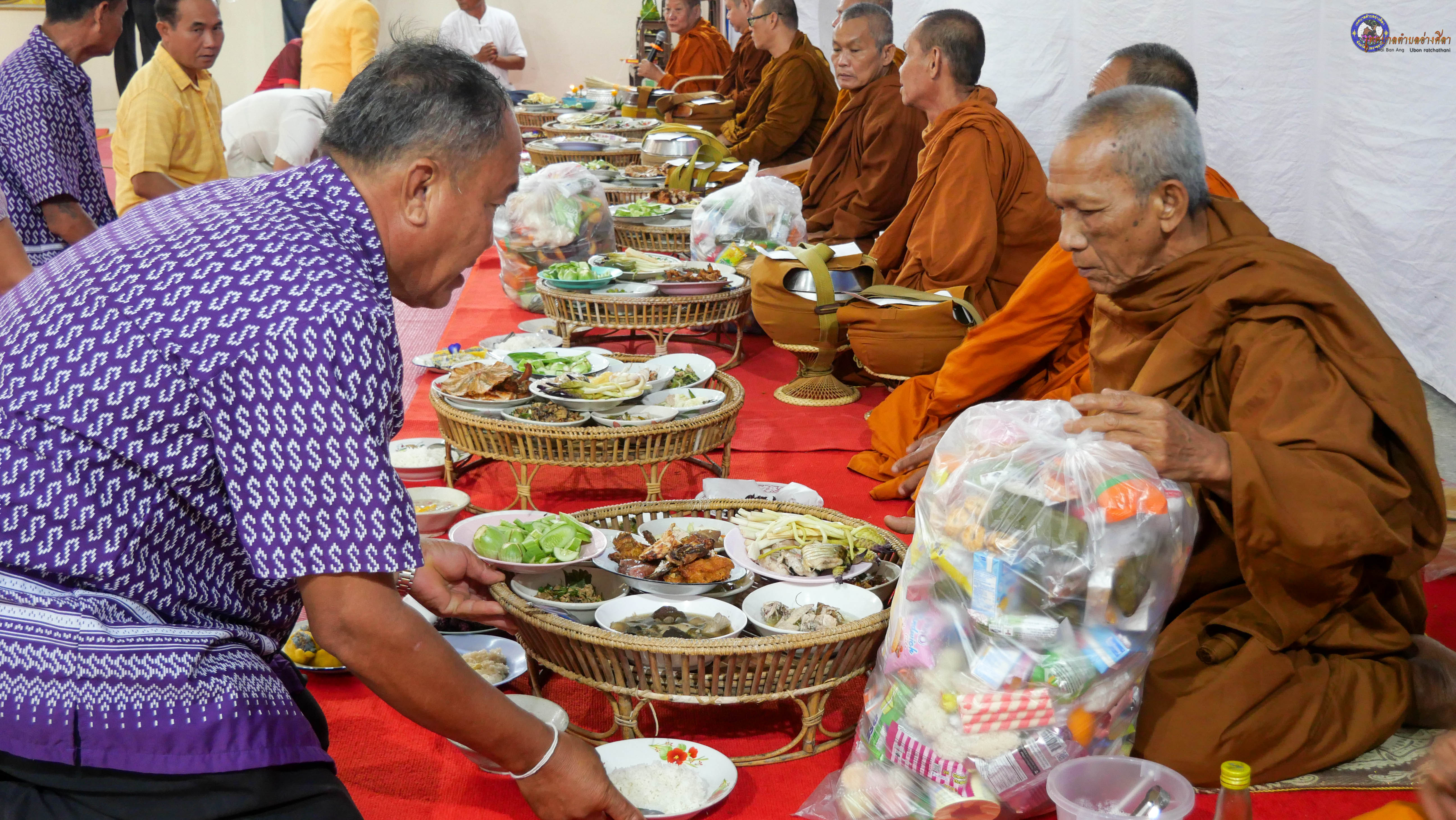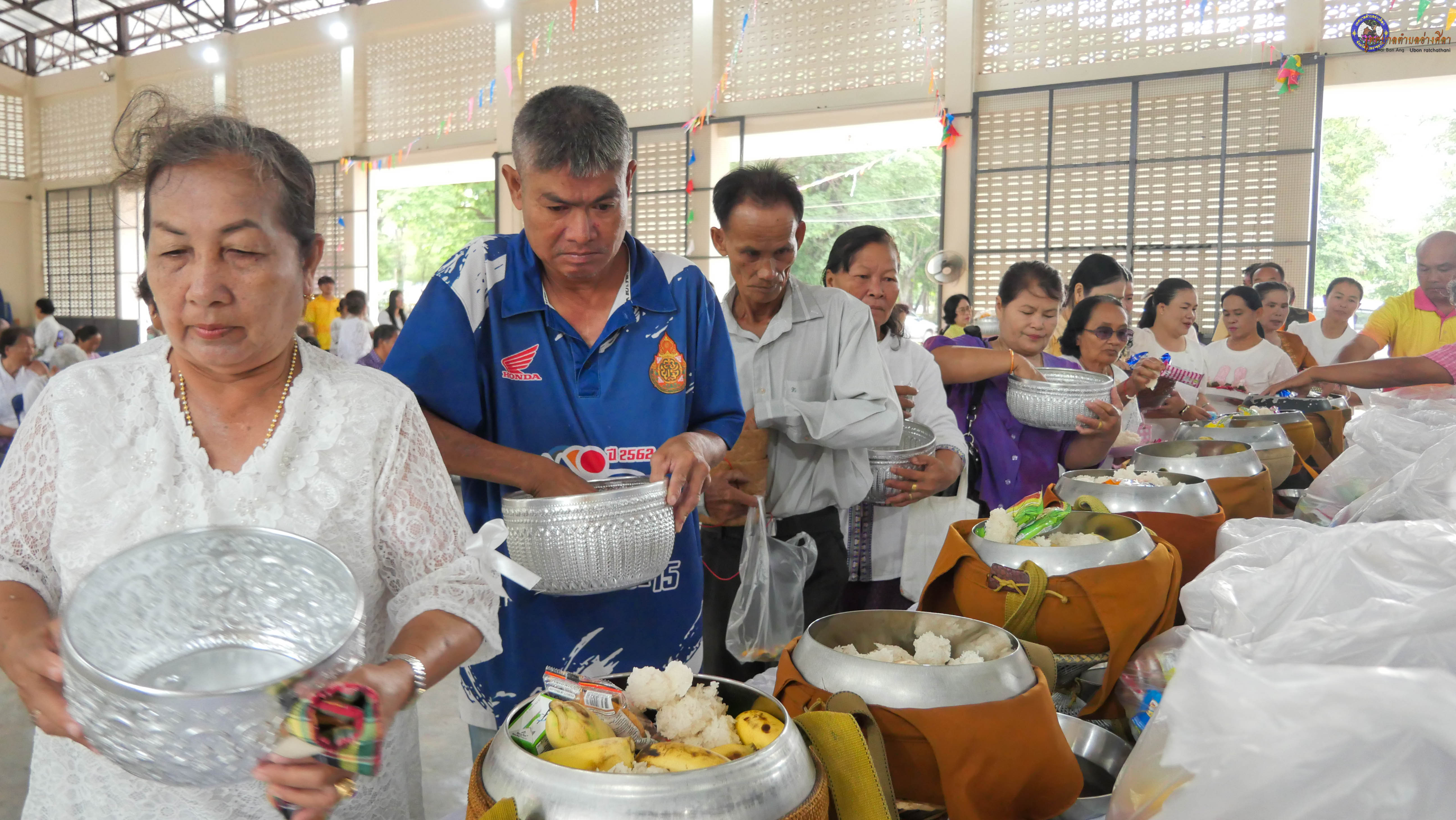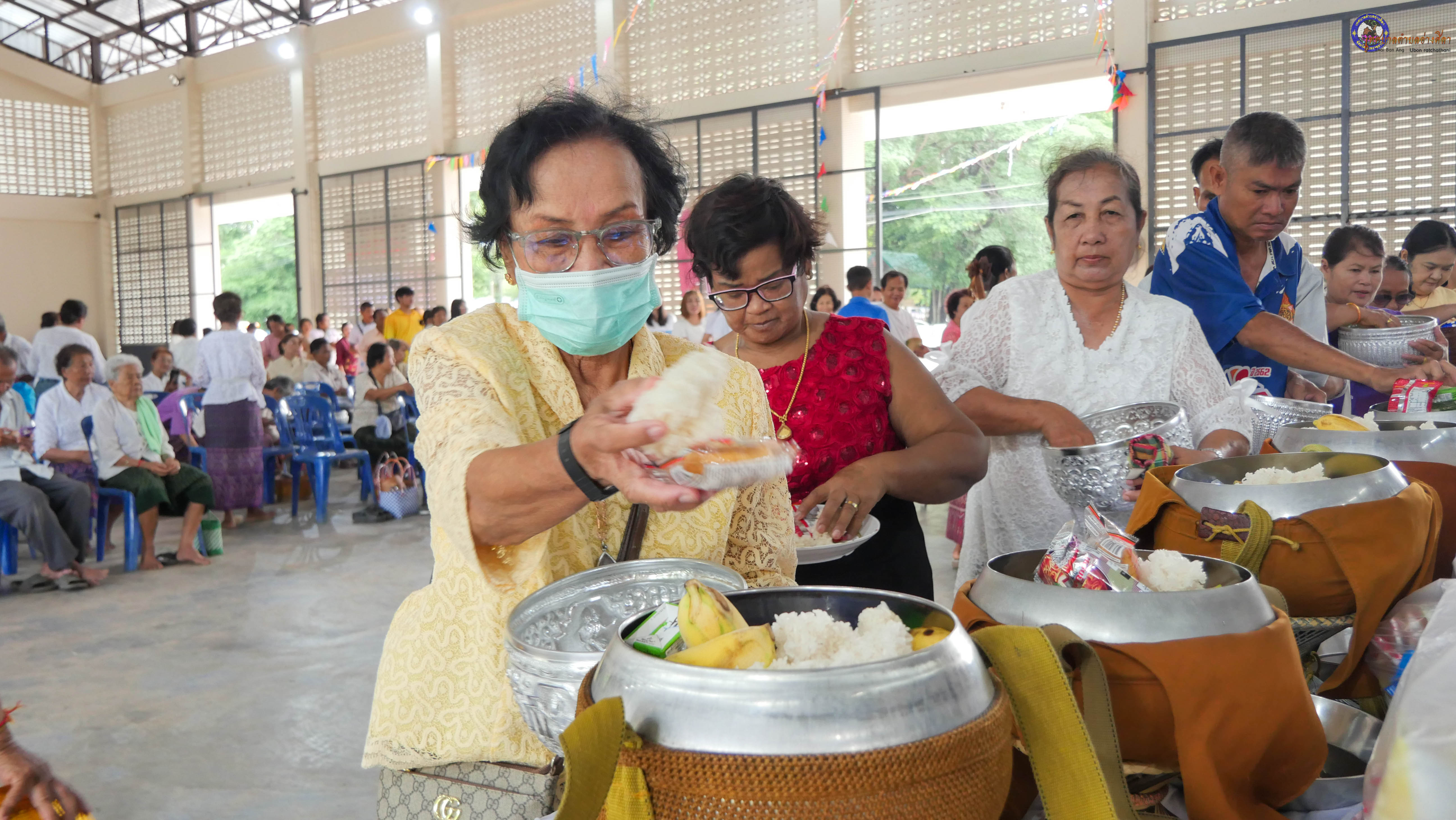 ทำบุญตักบาตร ถวายภัตาหารแด่พระภิกษุสงฆ์ งานบุญซำฮะ