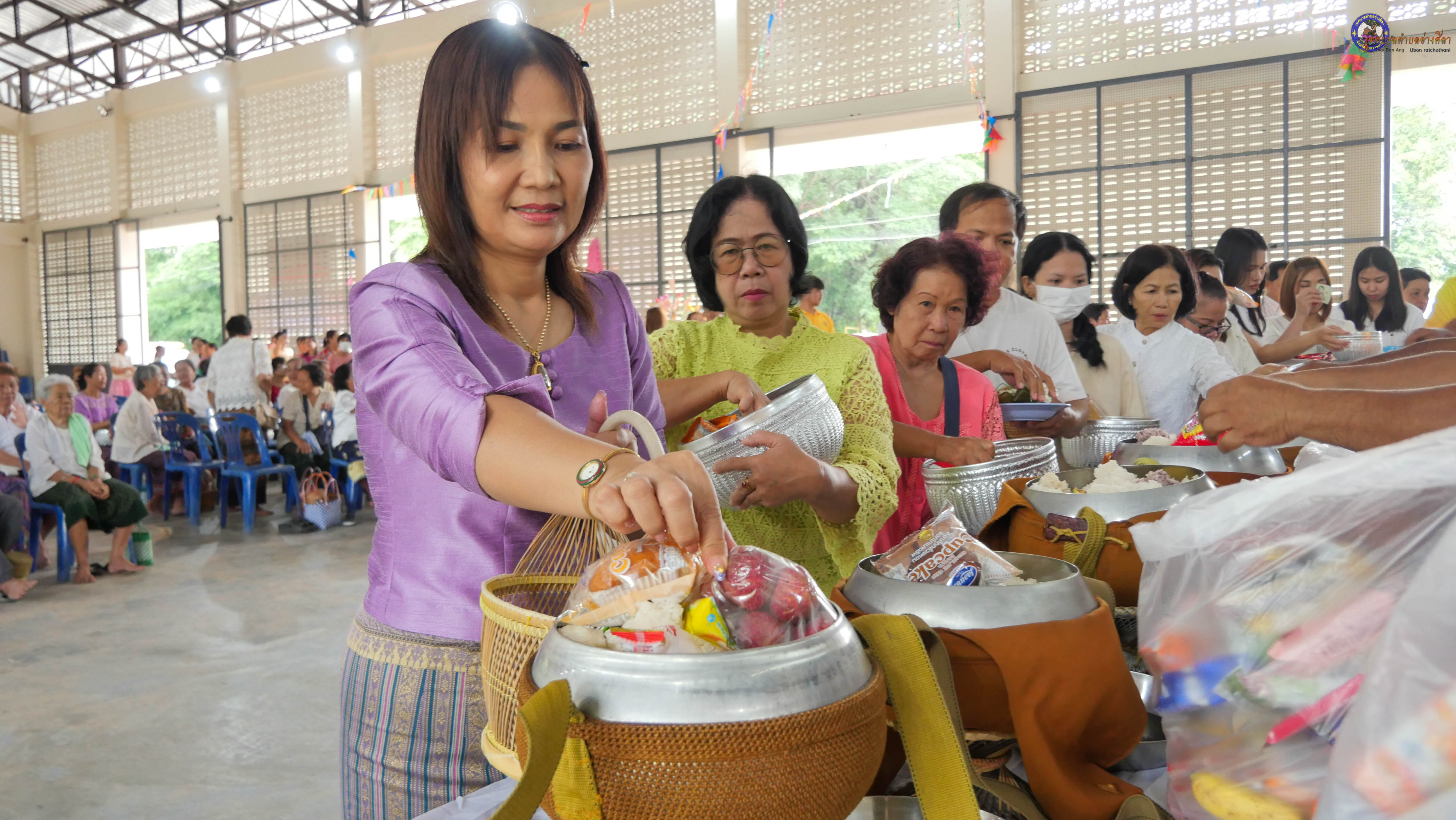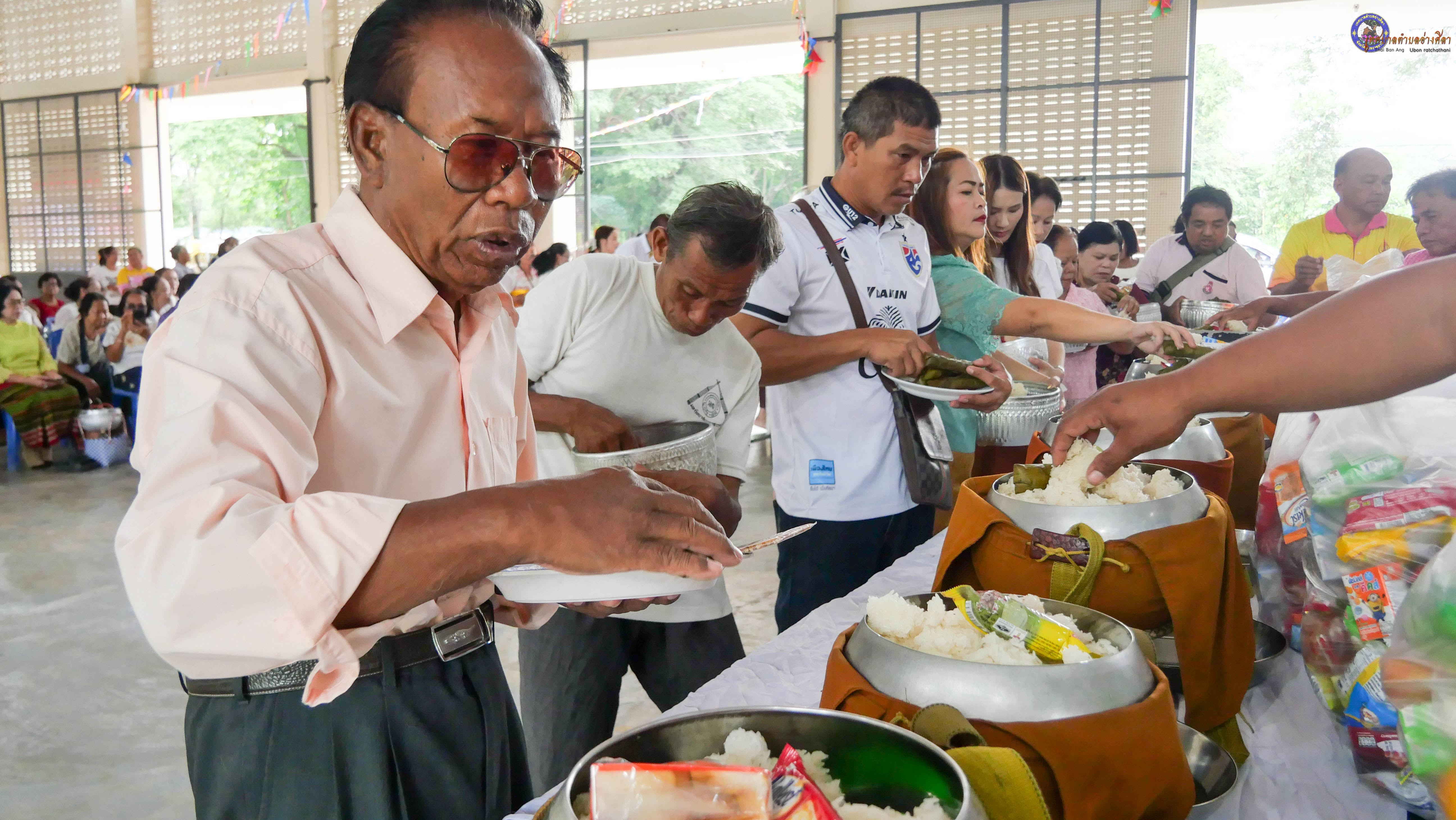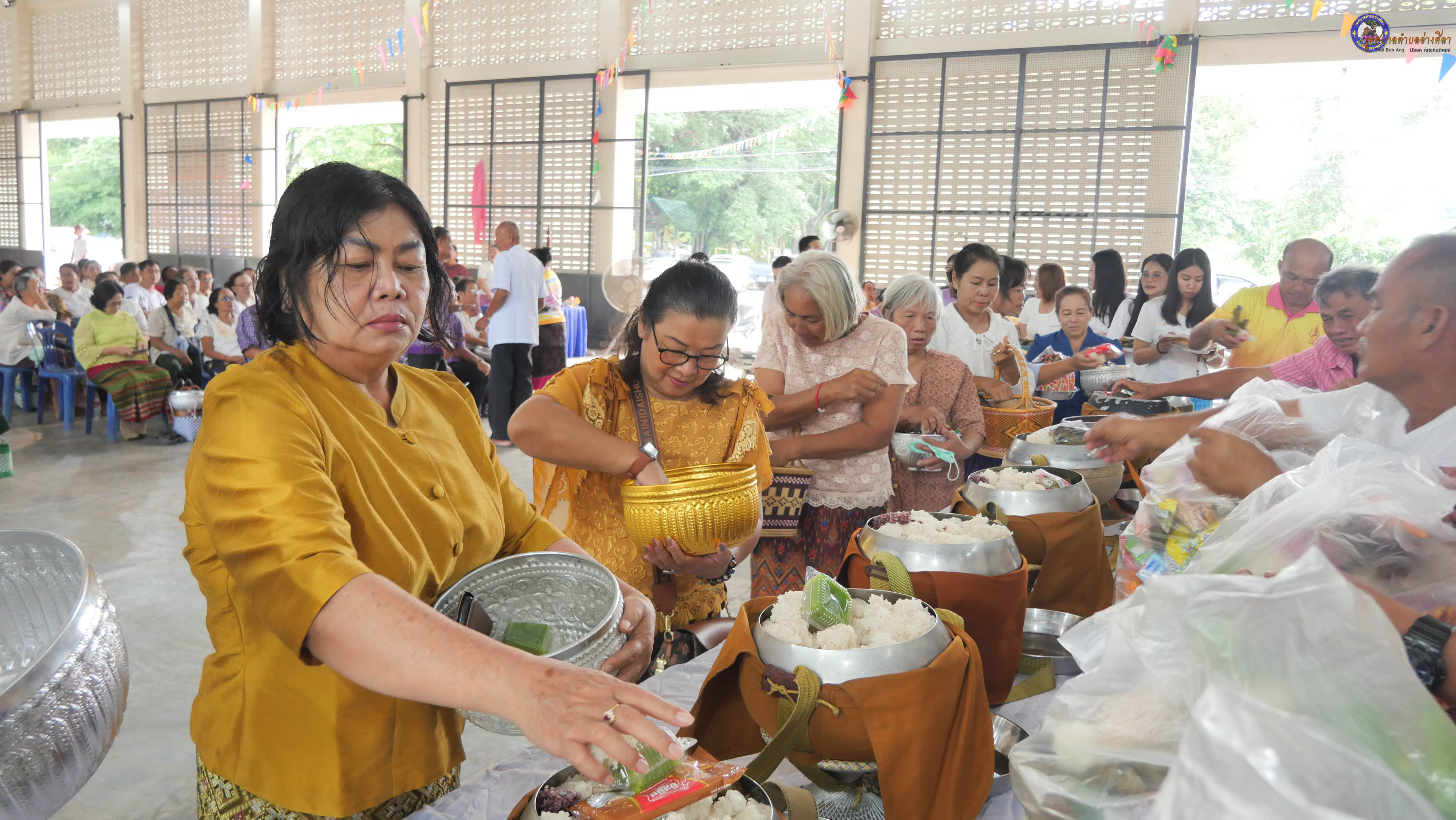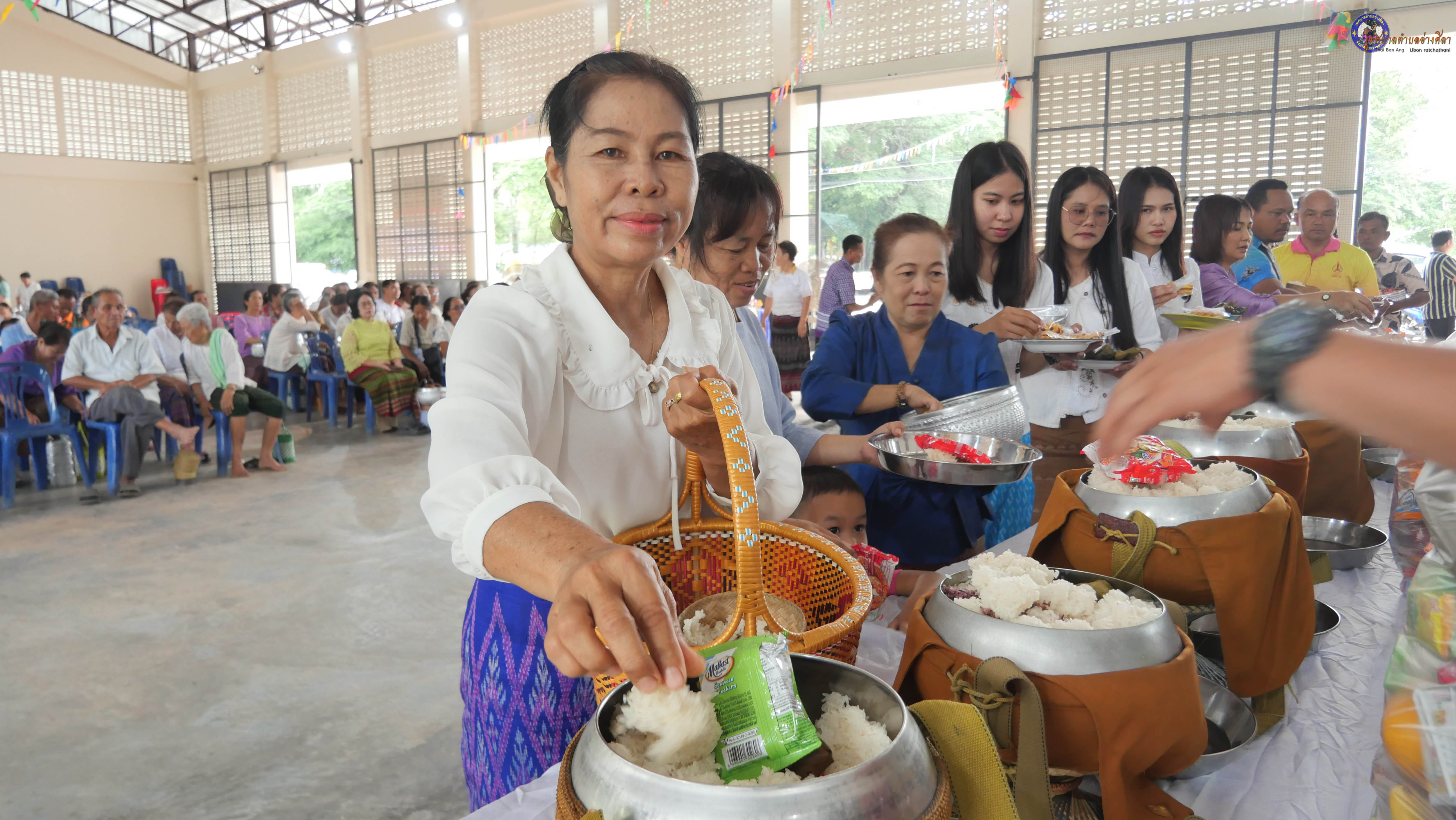 ทำบุญตักบาตร ถวายภัตาหารแด่พระภิกษุสงฆ์ งานบุญซำฮะ
