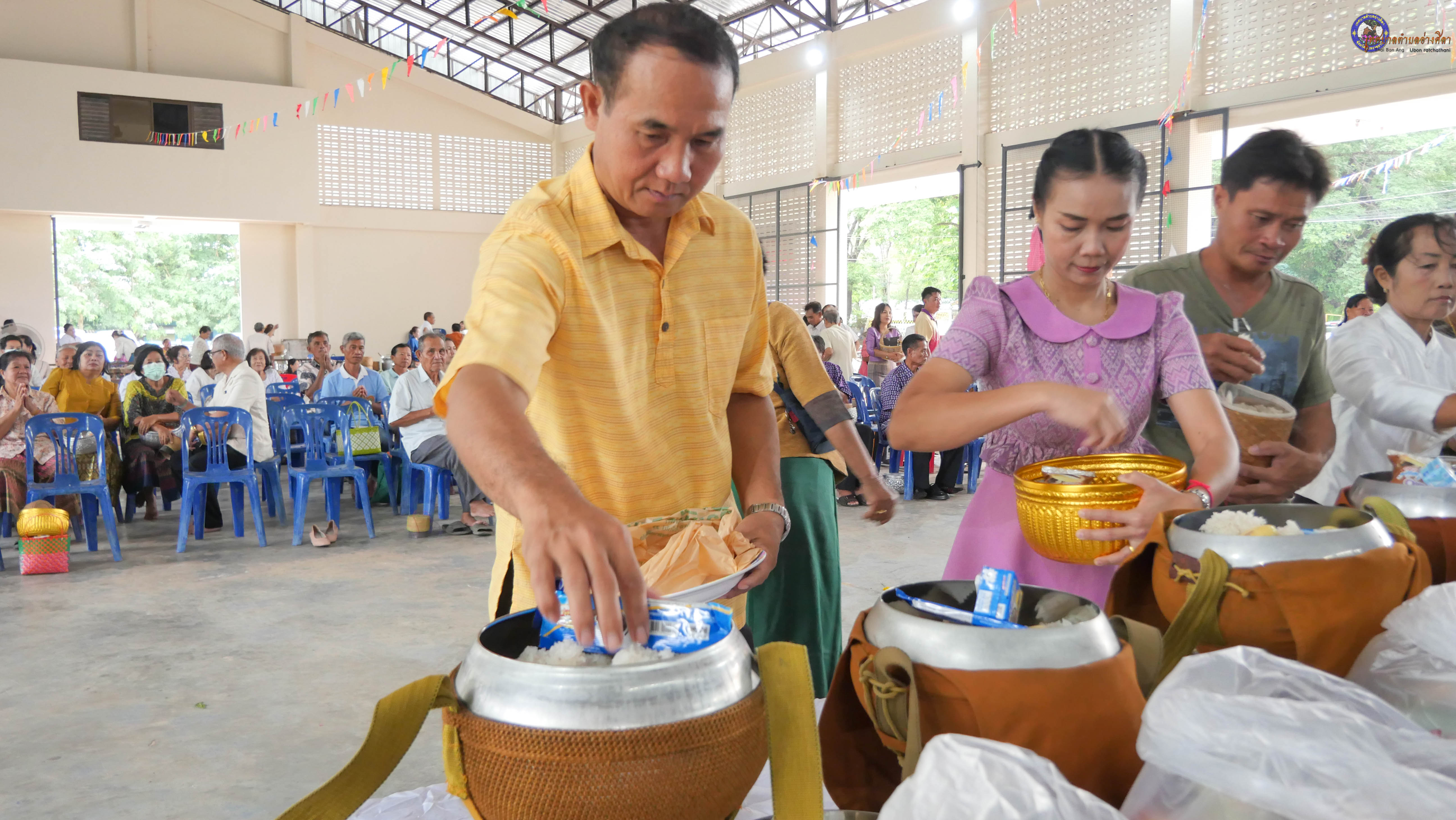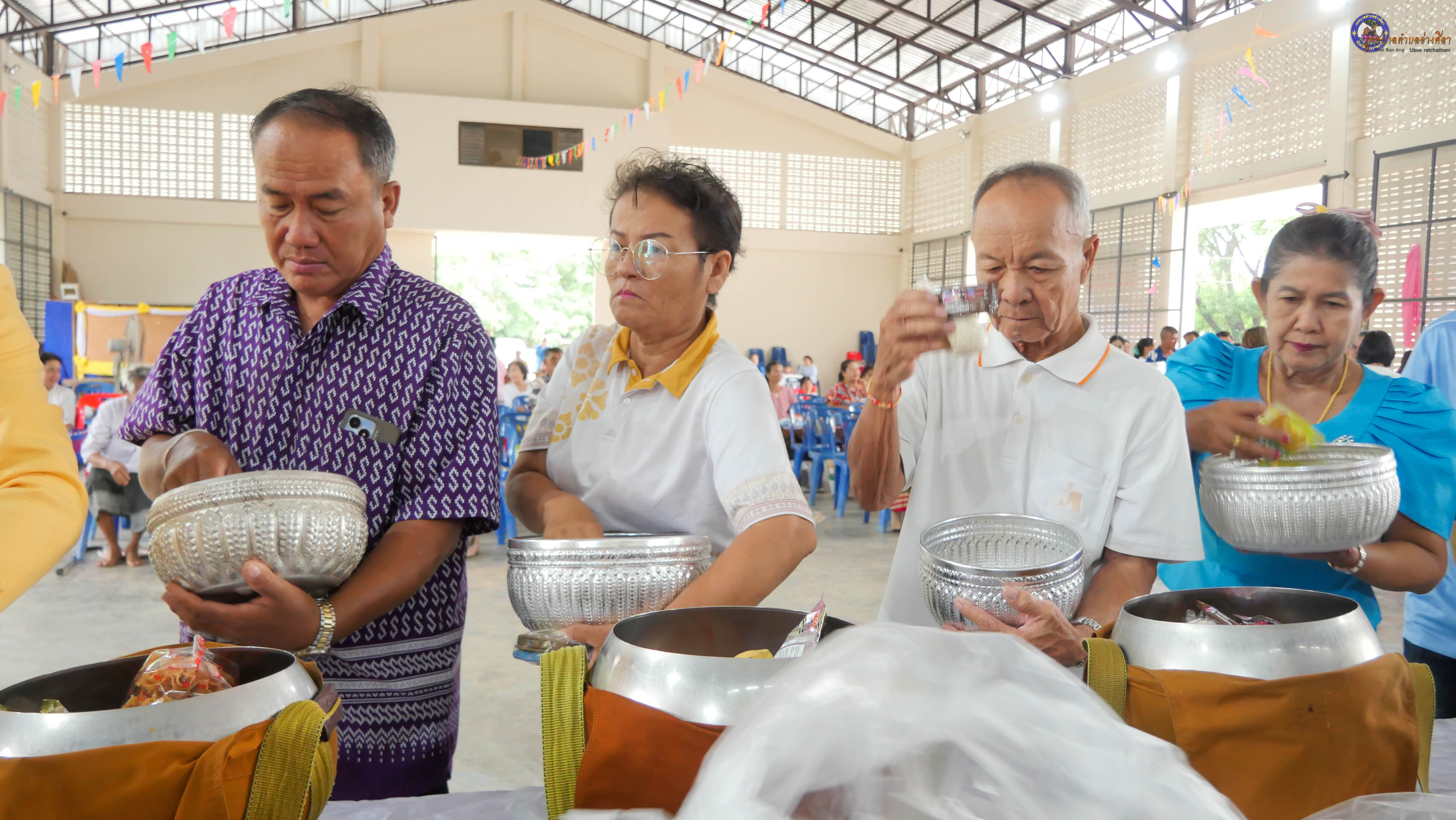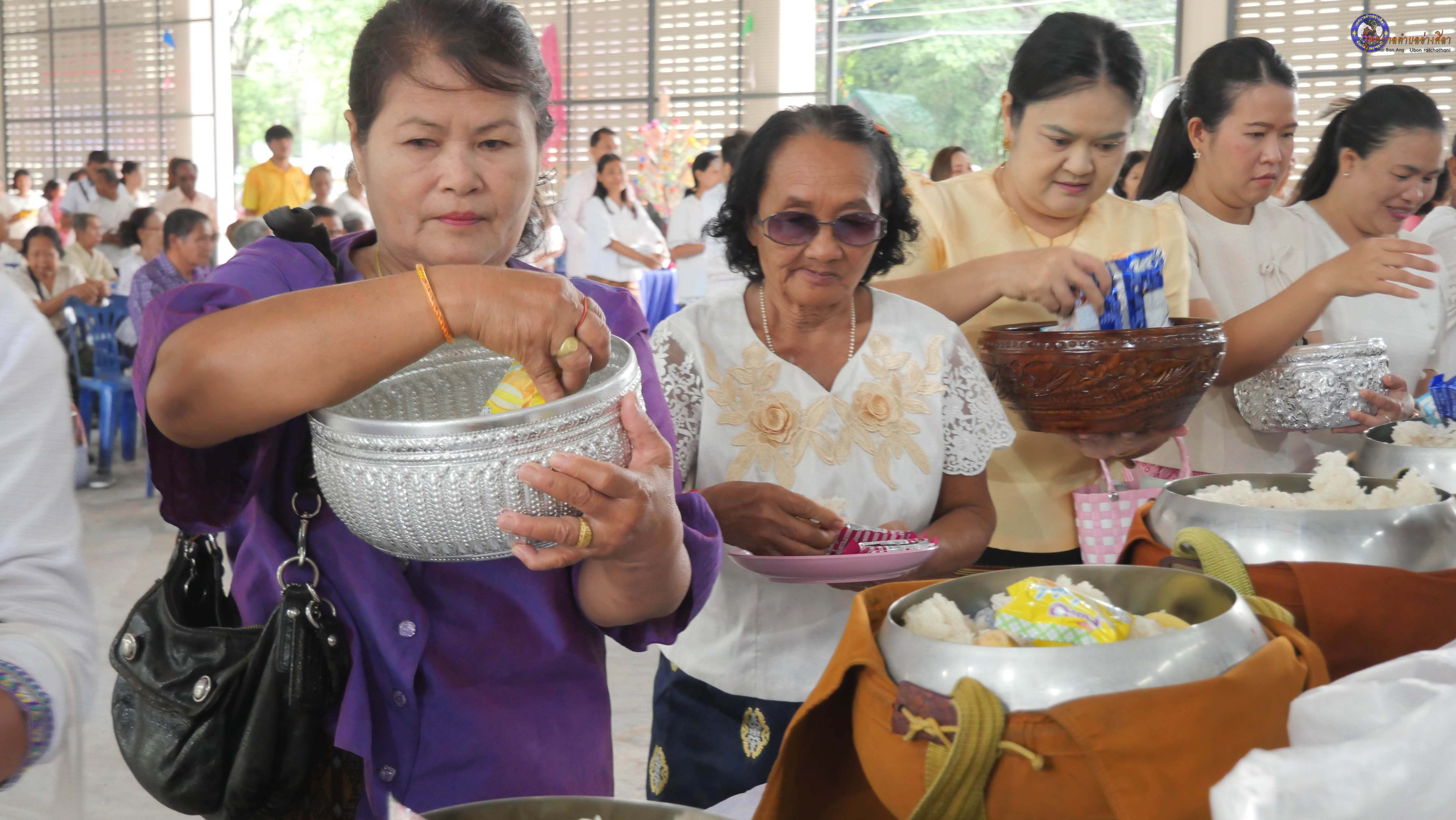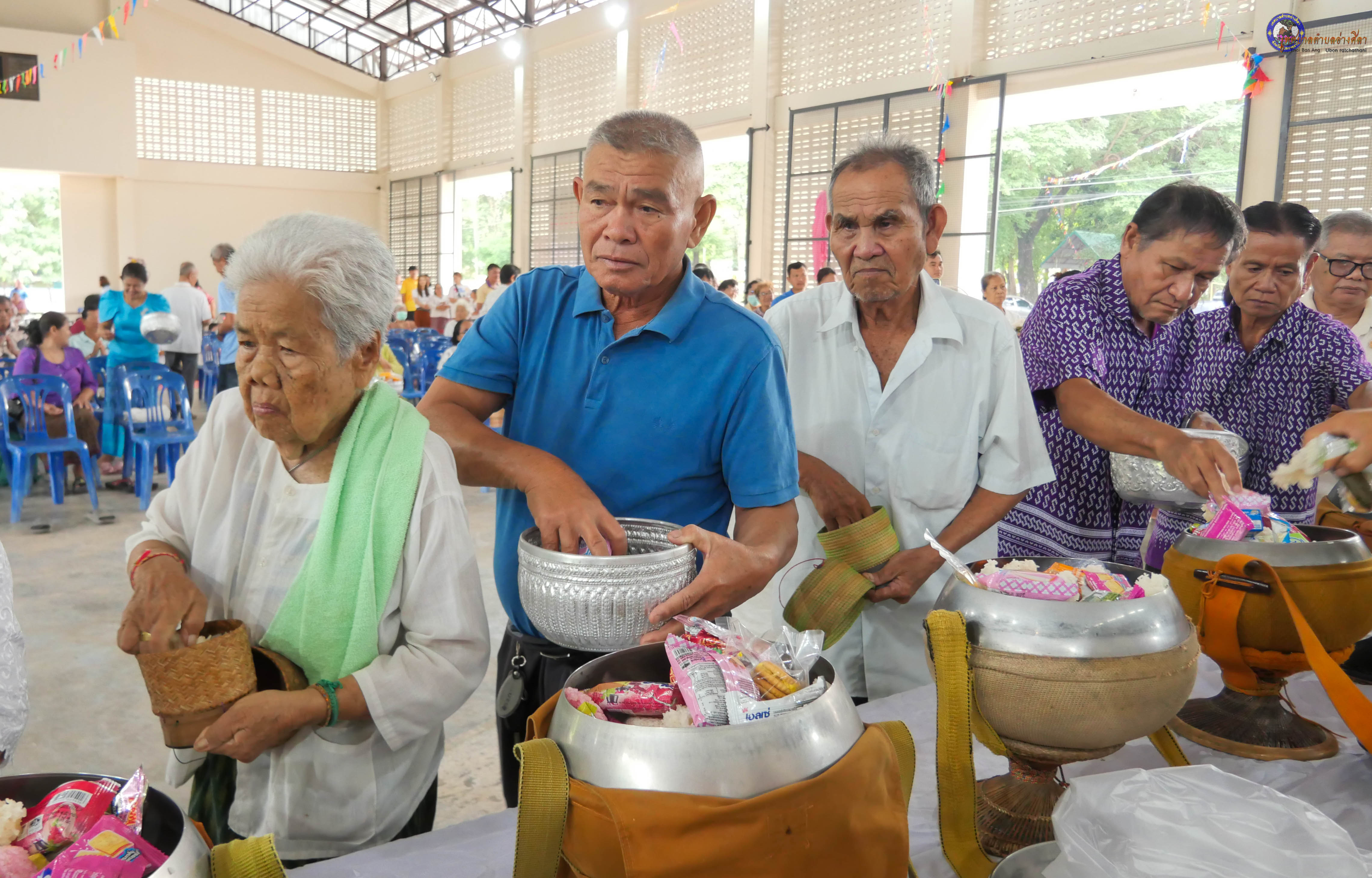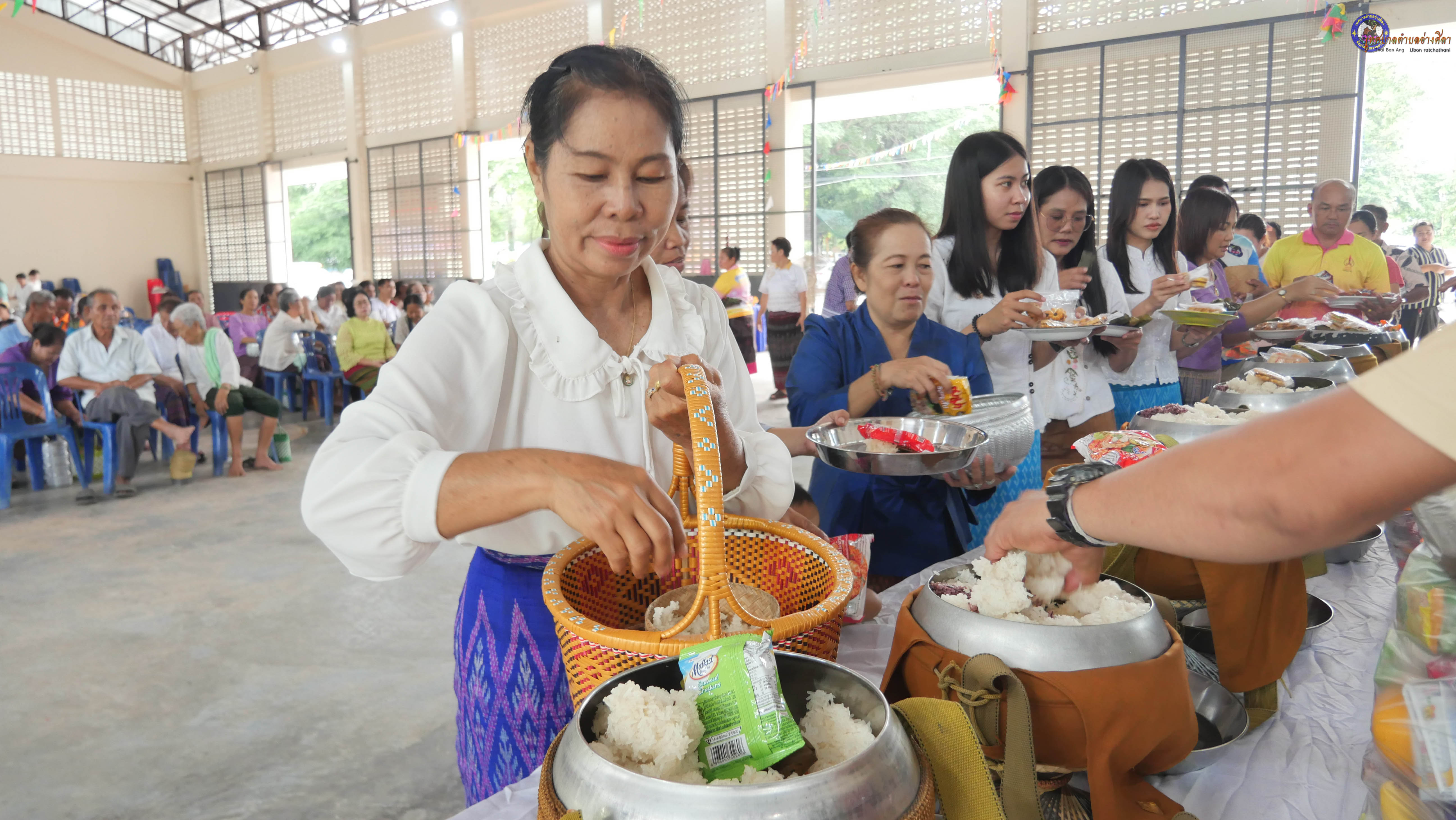ทำบุญตักบาตร ถวายภัตาหารแด่พระภิกษุสงฆ์ งานบุญซำฮะ