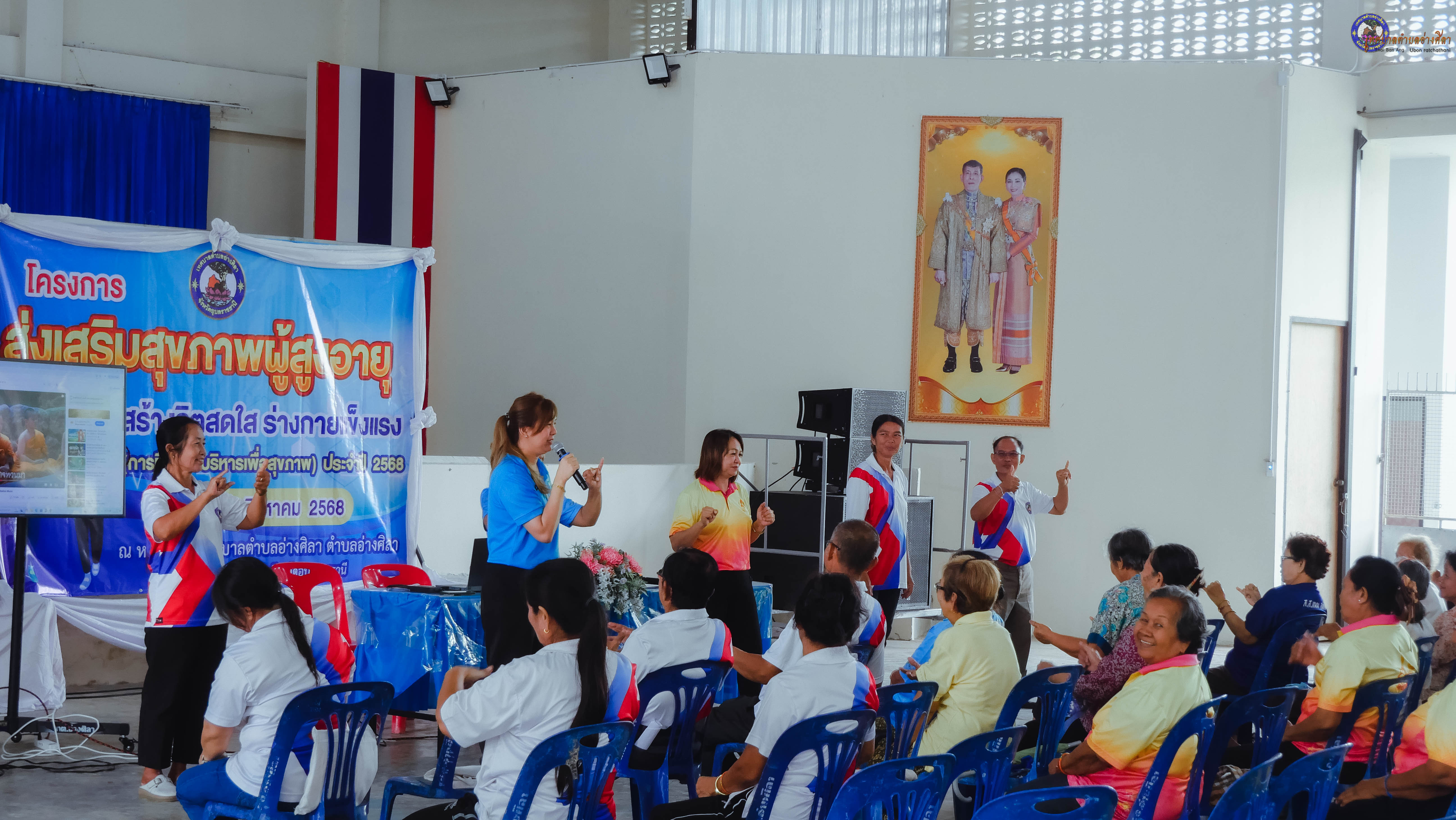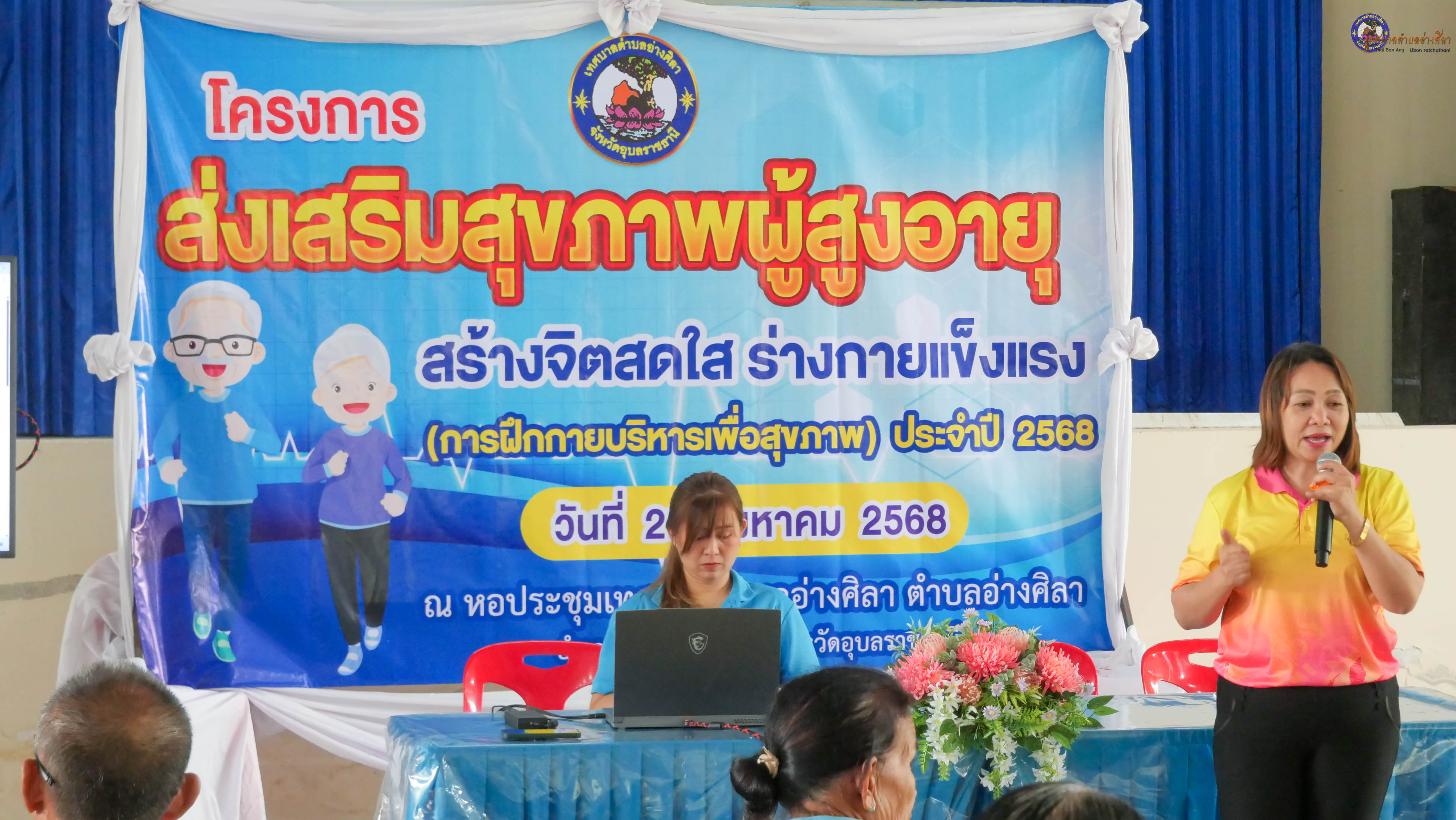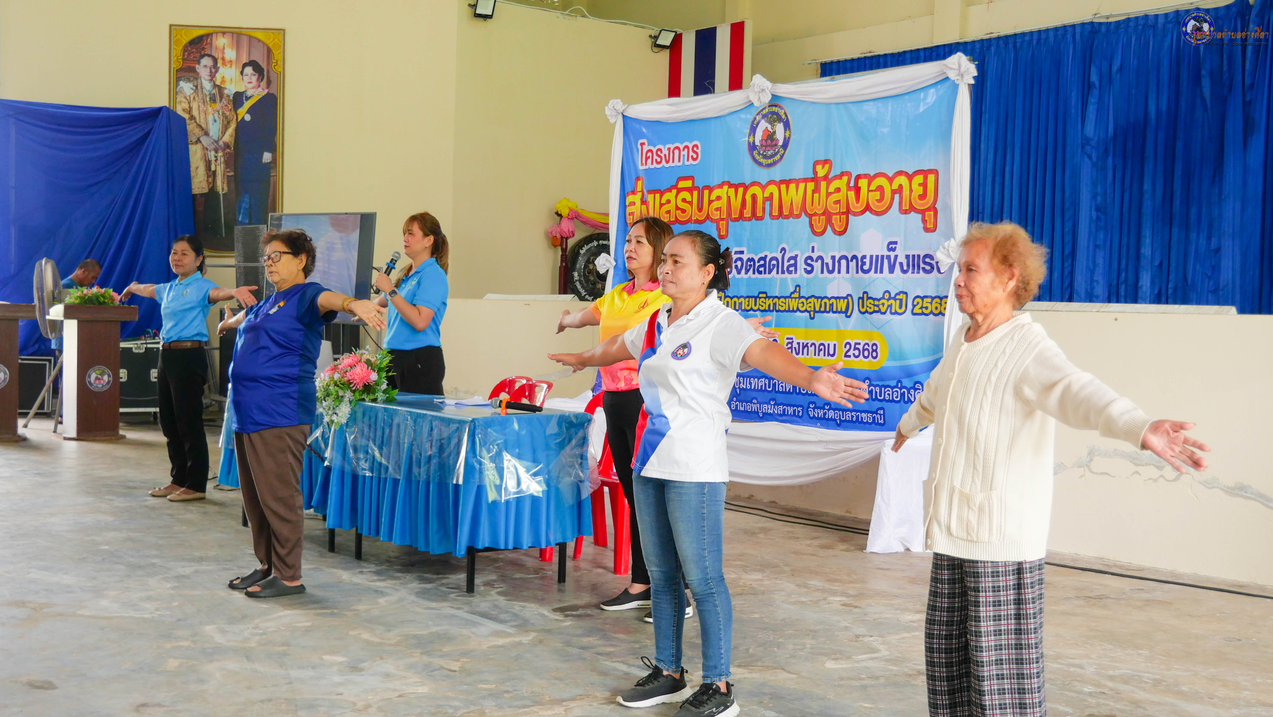 ร่วมเป็นเกียรติในพิธีเปิดฯและเข้าร่วมโครงการส่งเสริมสุขภาพผู้สูงอายุ สร้างจิตสดใส ร่างกายแข็งแรง (การฝึกกายบริหารเพื่อสุขภาพ) ประจำปีงบประมาณ 2568 โดยมี นางนภาภรณ์ ศุภลักษณ์ พยาบาลวิชาชีพชำนาญการ นางสาวสุมาพร ศรีสุข นักวิชาการสาธารณสุขชำนาญการ วิทยากร จากโรงพยาบาลส่งเสริมสุขภาพตำบลอ่างศิลา .