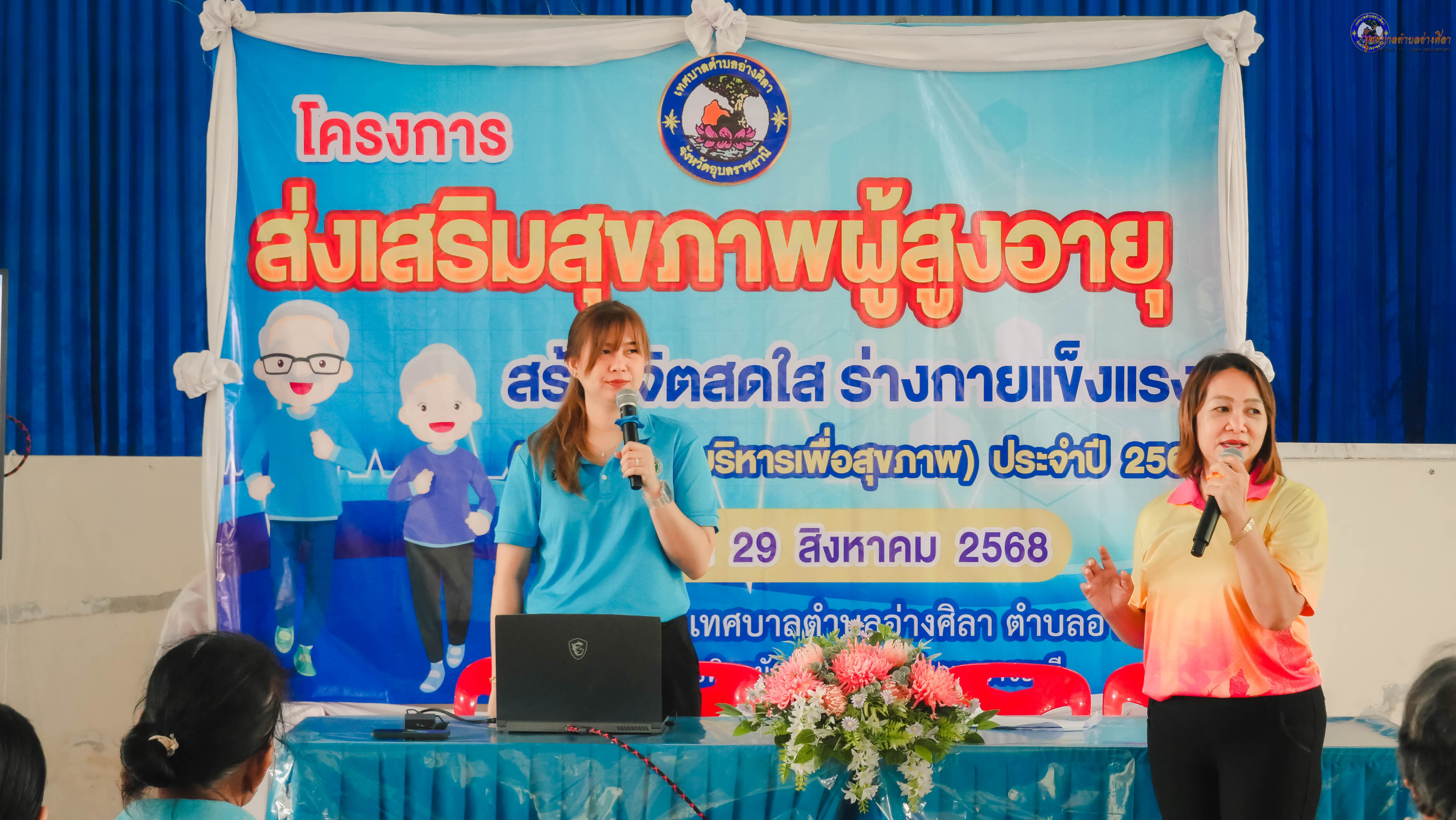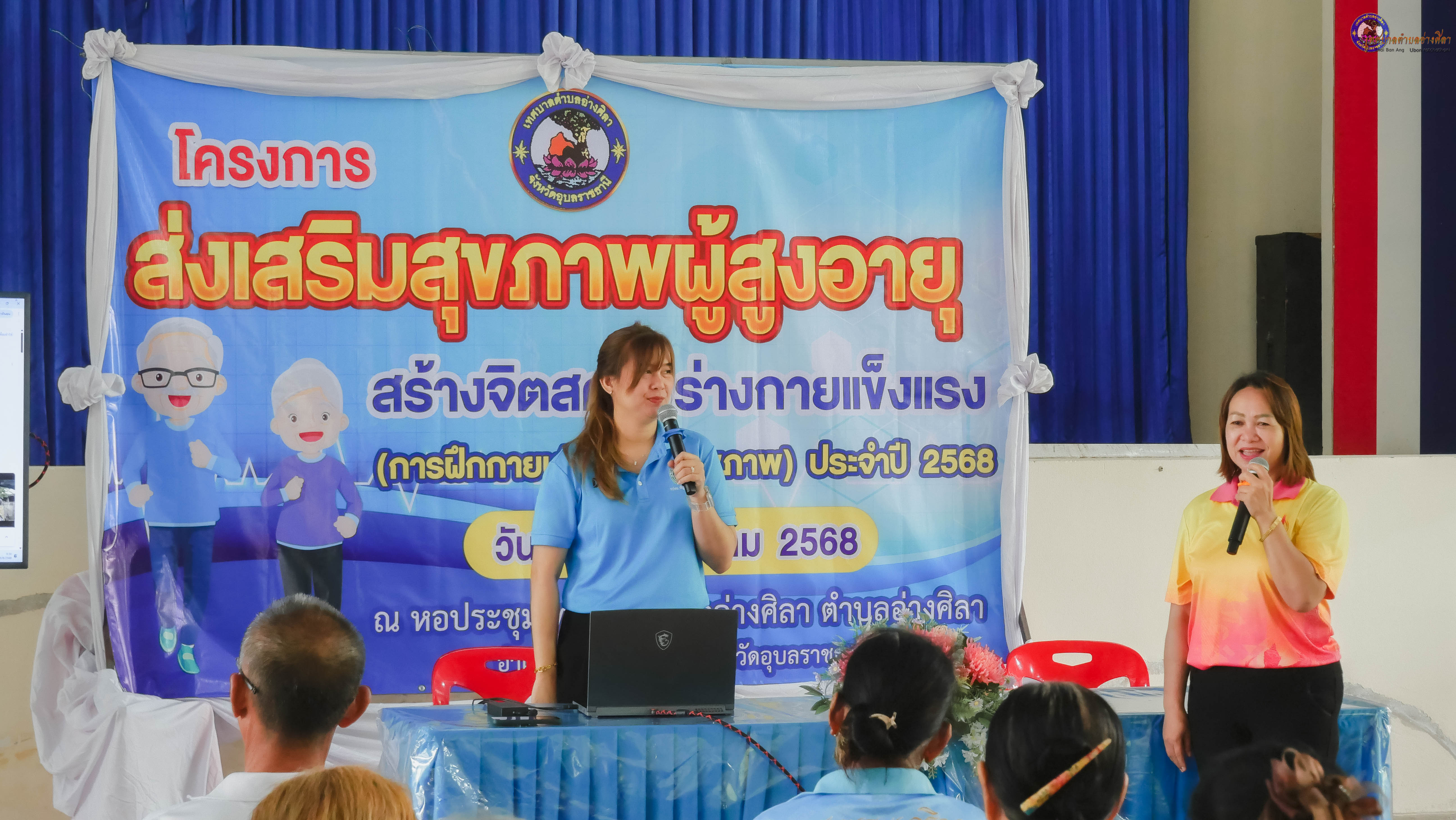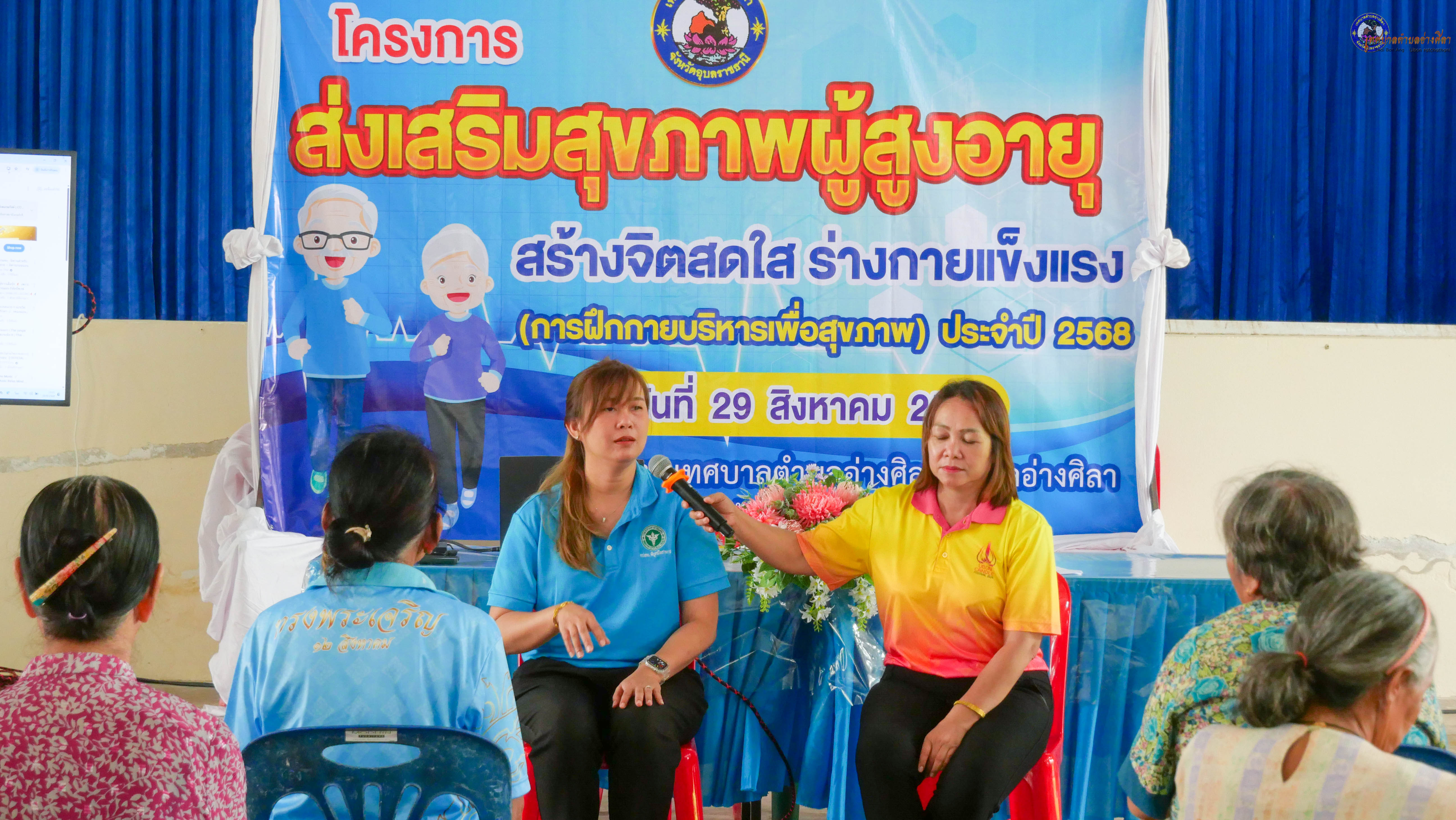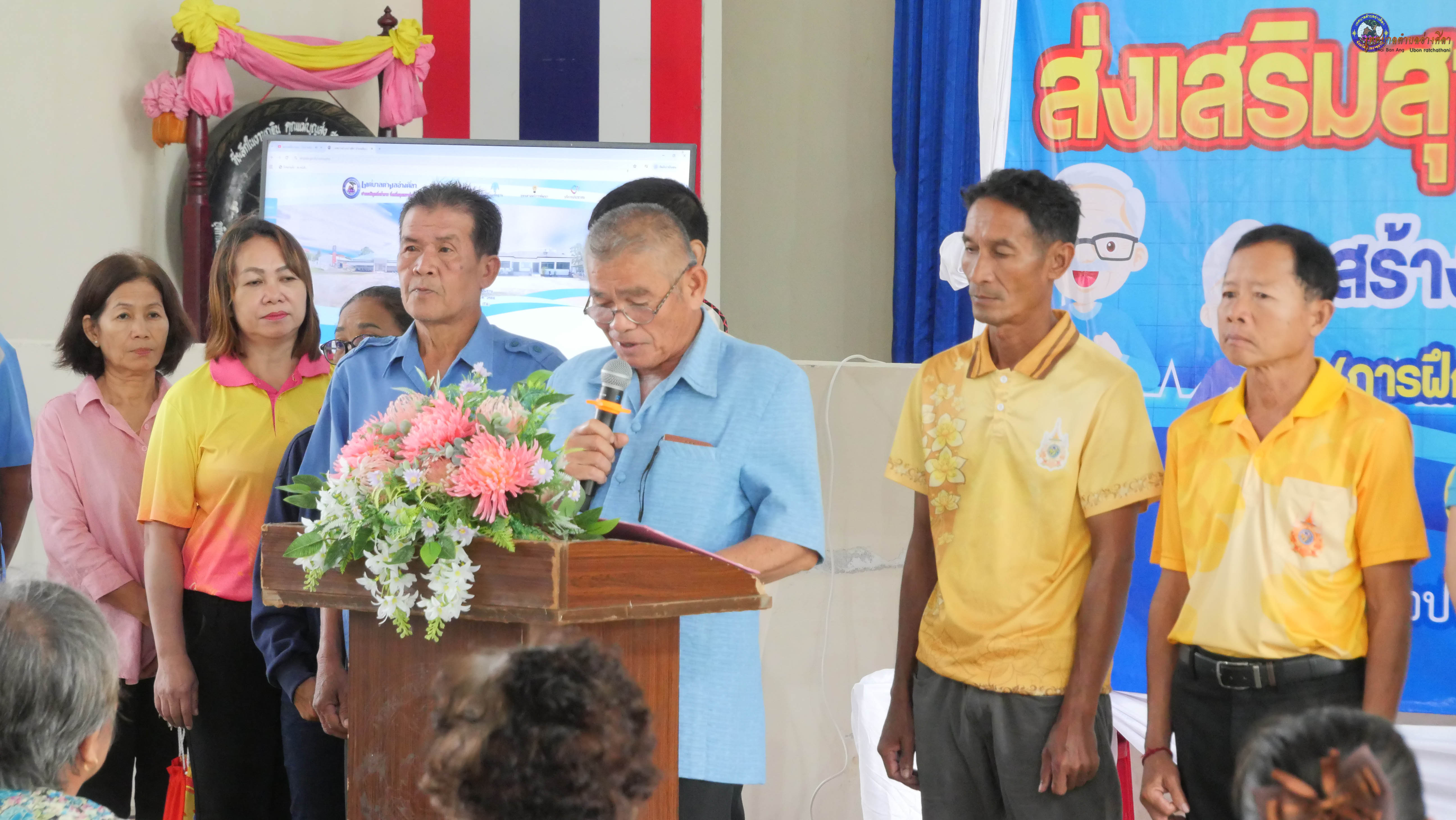 ร่วมเป็นเกียรติในพิธีเปิดฯและเข้าร่วมโครงการส่งเสริมสุขภาพผู้สูงอายุ สร้างจิตสดใส ร่างกายแข็งแรง (การฝึกกายบริหารเพื่อสุขภาพ) ประจำปีงบประมาณ 2568 โดยมี นางนภาภรณ์ ศุภลักษณ์ พยาบาลวิชาชีพชำนาญการ นางสาวสุมาพร ศรีสุข นักวิชาการสาธารณสุขชำนาญการ วิทยากร จากโรงพยาบาลส่งเสริมสุขภาพตำบลอ่างศิลา .