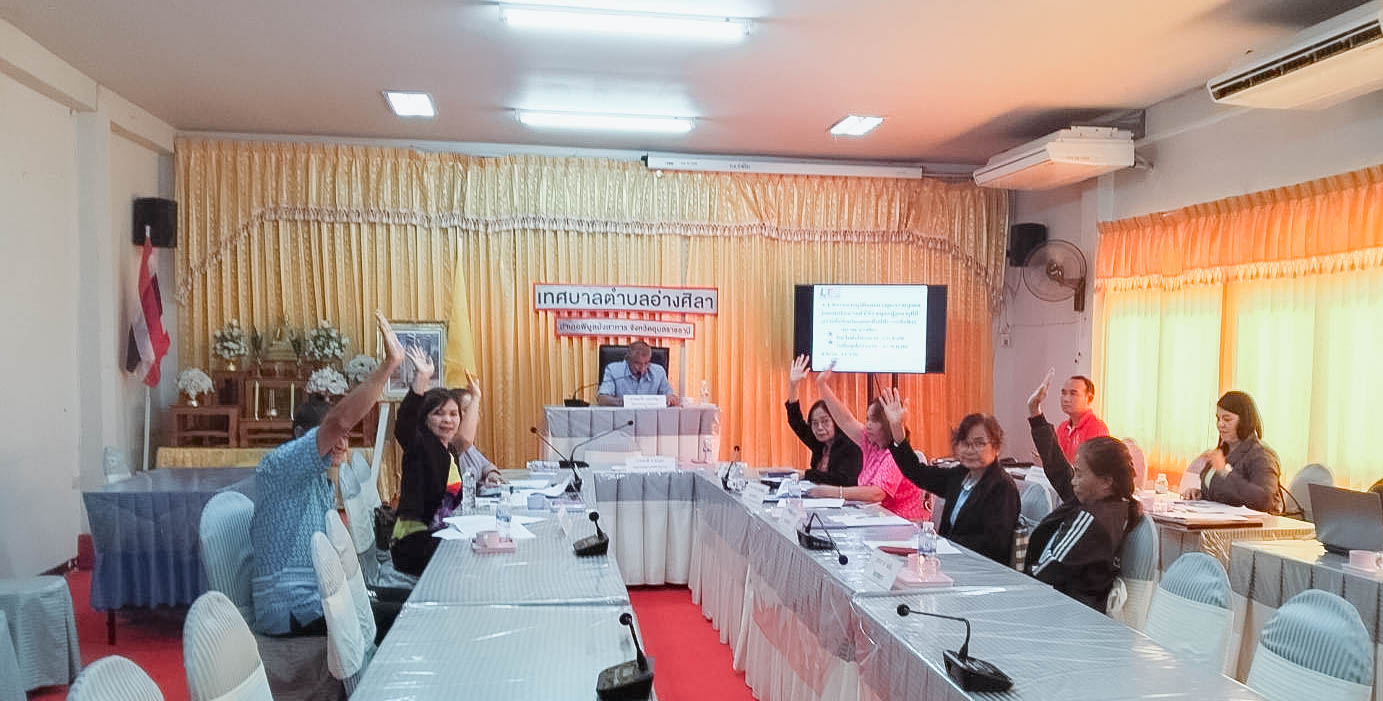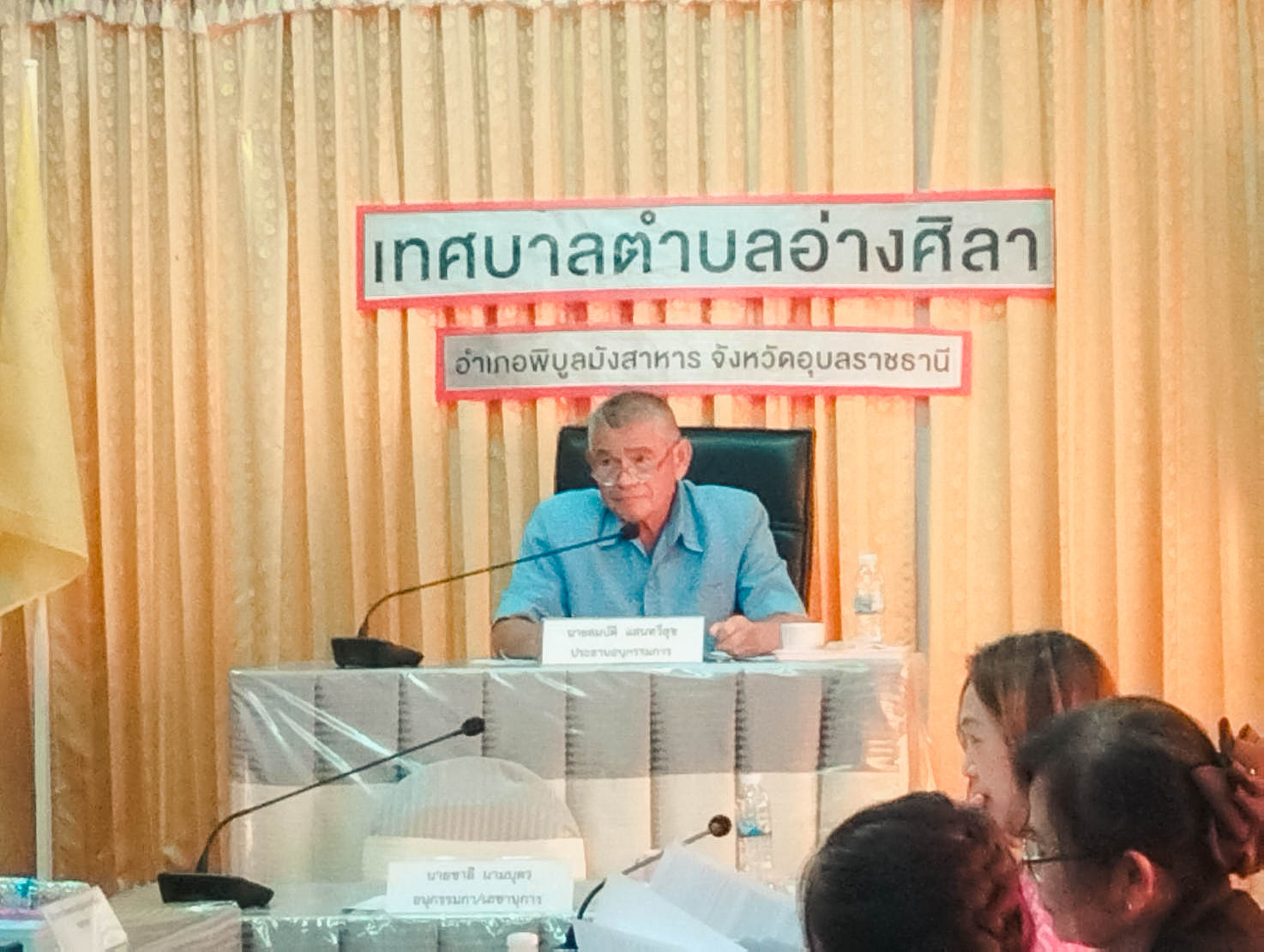 นายสมบัติ แสนทวีสุข นายกเทศมนตรีตำบลอ่างศิลา เป็นประธานการประชุมฯ ร่วมกับคณะอนุกรรมการสนับสนุนการจัดบริการดูแลระยะยาวสำหรับผู้สูงอายุที่มีภาวะพึ่งพิงฯ ครั้งที่ 1/2568
