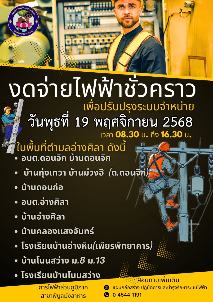 ✨️ประชาสัมพันธ์การงดจ่ายไฟฟ้าชั่วคราวเพื่อปรับปรุงระบบจำหน่าย ในวันพุธที่ 19 พฤศจิกายน 2568‼️