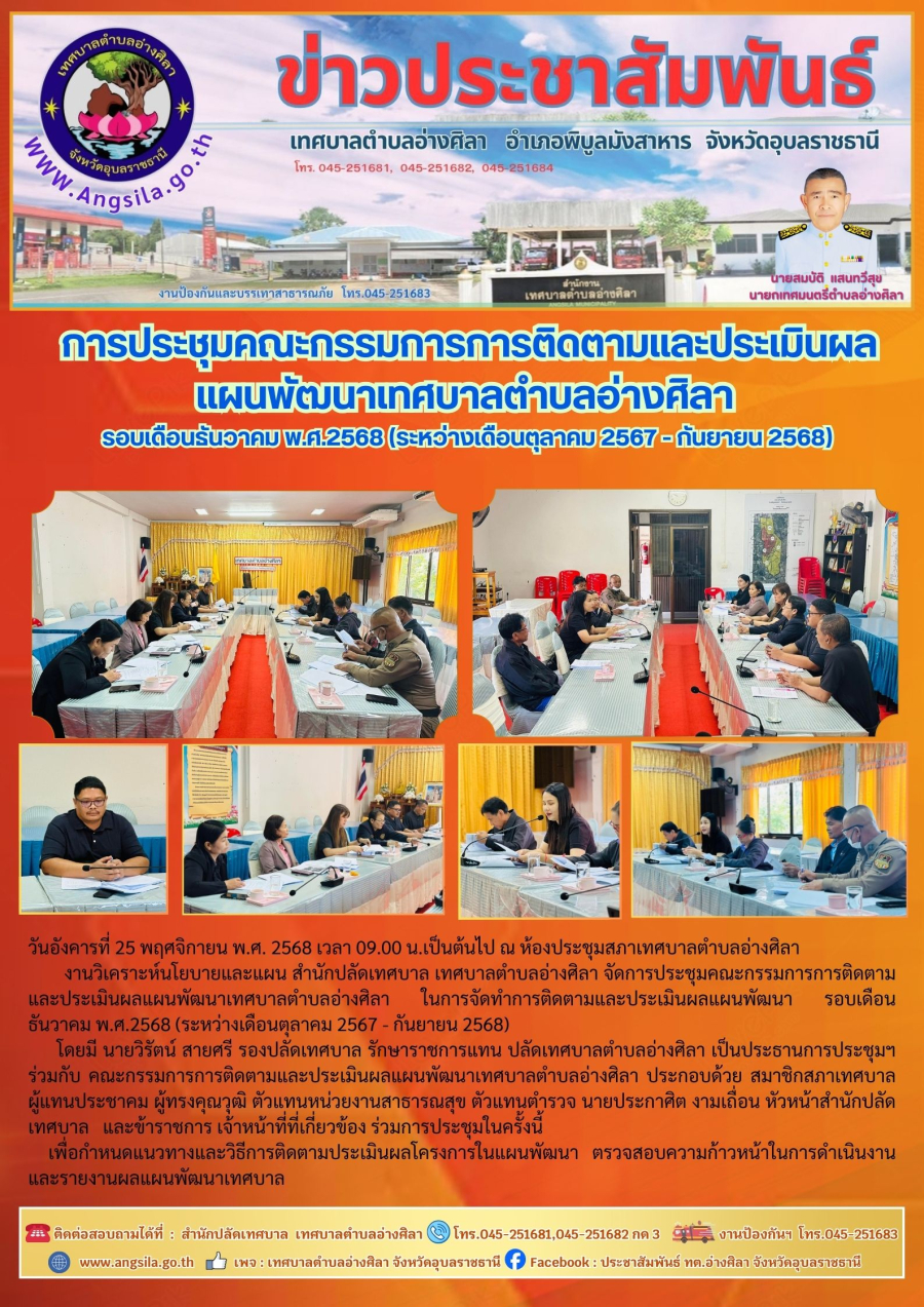 ✨️งานวิเคราะห์นโยบายและแผน สำนักปลัดเทศบาล เทศบาลตำบลอ่างศิลา จัดการประชุมคณะกรรมการการติดตามและประเมินผลแผนพัฒนาเทศบาลตำบลอ่างศิลา ในการจัดทำการติดตามและประเมินผลแผนพัฒนา รอบเดือนธันวาคม พ.ศ.2568 (ระหว่างเดือนตุลาคม 2567 - กันยายน 2568)