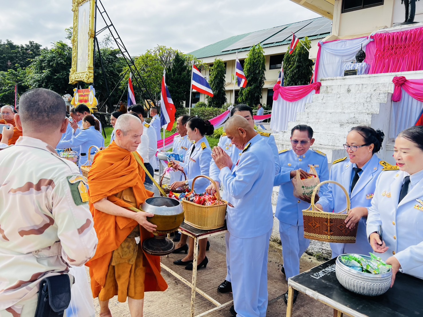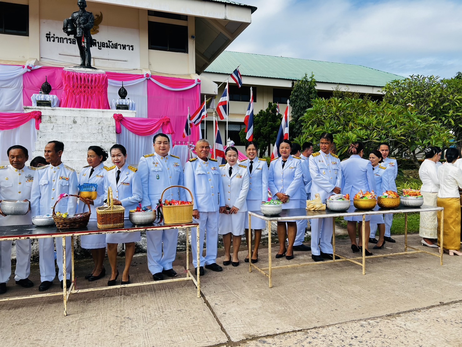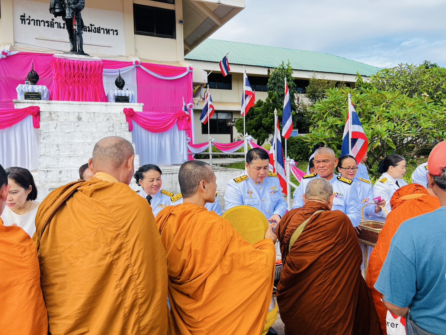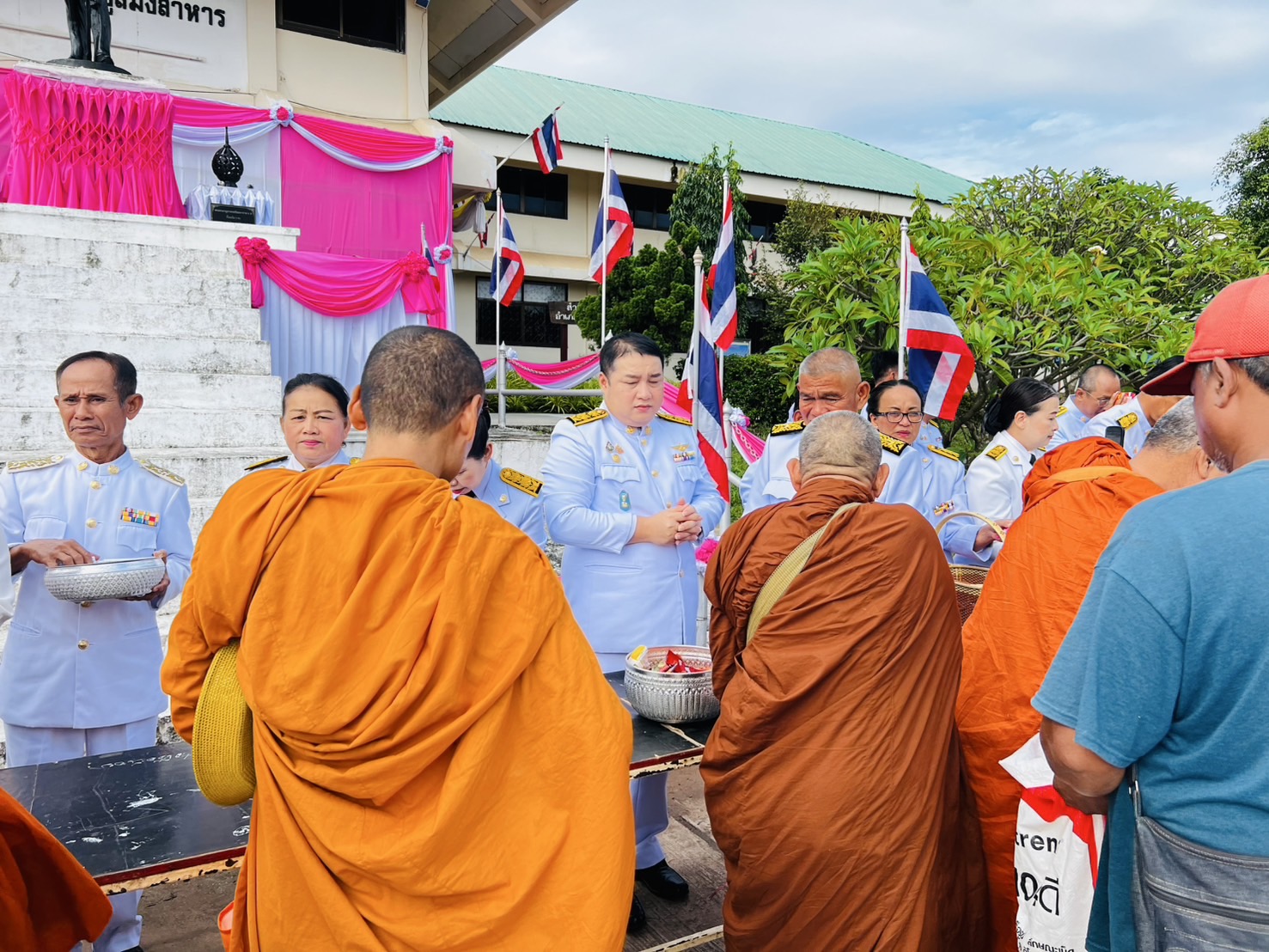 ✨️ในการนี้ นายสมบัติ แสนทวีสุข นายกเทศมนตรีตำบลอ่างศิลา พร้อมด้วย นายกมลวรรธน์ ดุมแก้ว ผู้อำนวยการกองการศึกษา ข้าราชการ และพนักงานเทศบาลตำบลอ่างศิลา ร่วมพิธีเจริญพระพุทธมนต์ ทำบุญตักบาตรถวายพระราชกุศล และพิธีวางพุ่มดอกไม้ถวายราชสักการะ เพื่อร่วมกันเทิดพระเกียรติและน้อมรำลึกในพระมหากรุณาธิคุณอันหาที่สุดมิได้