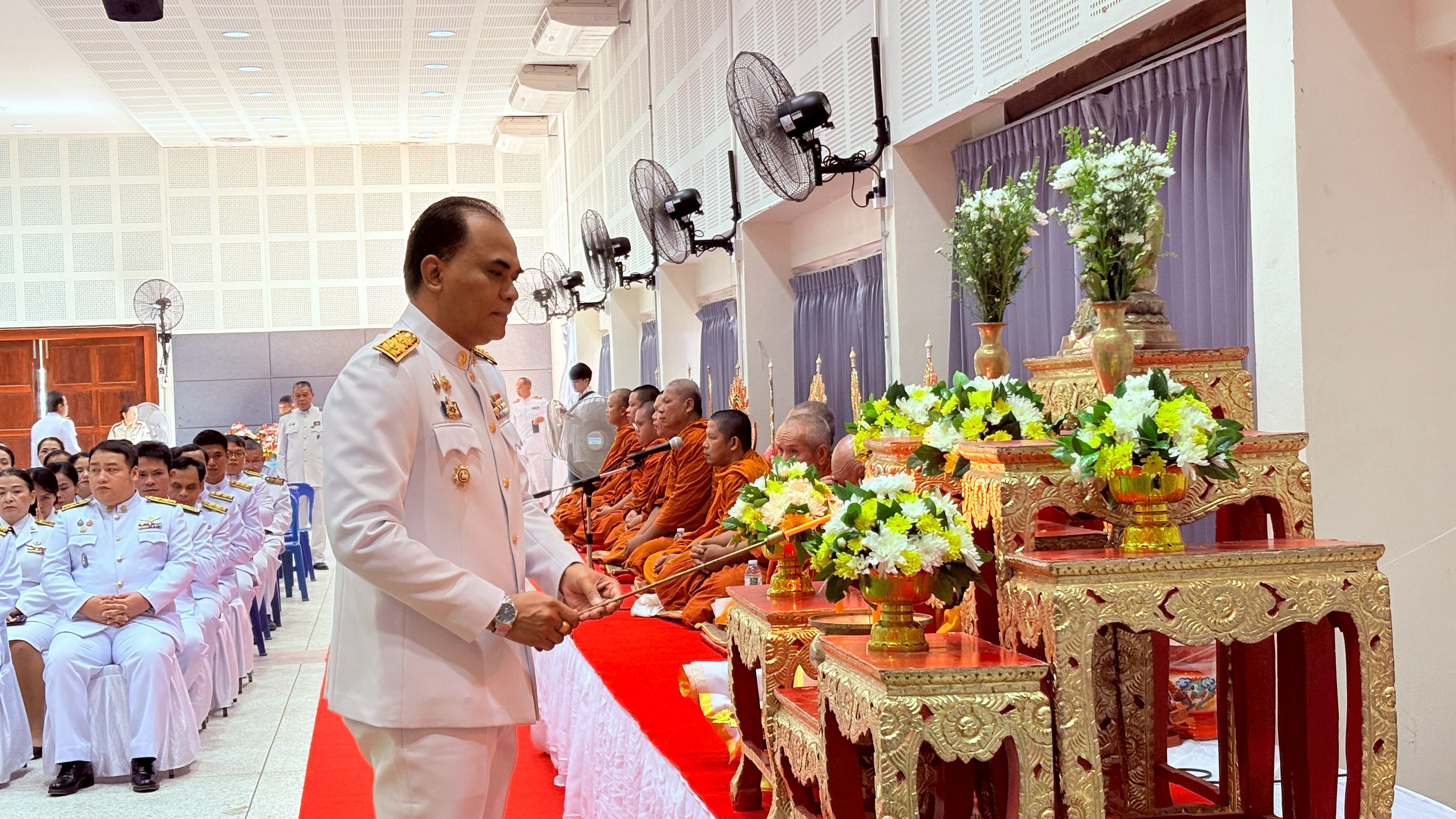 ✨️ โดยมี นายสรชาย ครองยุทธ นายอำเภอพิบูลมังสาหาร เป็นประธานในพิธี จุดธูปเทียนบูชาพระรัตนตรัย เครื่องทองน้อย หน้าพระฉายาลักษณ์/พระบรมสาทิสลักษณ์พระบาทสมเด็จพระปรเมนทรมหาอานันทมหิดล พระอัฐมรามาธิบดินทร