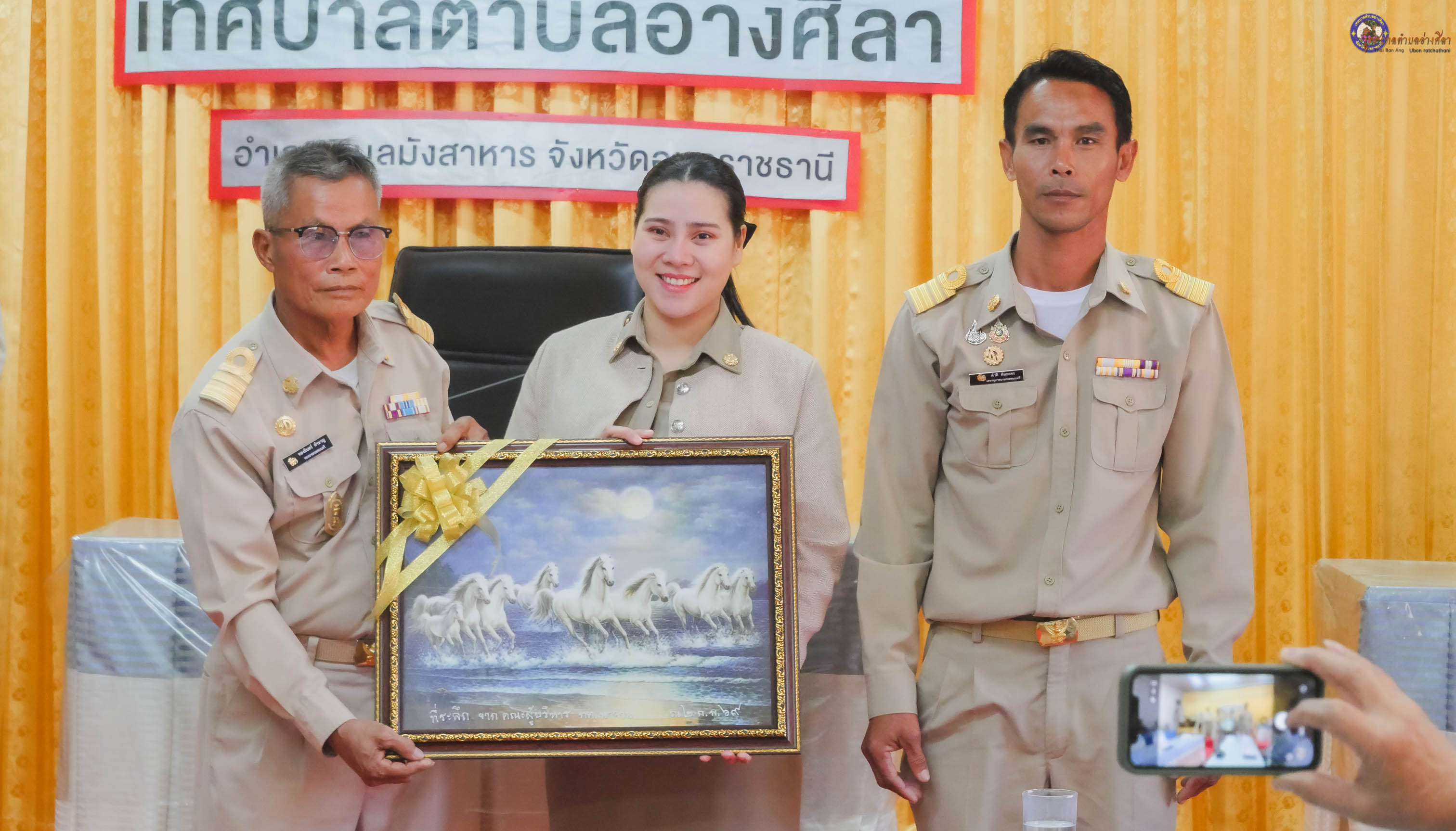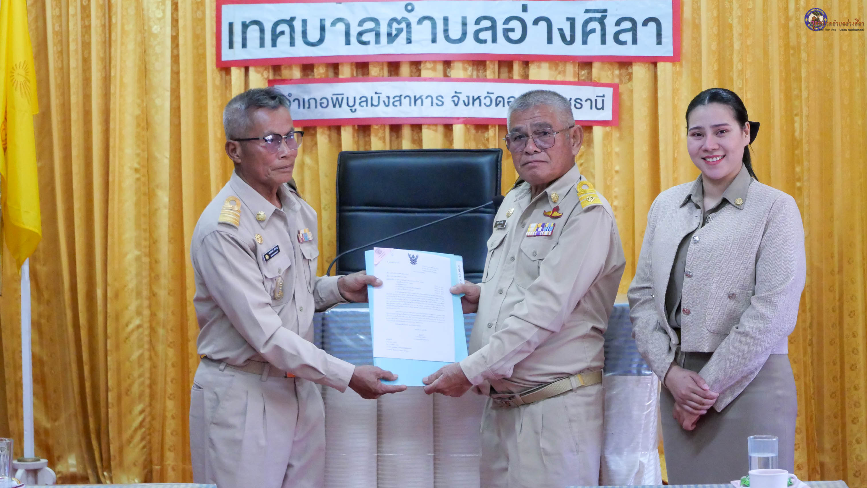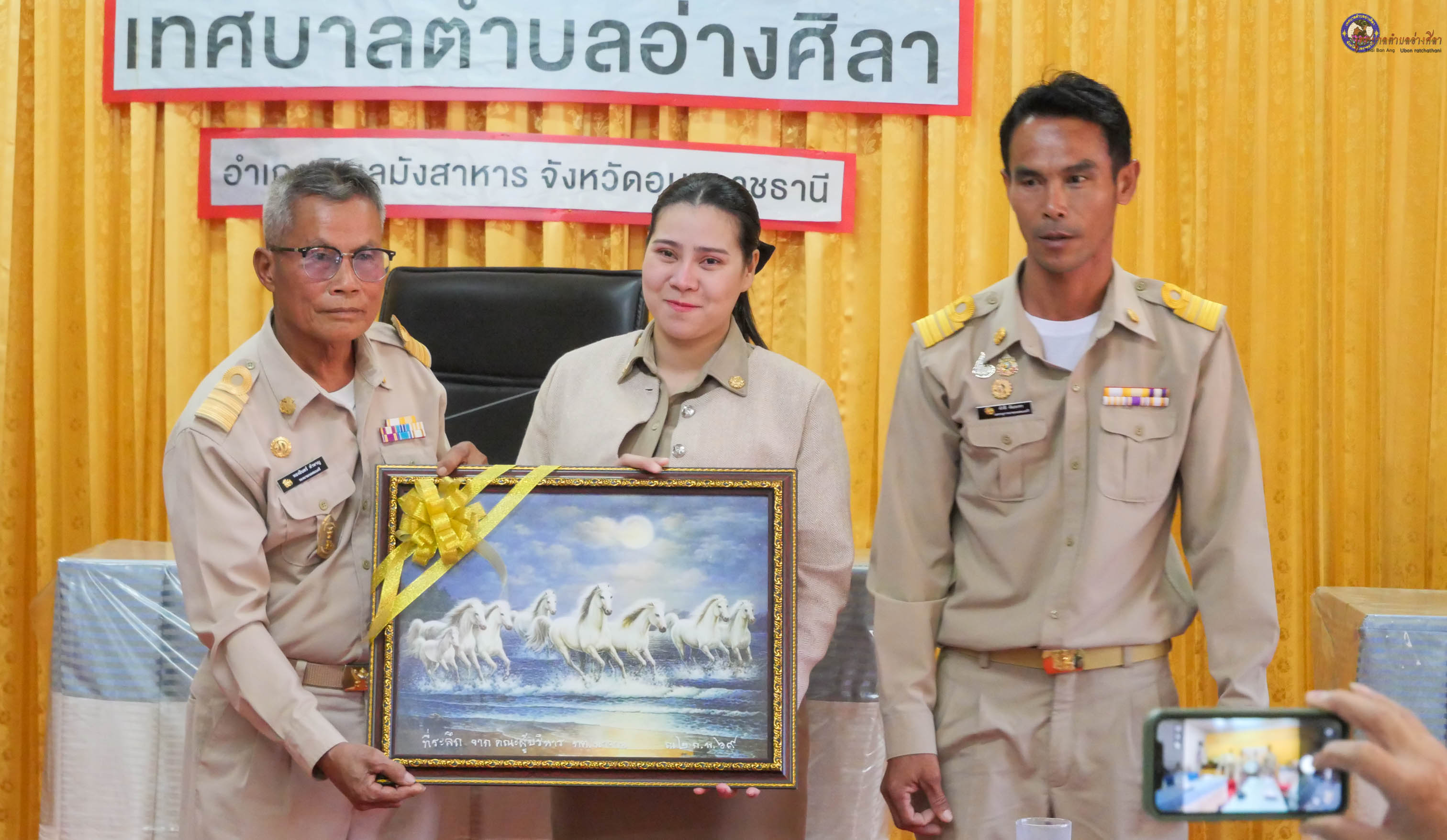 ได้ให้การต้อนรับ นายทองอินทร์ คำหาญ รองนายกเทศมนตรีตำบลนาจาน พร้อมคณะเดินทางมาส่งและร่วมแสดงความยินดี นางพาสุข ทาศิริ เจ้าพนักงานธุรการปฏิบัติงาน จากเทศบาลตำบลนาจาน อำเภอนาเยีย จังหวัดอุบลราชธานี โอนย้ายมาดำรงตำแหน่ง เจ้าพนักงานการเงินและบัญชีปฏิบัติงาน กองคลัง เทศบาลตำบลอ่างศิลา อำเภอพิบูลมังสาหาร จังหวัดอุบลราชธานี ด้วยความยินดียิ่ง