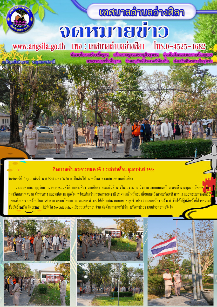 วันจันทร์ที่ 3 กุมภาพันธ์ พ.ศ.2568 เวลา 08.00 น.เป็นต้นไป ณ บริเวณหน้าเสาธงเทศบาลตำบลอ่างศิลา