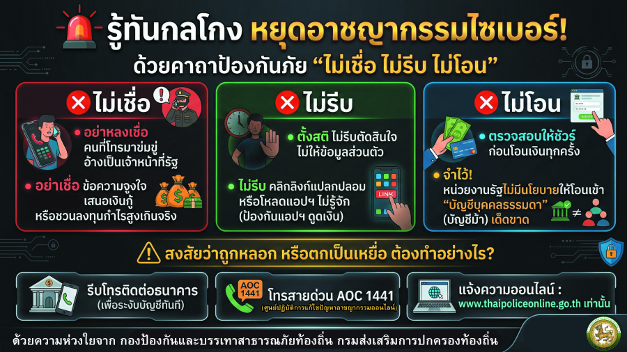 รู้ทันกลโกง ?หยุดอาชญากรรมไซเบอร์❗️ ❌ไม่เชื่อ ❌ไม่รีบ ❌ไม่โอน ‼️