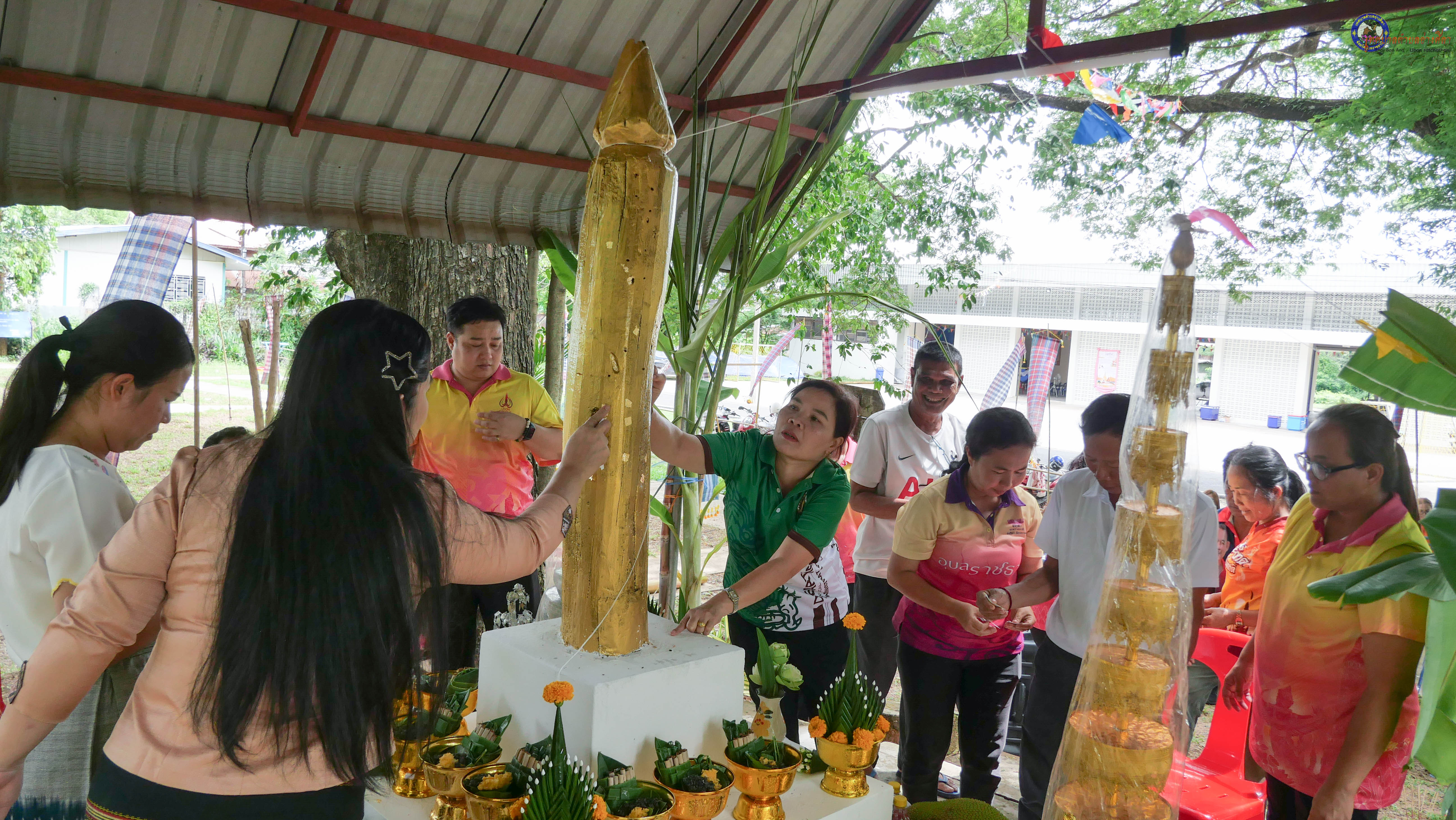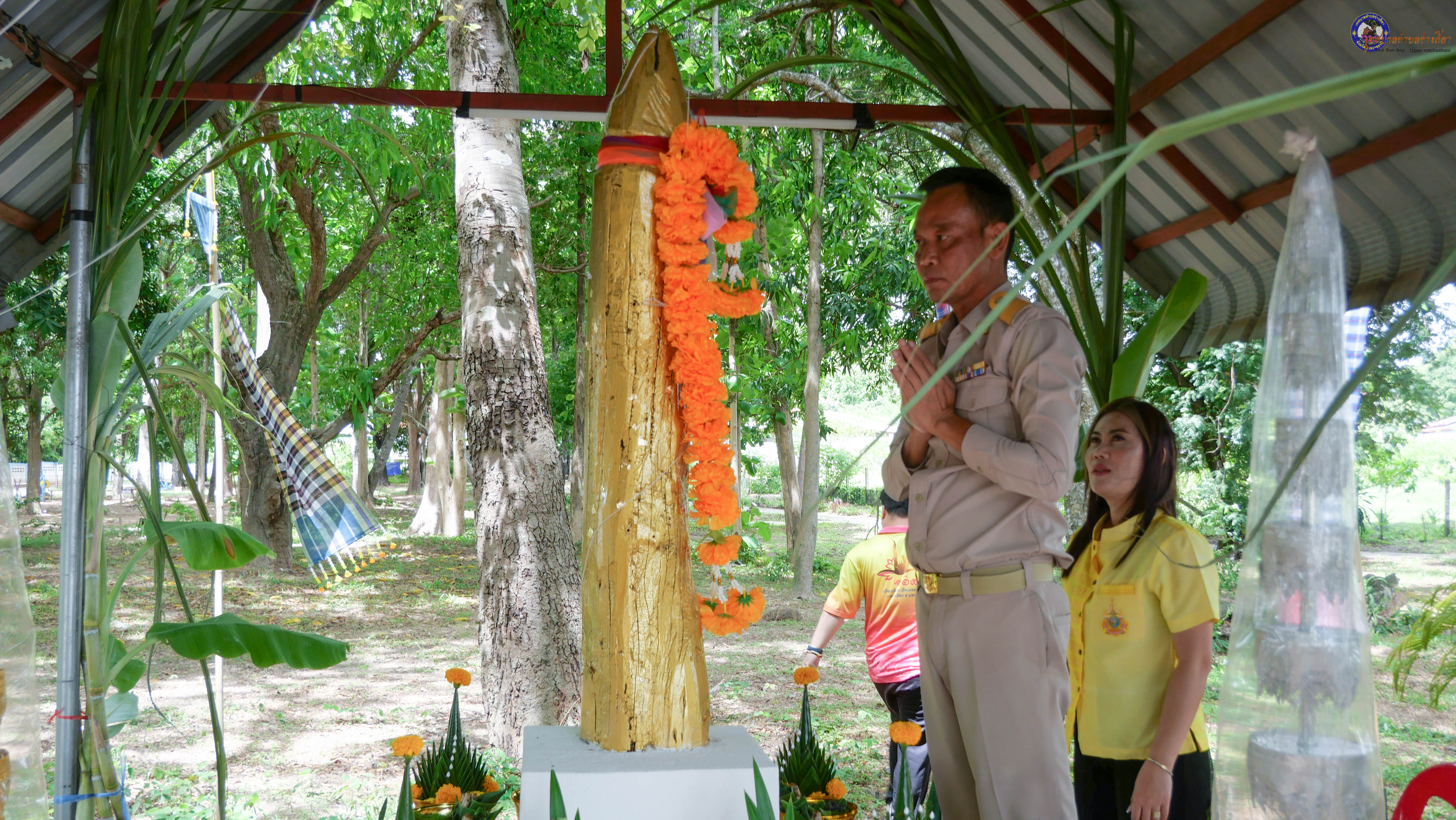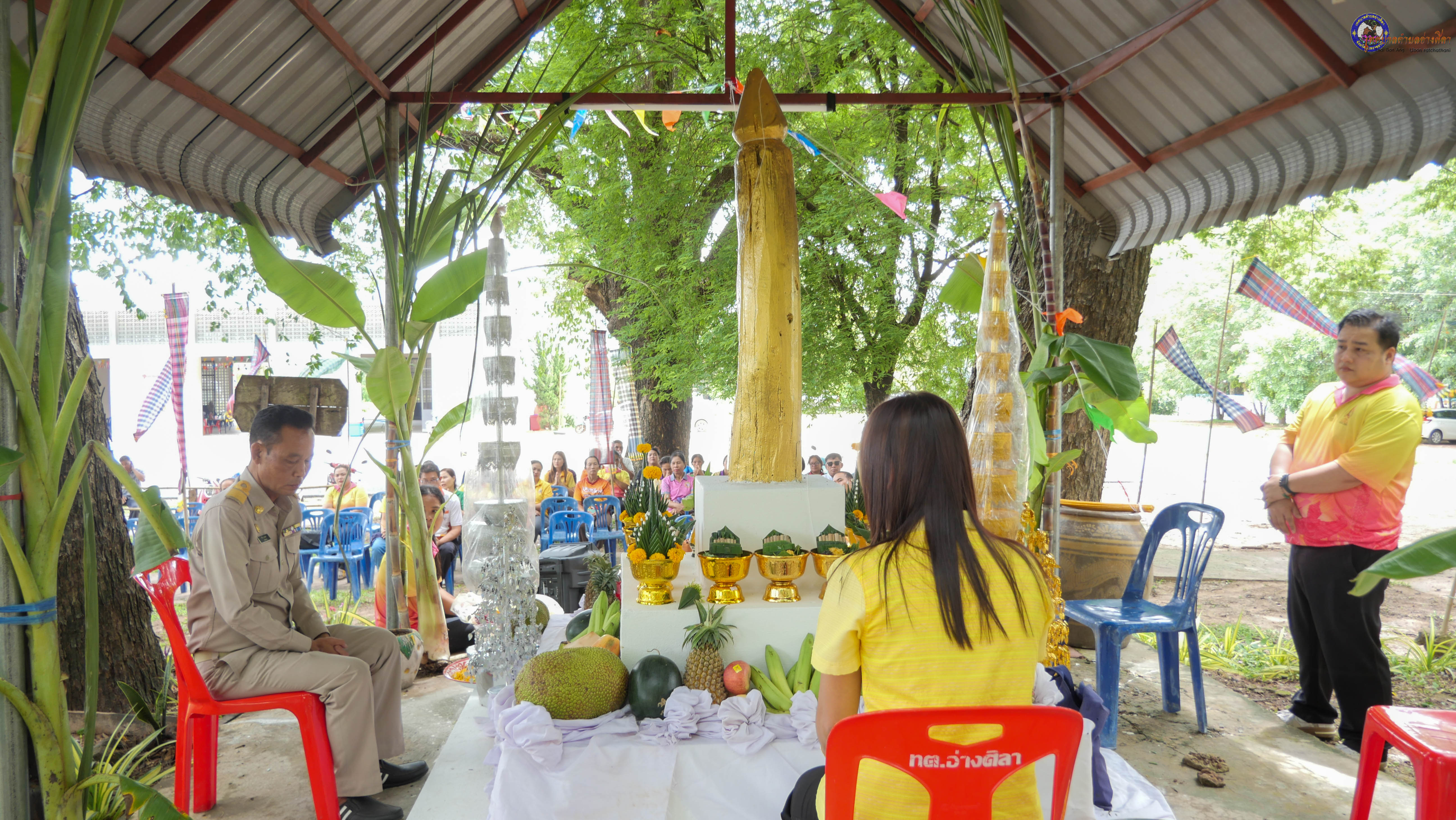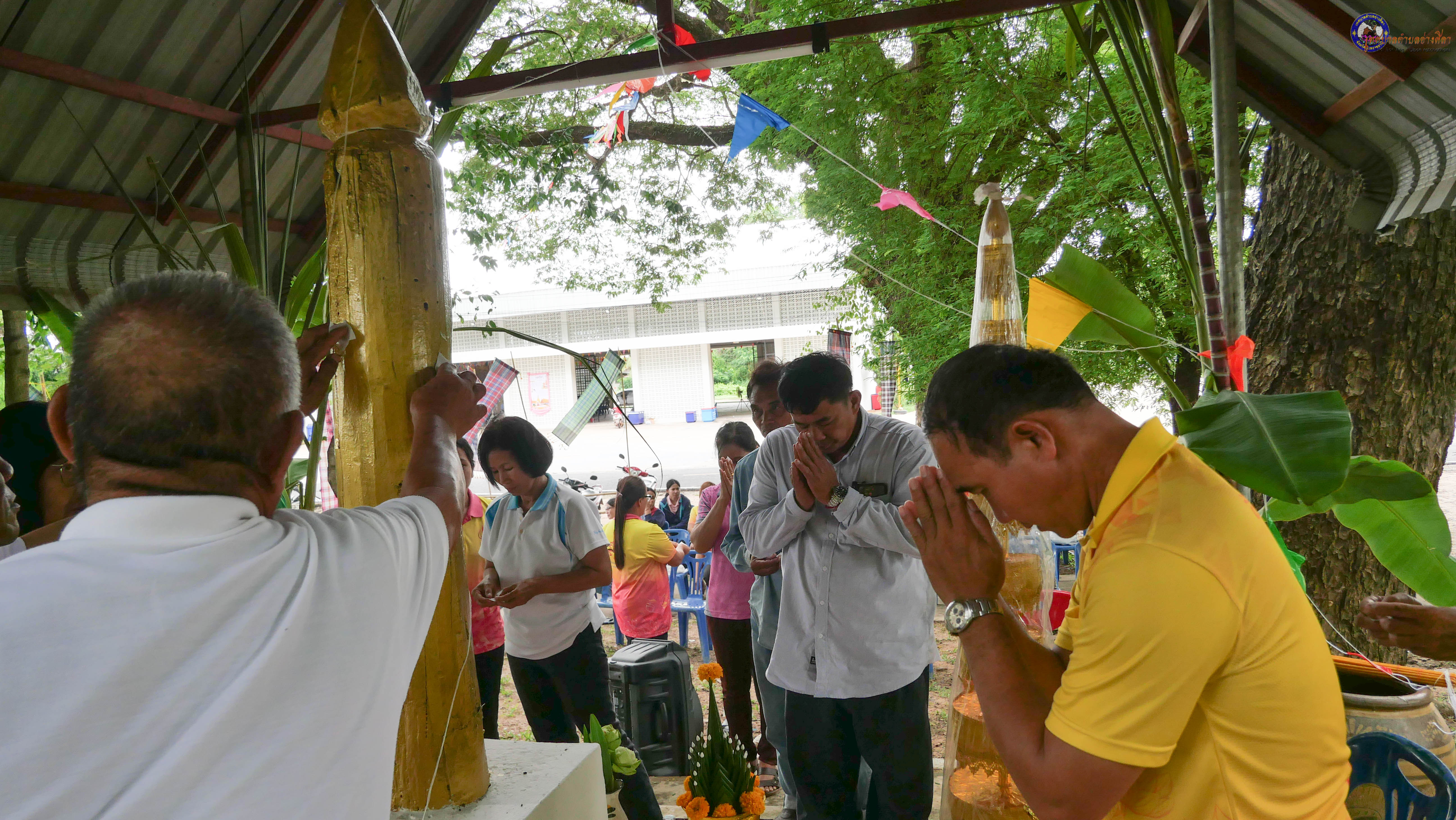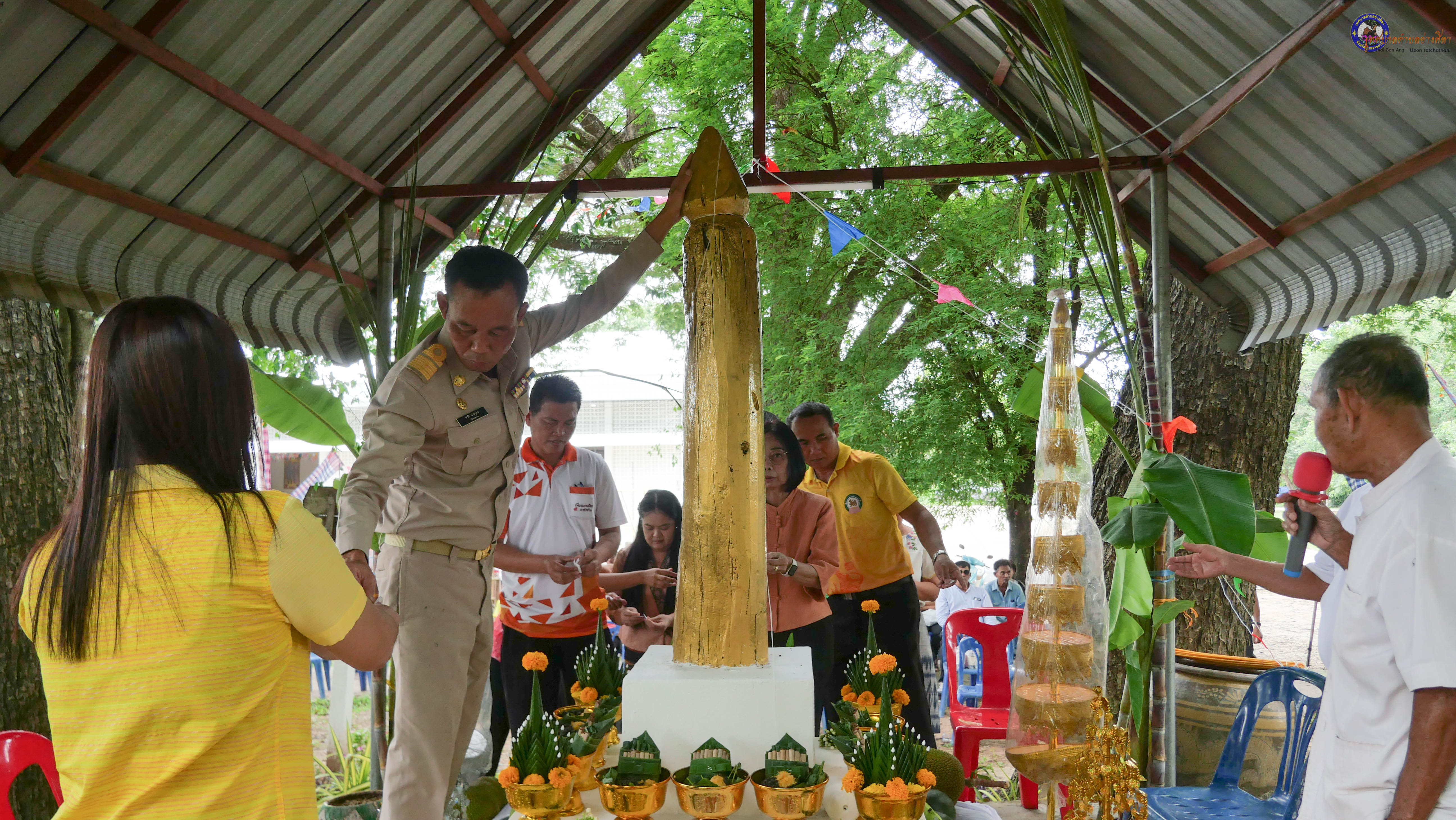 ร่วมพิธีบวงสรวงสักการะศาลหลักบ้าน เพื่อสืบสานวัฒนธรรม ภูมิปัญญาท้องถิ่น งานบุญซำฮะ (บุญเดือน ๗) ตามฮีตสองคองอีสาน เพื่อเป็นการปัดรังควาน ขับไล่สิ่งชั่วร้าย เสนียดจัญไร ภูตผีปีศาจ หรือภัยอันตรายต่างๆให้ออกไปจากหมู่บ้าน ชุมชน ให้เกิดความเป็นสิริมงคลแก่หมู่บ้านและชาวบ้าน โดยมีคุณพ่อสุนีย์ ทองทับ ปราชญ์ชาวบ้านเป็นผู้ประกอบพิธีบวงสรวงสักการะศาลหลักบ้าน