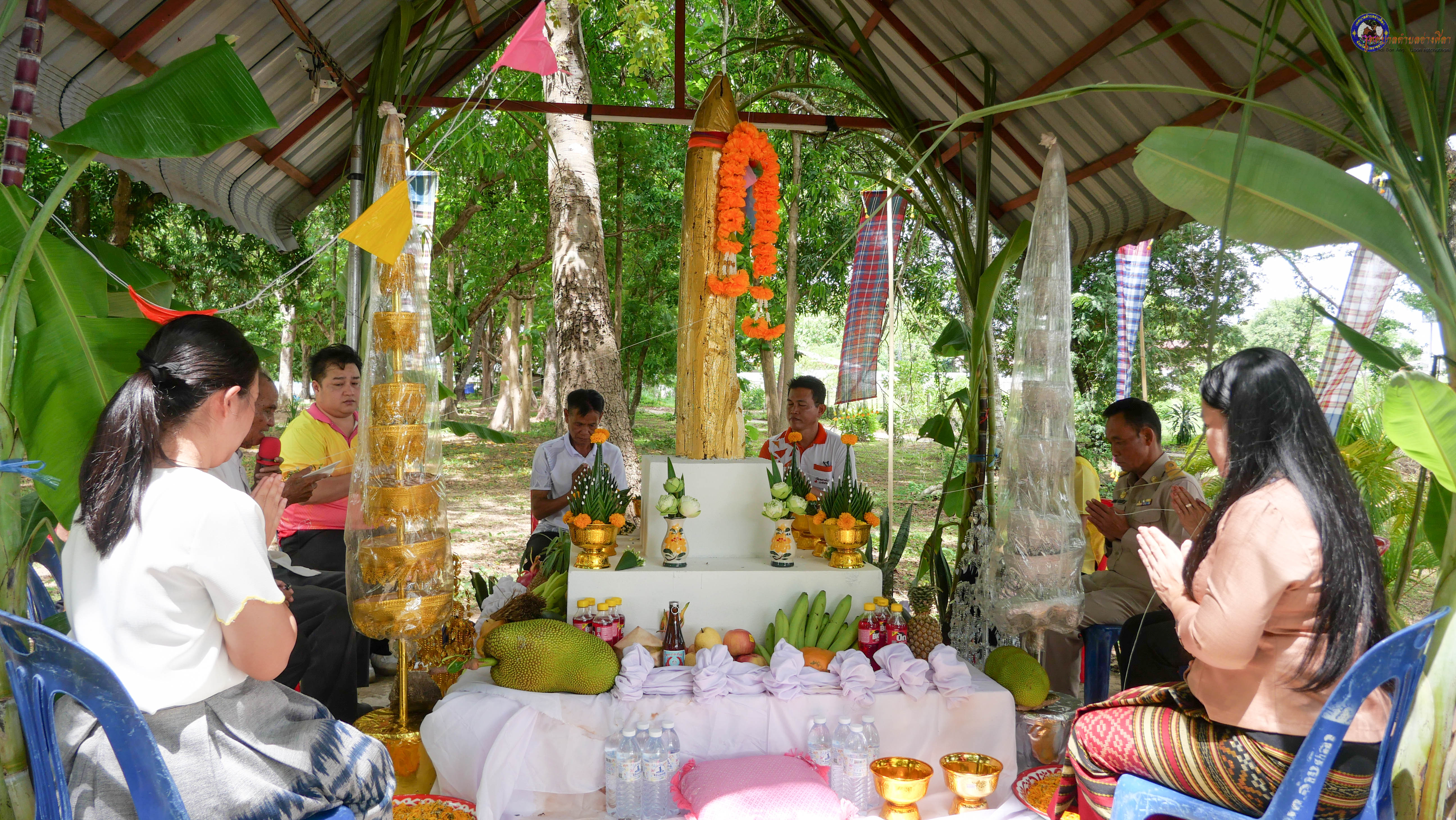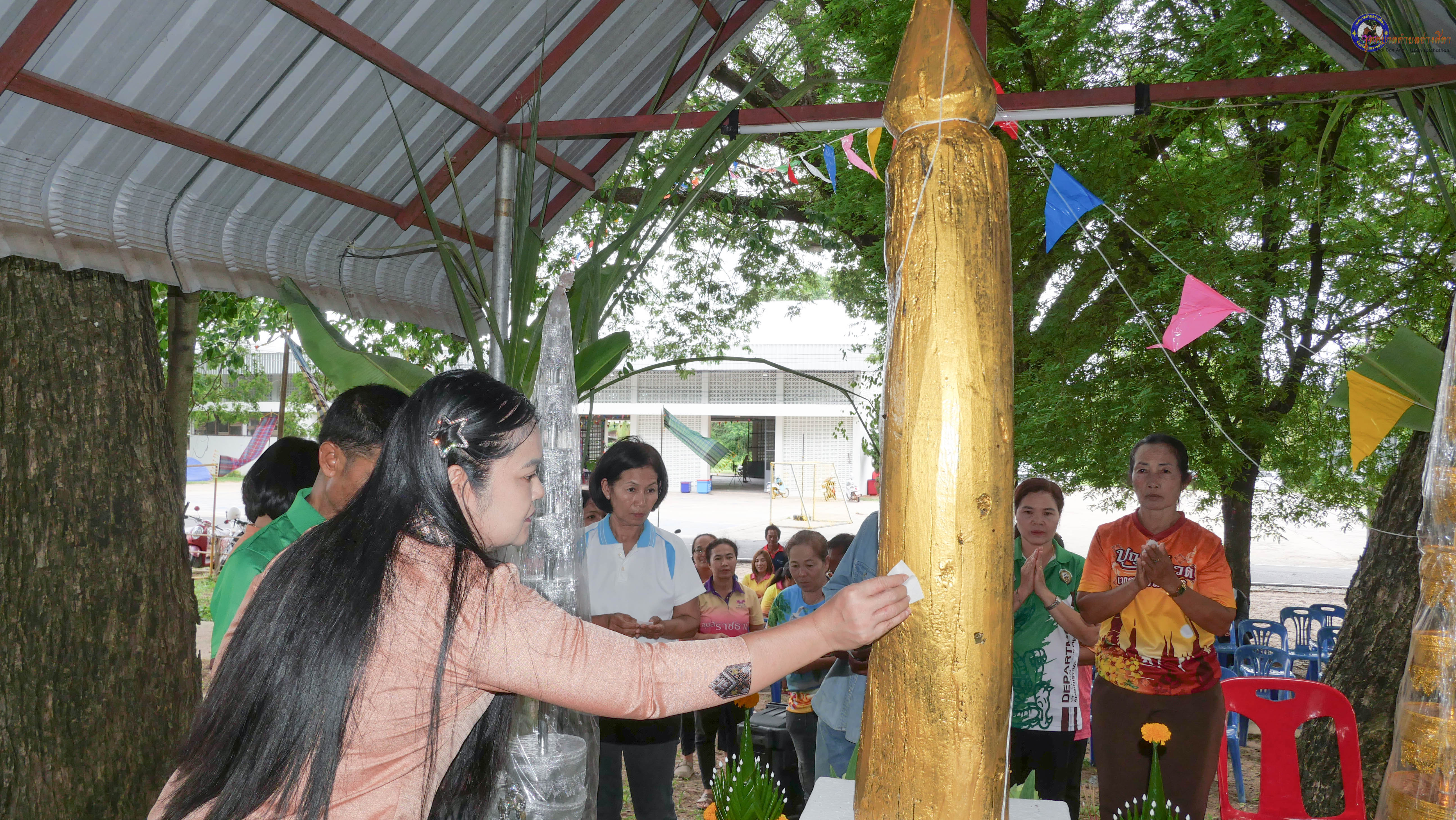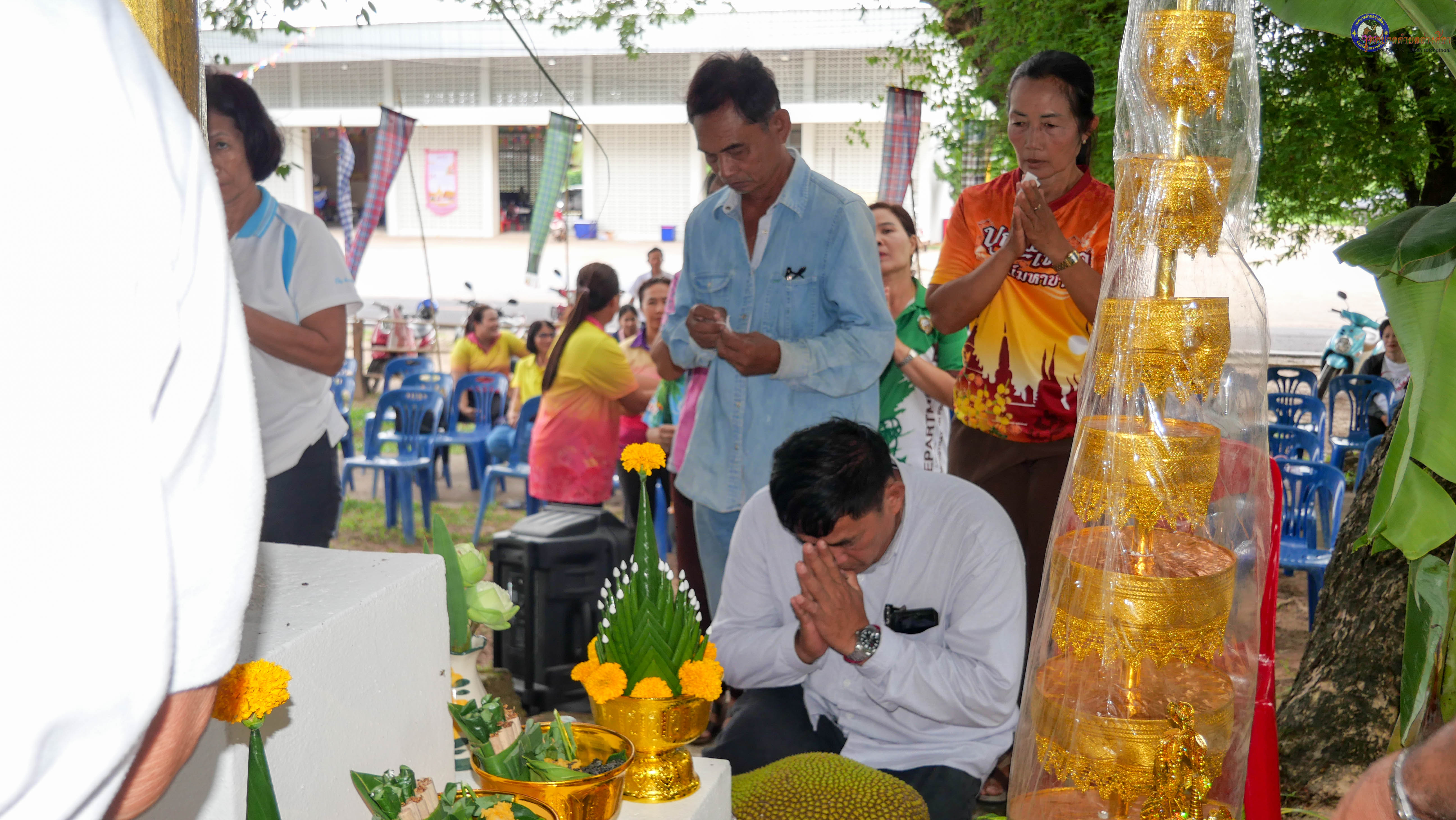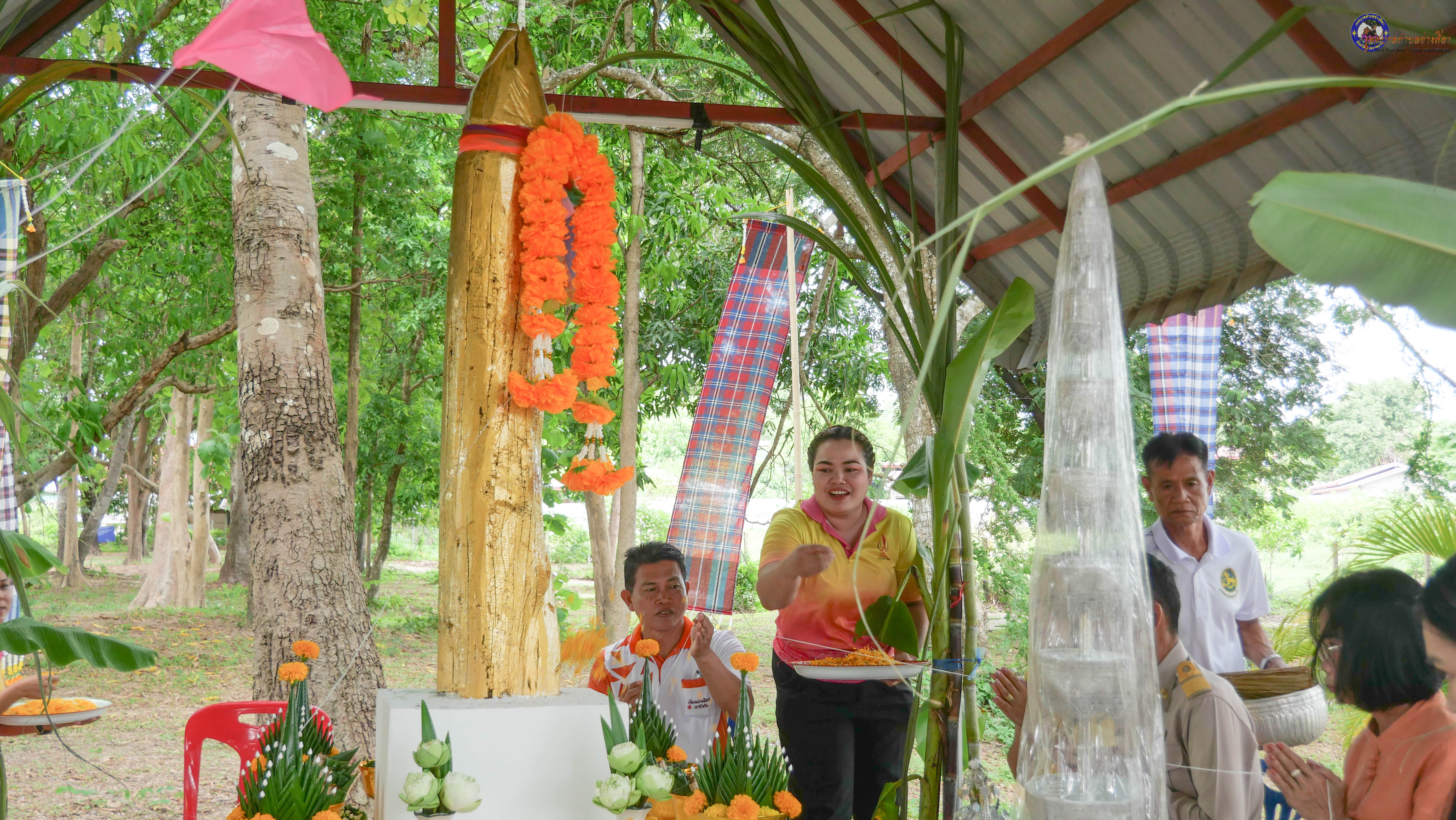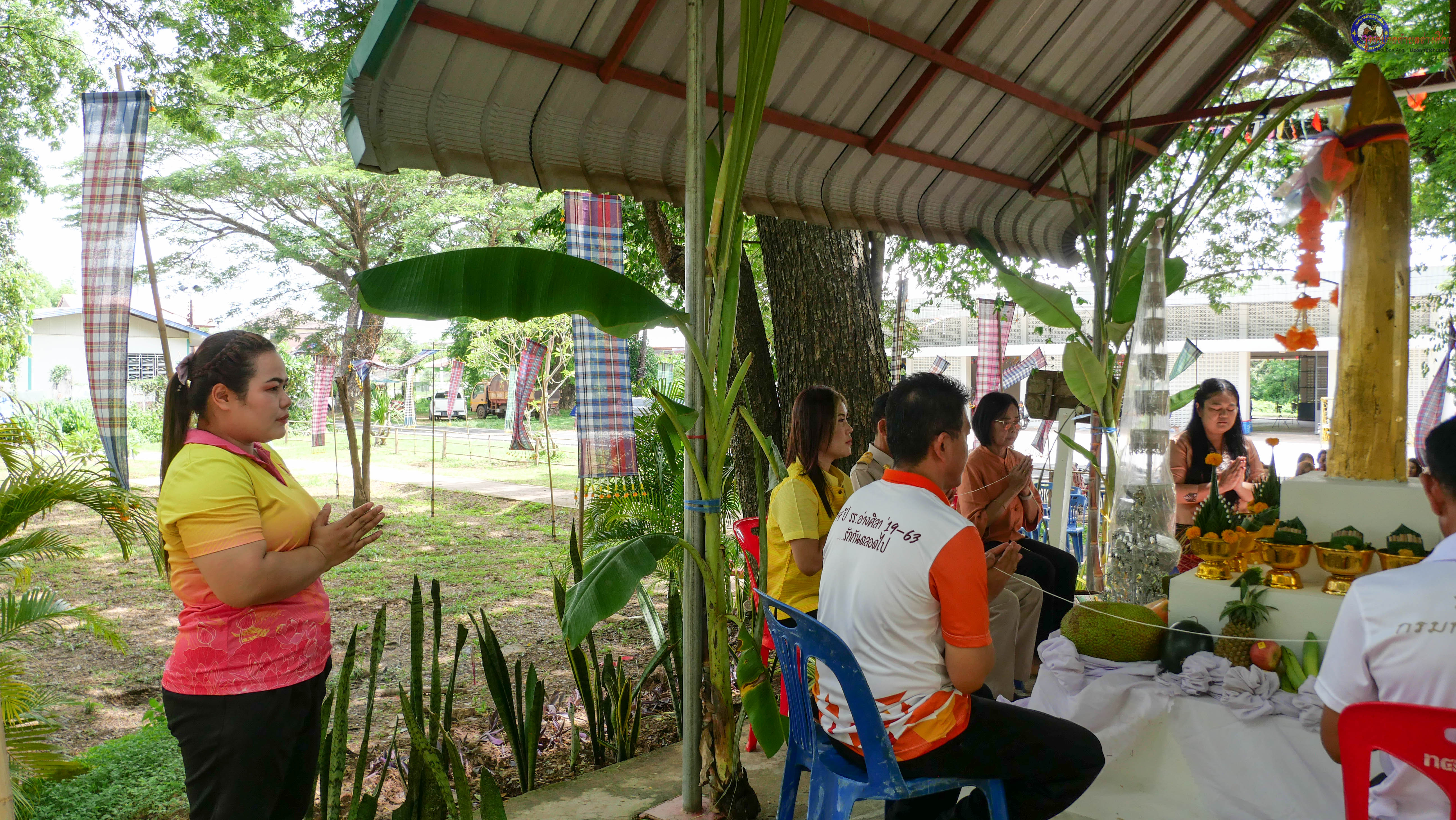 ร่วมพิธีบวงสรวงสักการะศาลหลักบ้าน เพื่อสืบสานวัฒนธรรม ภูมิปัญญาท้องถิ่น งานบุญซำฮะ (บุญเดือน ๗) ตามฮีตสองคองอีสาน เพื่อเป็นการปัดรังควาน ขับไล่สิ่งชั่วร้าย เสนียดจัญไร ภูตผีปีศาจ หรือภัยอันตรายต่างๆให้ออกไปจากหมู่บ้าน ชุมชน ให้เกิดความเป็นสิริมงคลแก่หมู่บ้านและชาวบ้าน โดยมีคุณพ่อสุนีย์ ทองทับ ปราชญ์ชาวบ้านเป็นผู้ประกอบพิธีบวงสรวงสักการะศาลหลักบ้าน