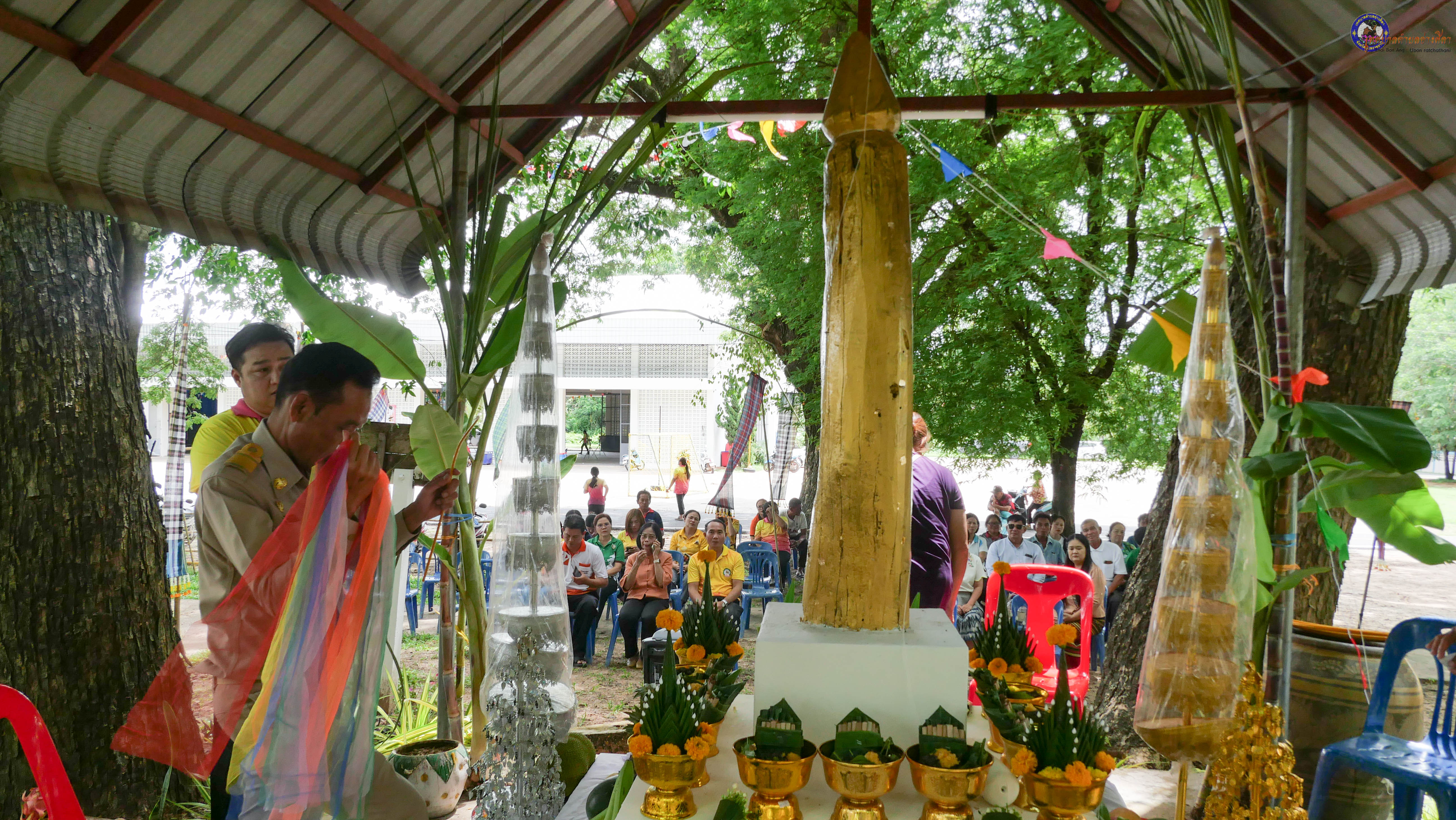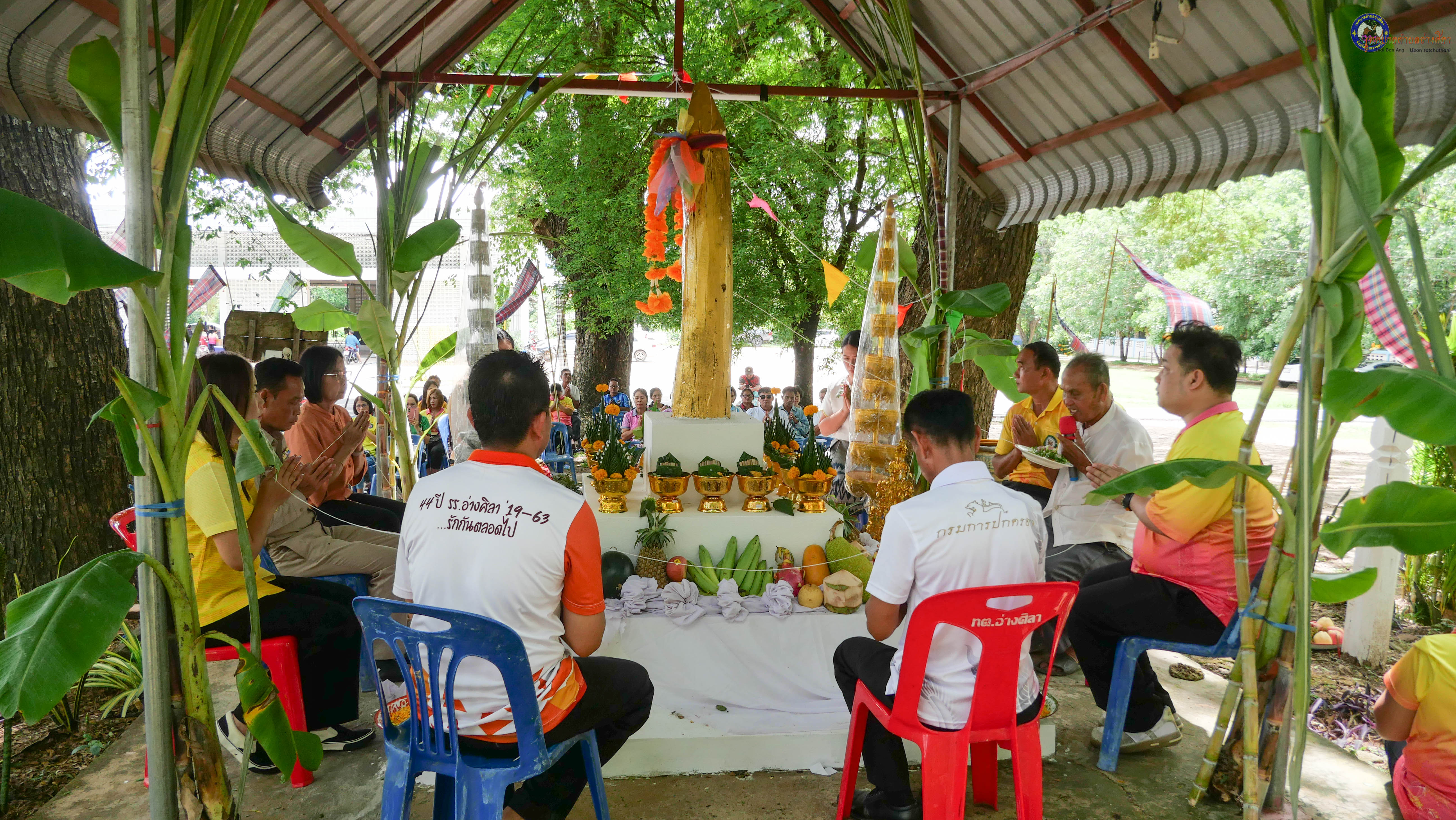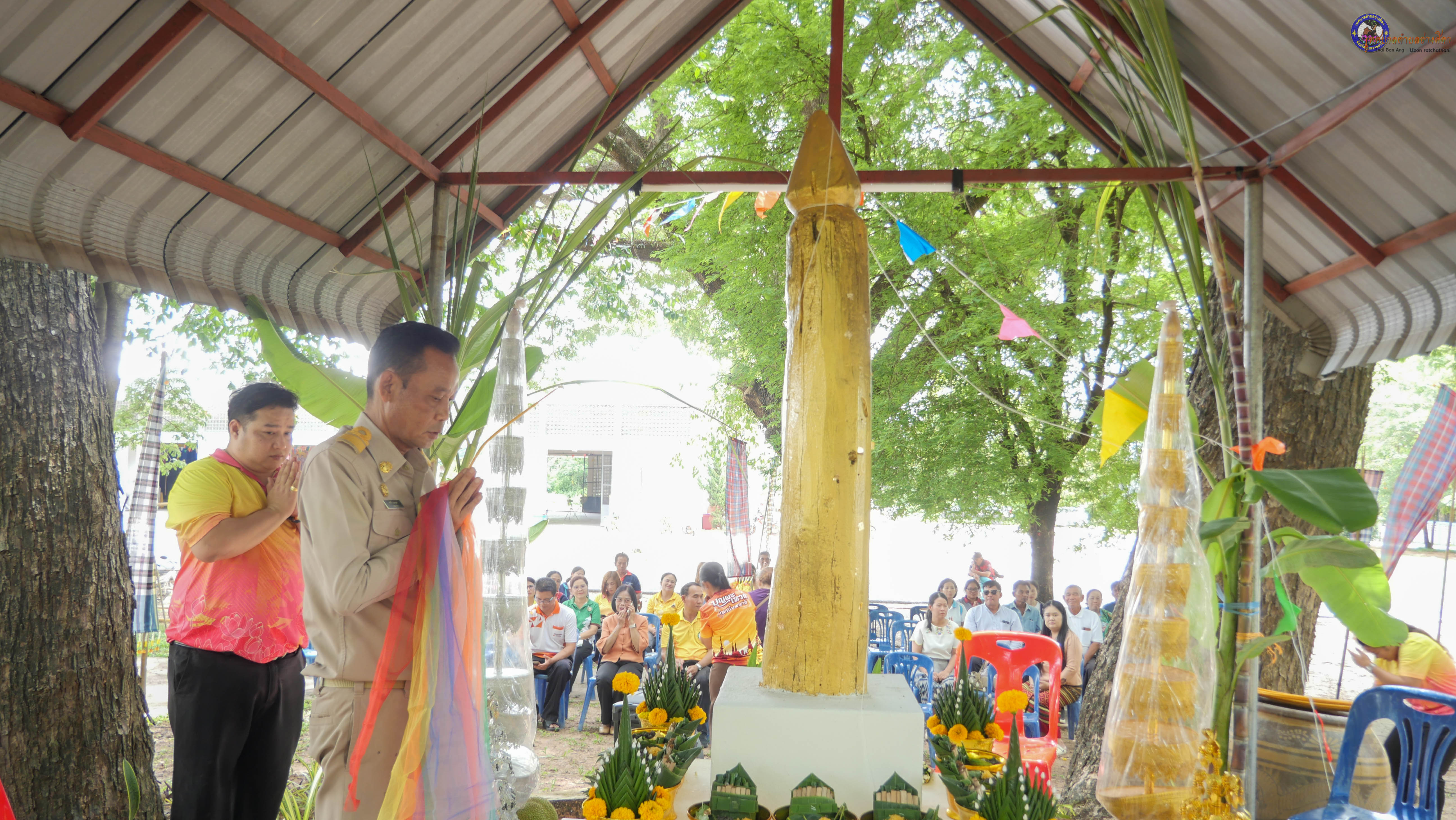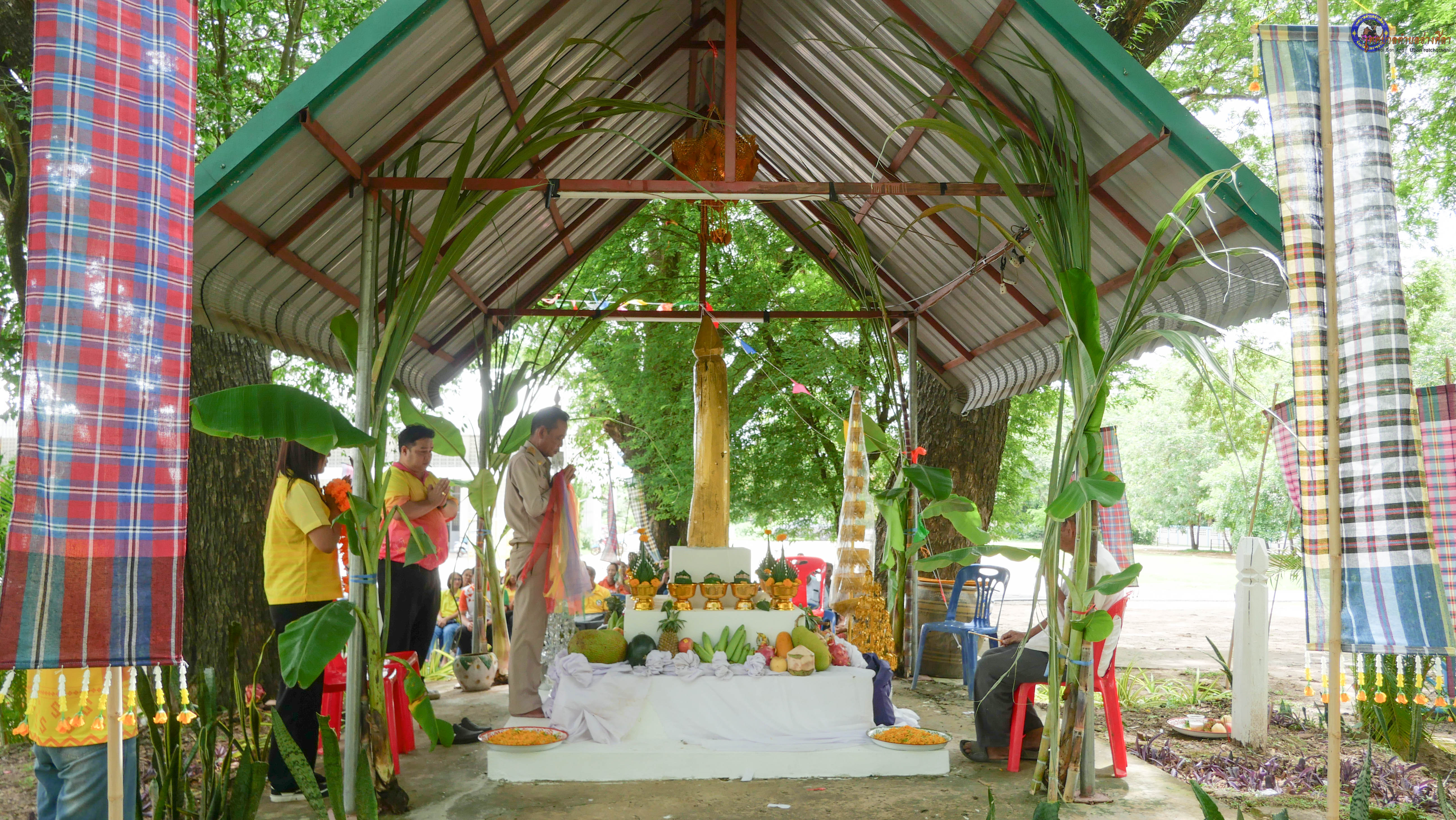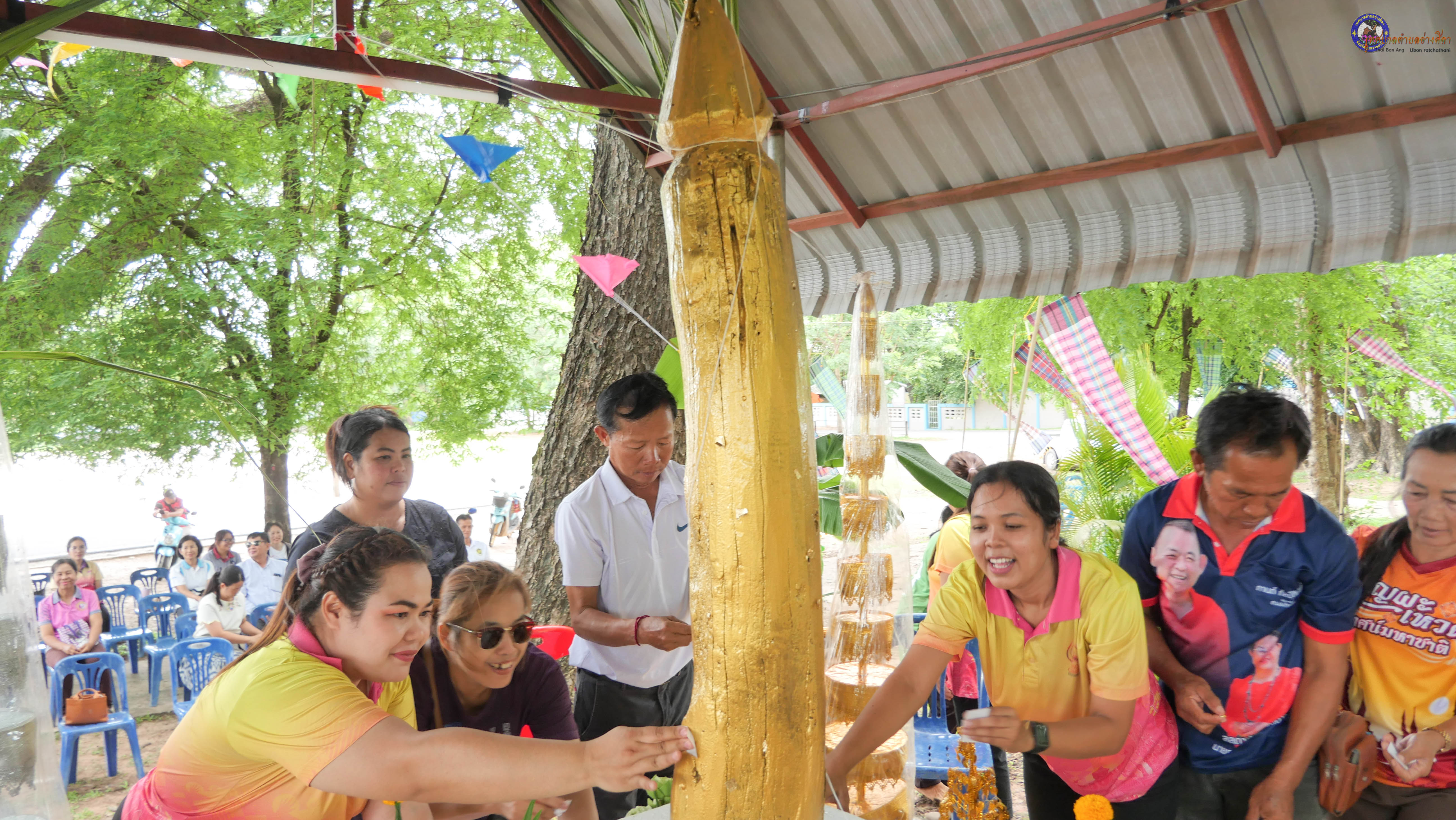 ร่วมพิธีบวงสรวงสักการะศาลหลักบ้าน เพื่อสืบสานวัฒนธรรม ภูมิปัญญาท้องถิ่น งานบุญซำฮะ (บุญเดือน ๗) ตามฮีตสองคองอีสาน เพื่อเป็นการปัดรังควาน ขับไล่สิ่งชั่วร้าย เสนียดจัญไร ภูตผีปีศาจ หรือภัยอันตรายต่างๆให้ออกไปจากหมู่บ้าน ชุมชน ให้เกิดความเป็นสิริมงคลแก่หมู่บ้านและชาวบ้าน โดยมีคุณพ่อสุนีย์ ทองทับ ปราชญ์ชาวบ้านเป็นผู้ประกอบพิธีบวงสรวงสักการะศาลหลักบ้าน