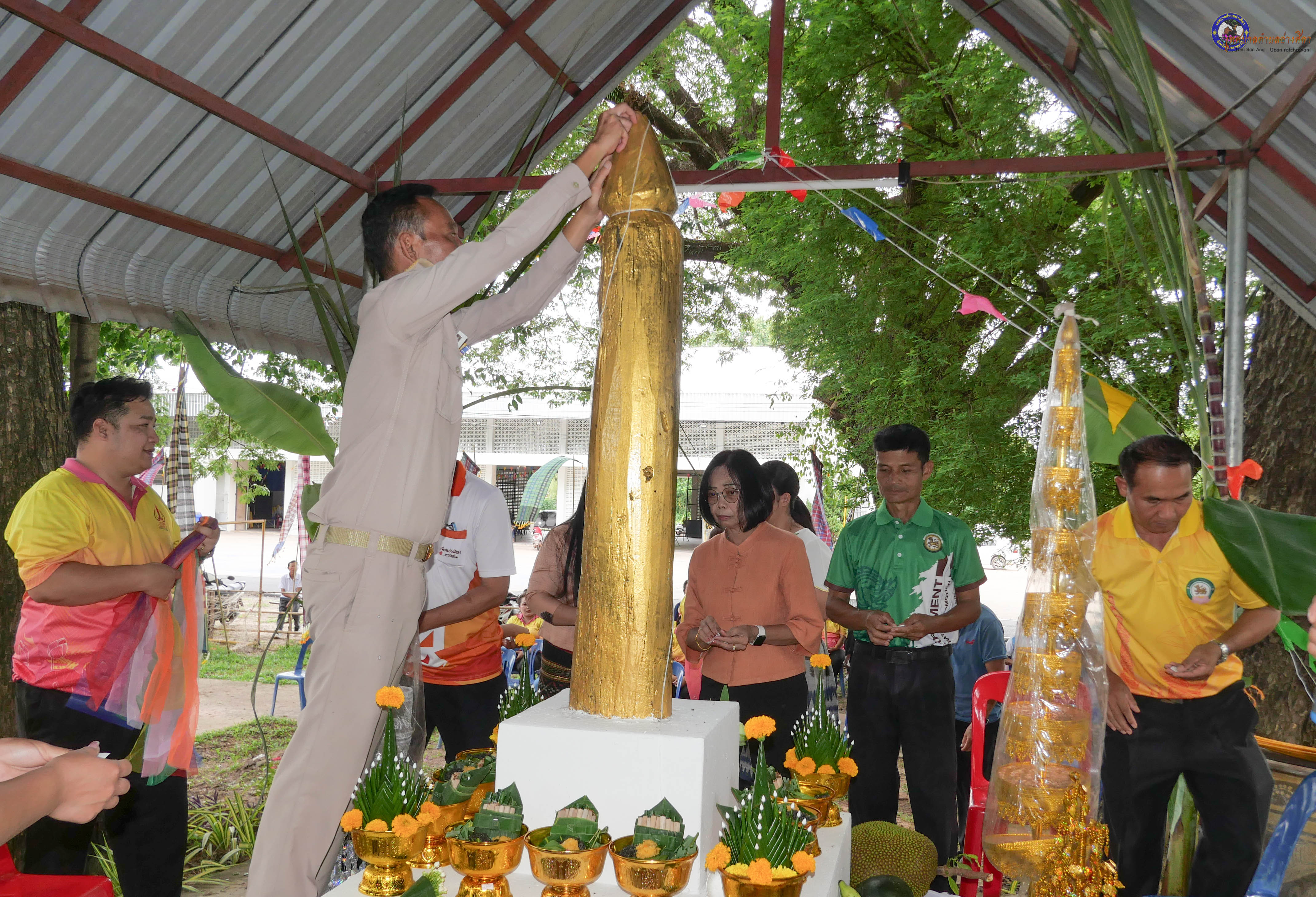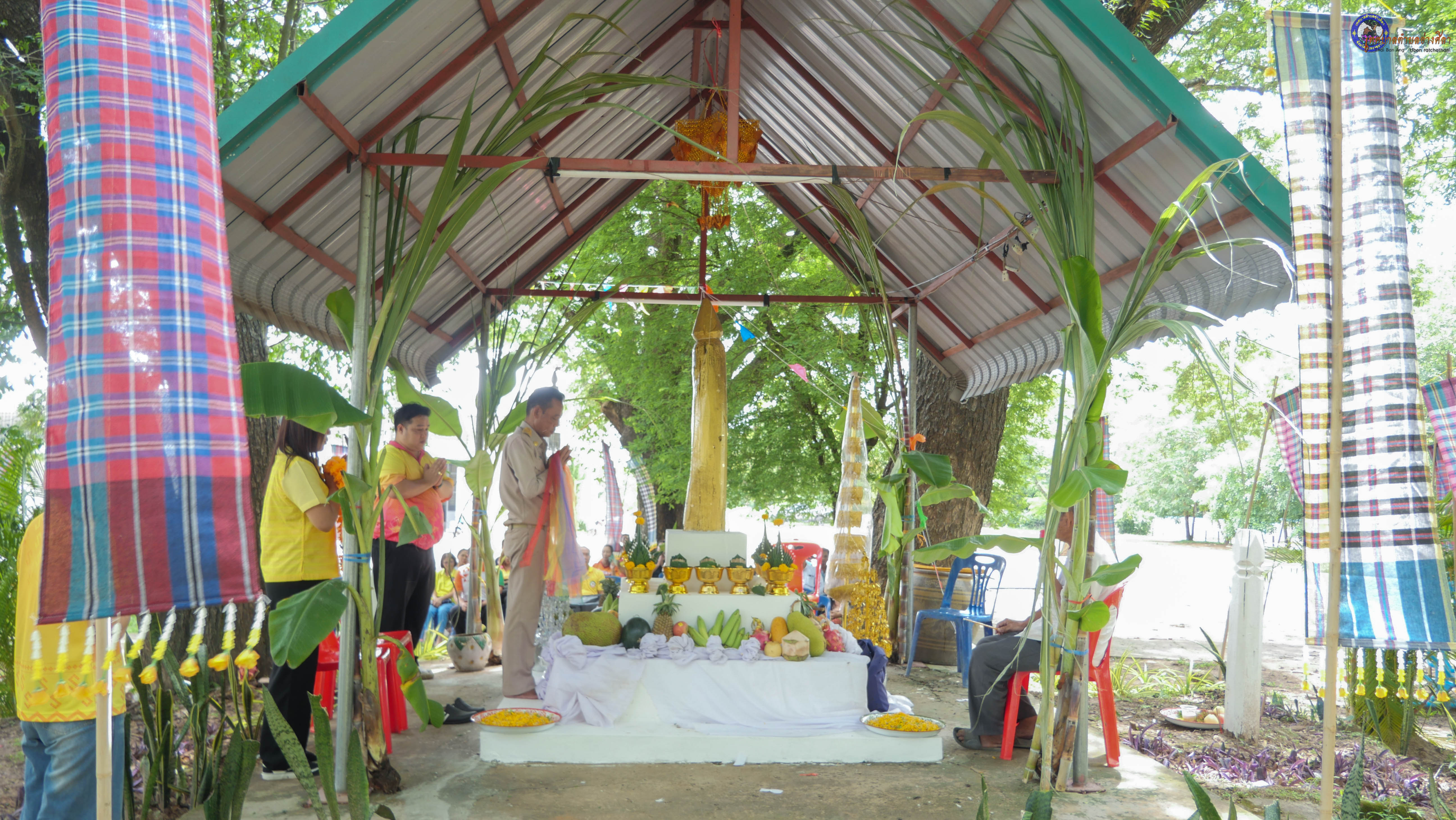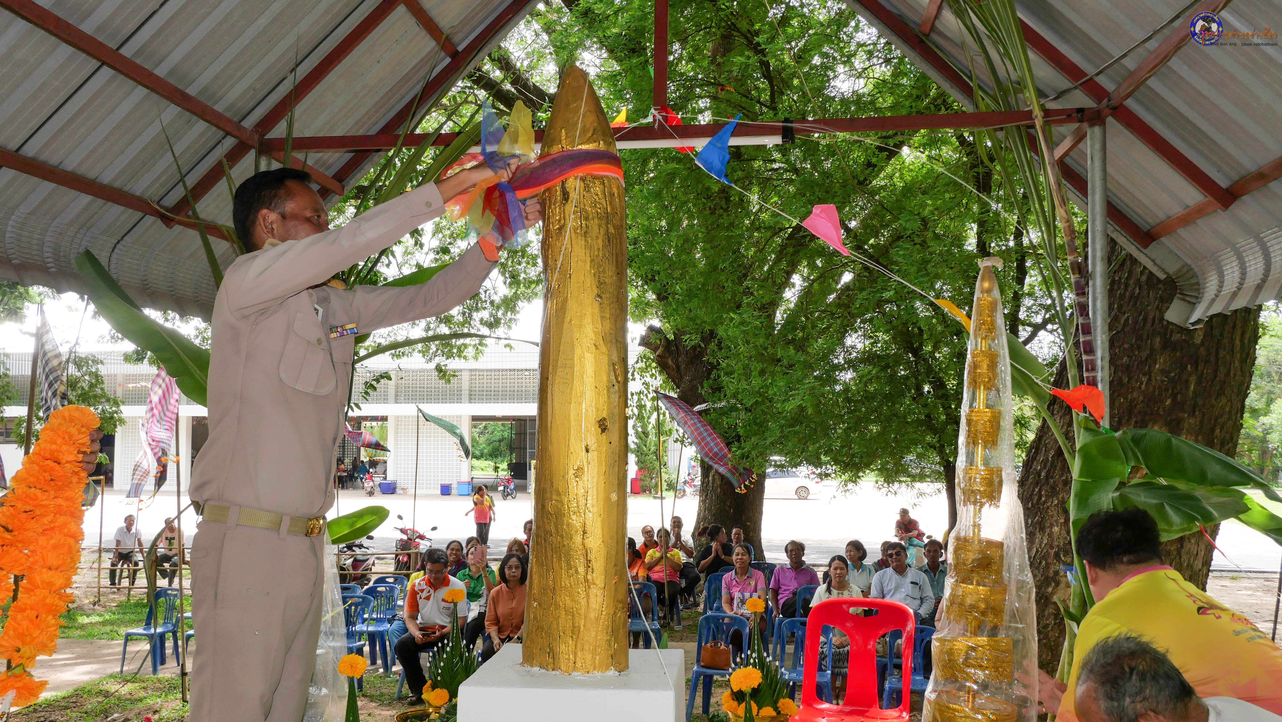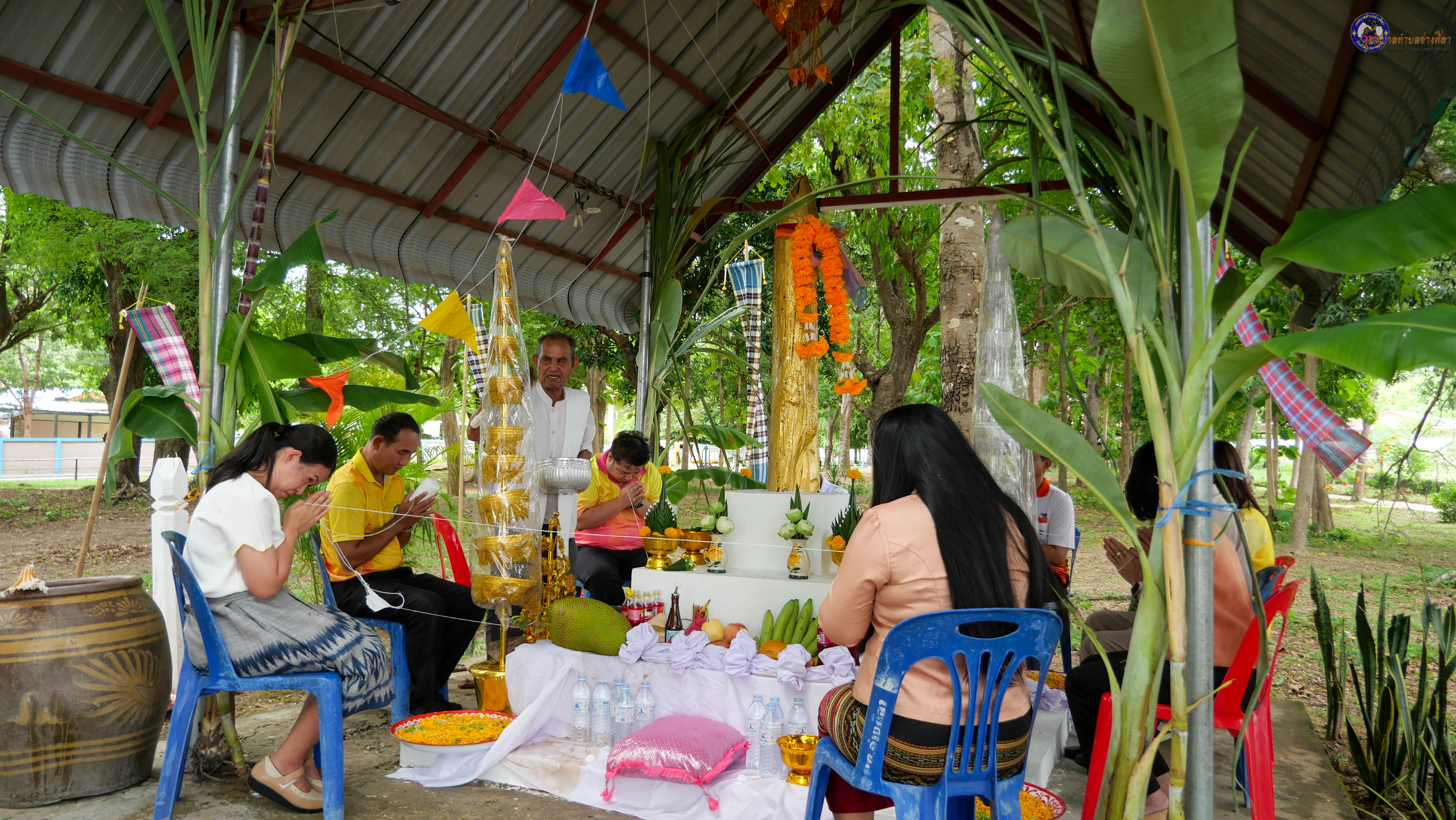 ร่วมพิธีบวงสรวงสักการะศาลหลักบ้าน เพื่อสืบสานวัฒนธรรม ภูมิปัญญาท้องถิ่น งานบุญซำฮะ (บุญเดือน ๗) ตามฮีตสองคองอีสาน เพื่อเป็นการปัดรังควาน ขับไล่สิ่งชั่วร้าย เสนียดจัญไร ภูตผีปีศาจ หรือภัยอันตรายต่างๆให้ออกไปจากหมู่บ้าน ชุมชน ให้เกิดความเป็นสิริมงคลแก่หมู่บ้านและชาวบ้าน โดยมีคุณพ่อสุนีย์ ทองทับ ปราชญ์ชาวบ้านเป็นผู้ประกอบพิธีบวงสรวงสักการะศาลหลักบ้าน