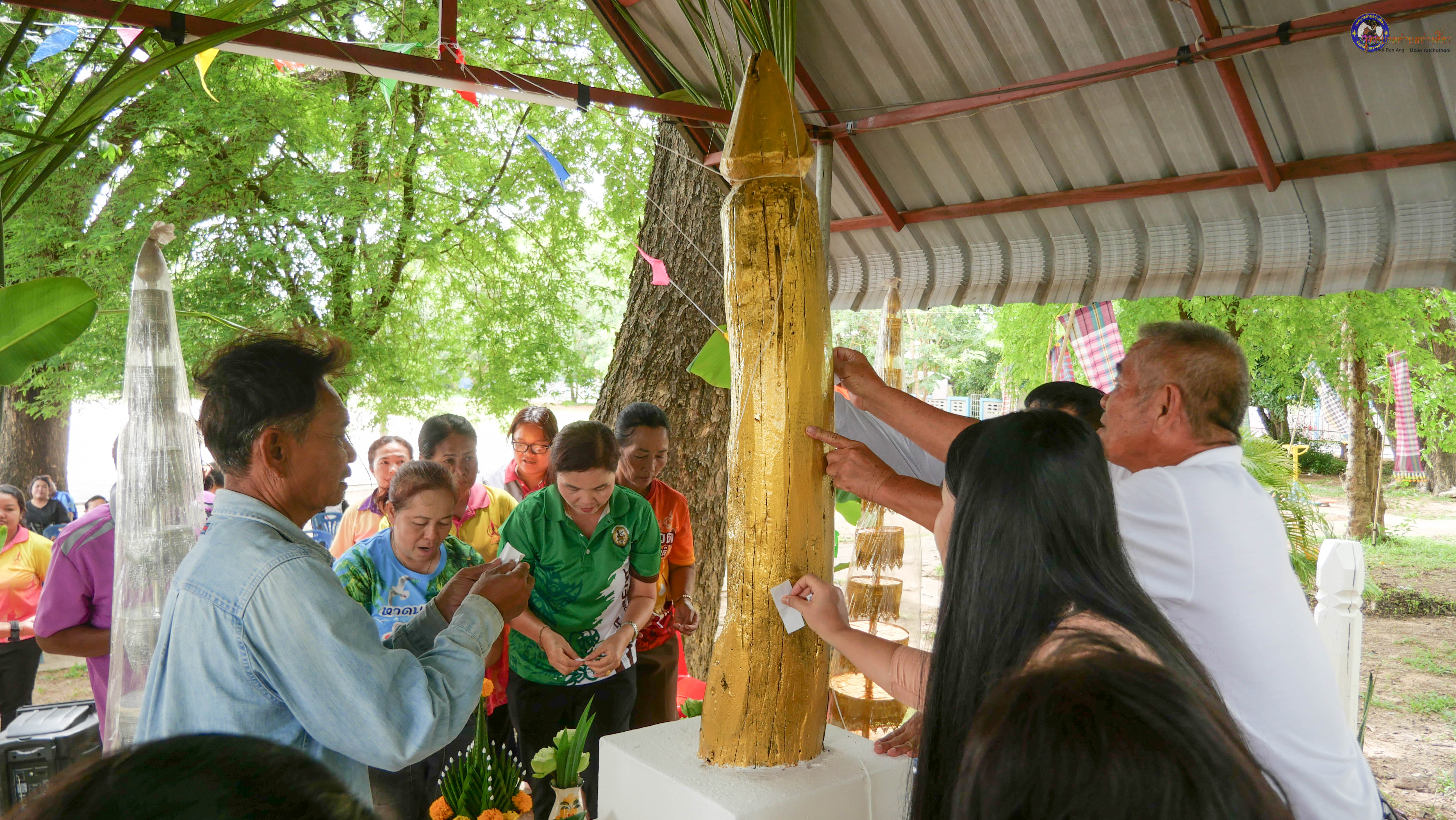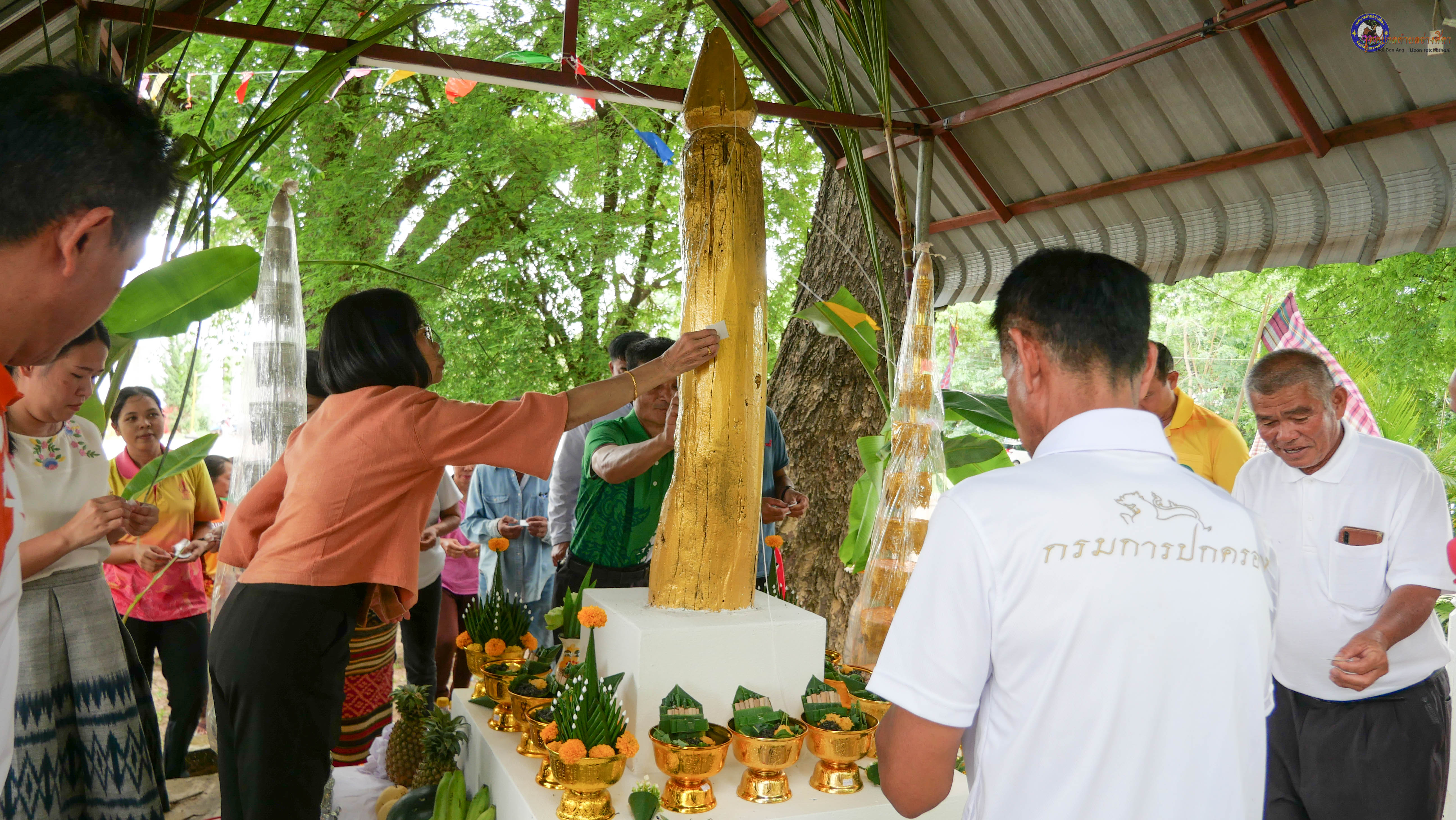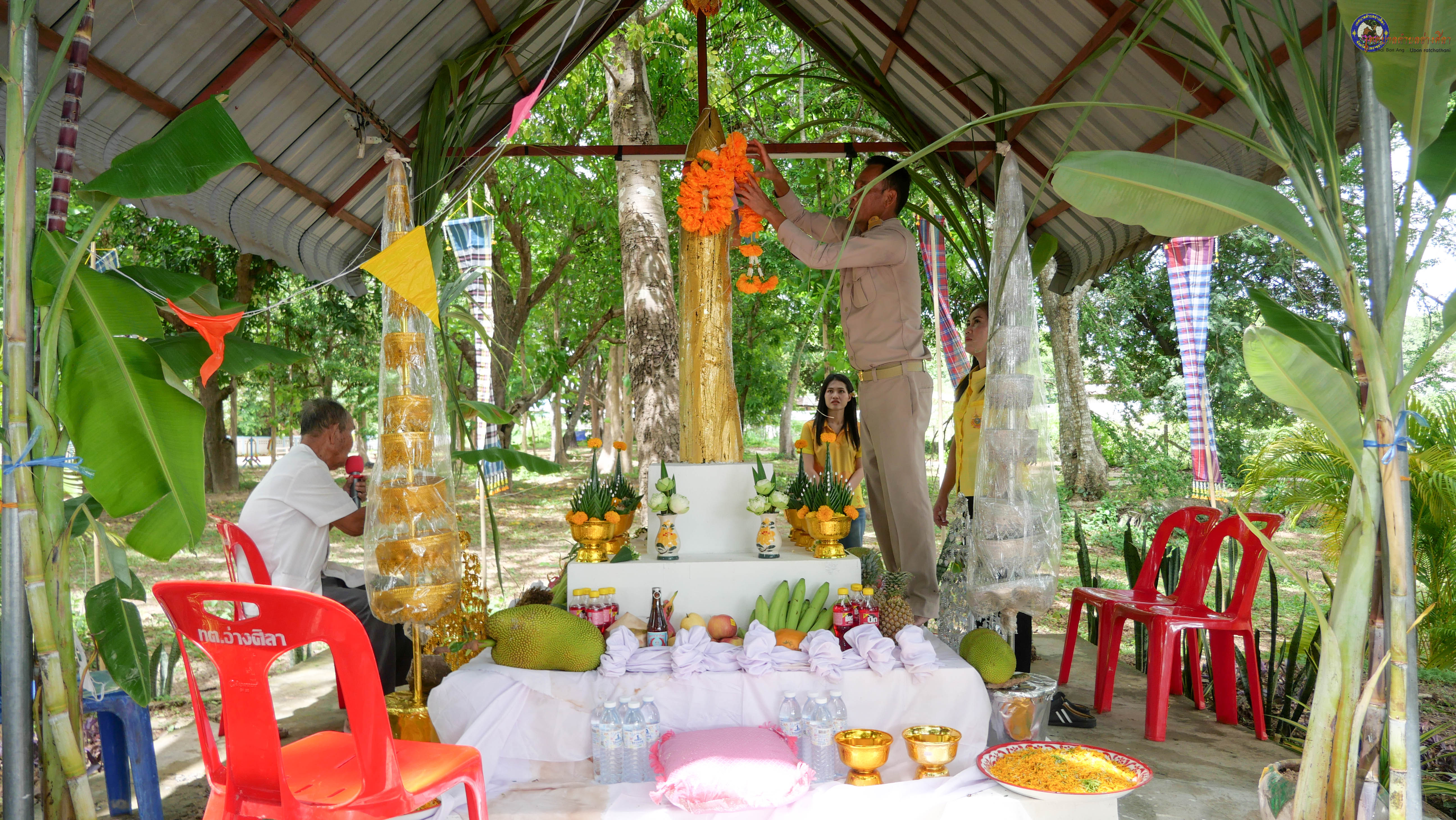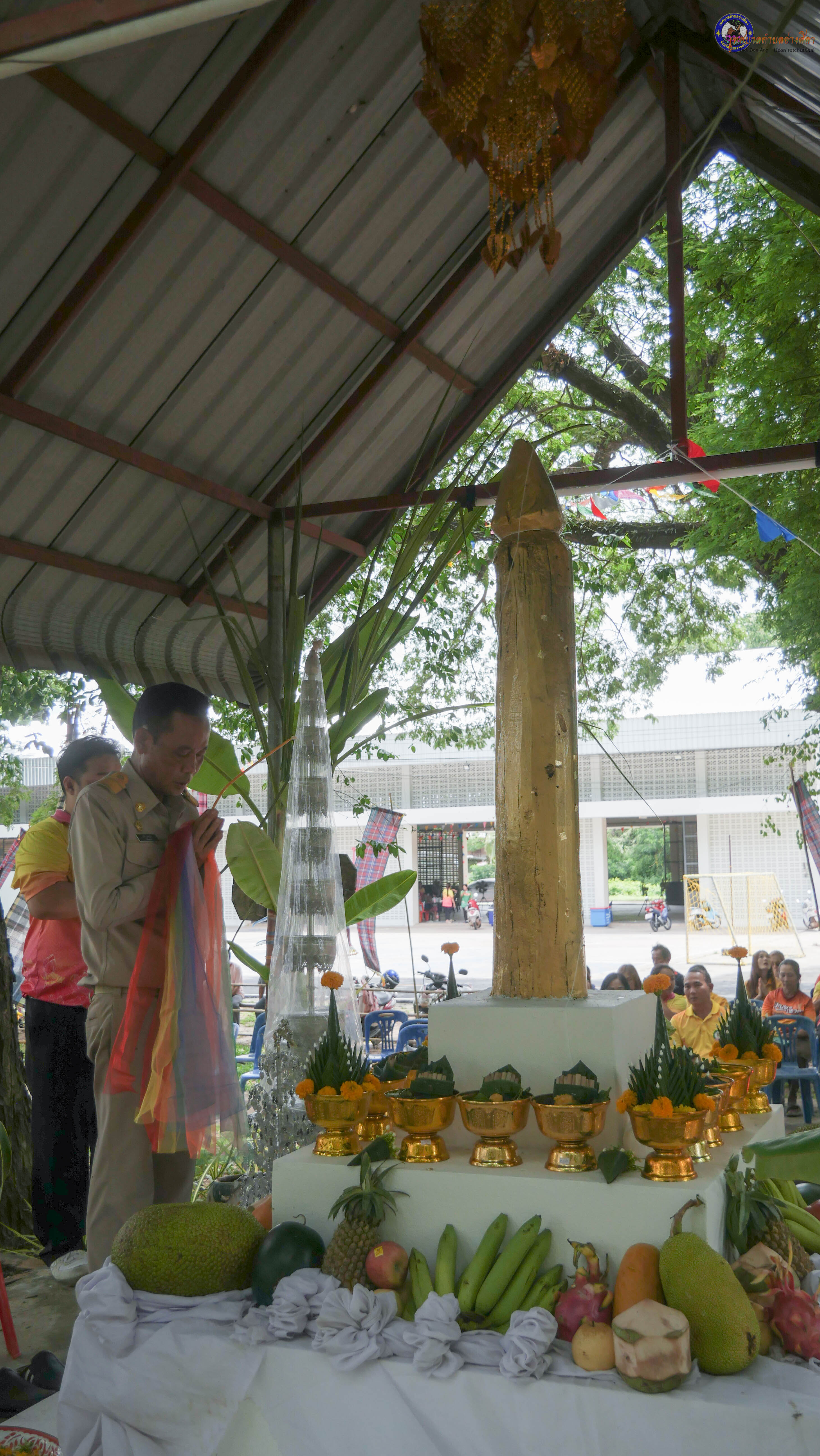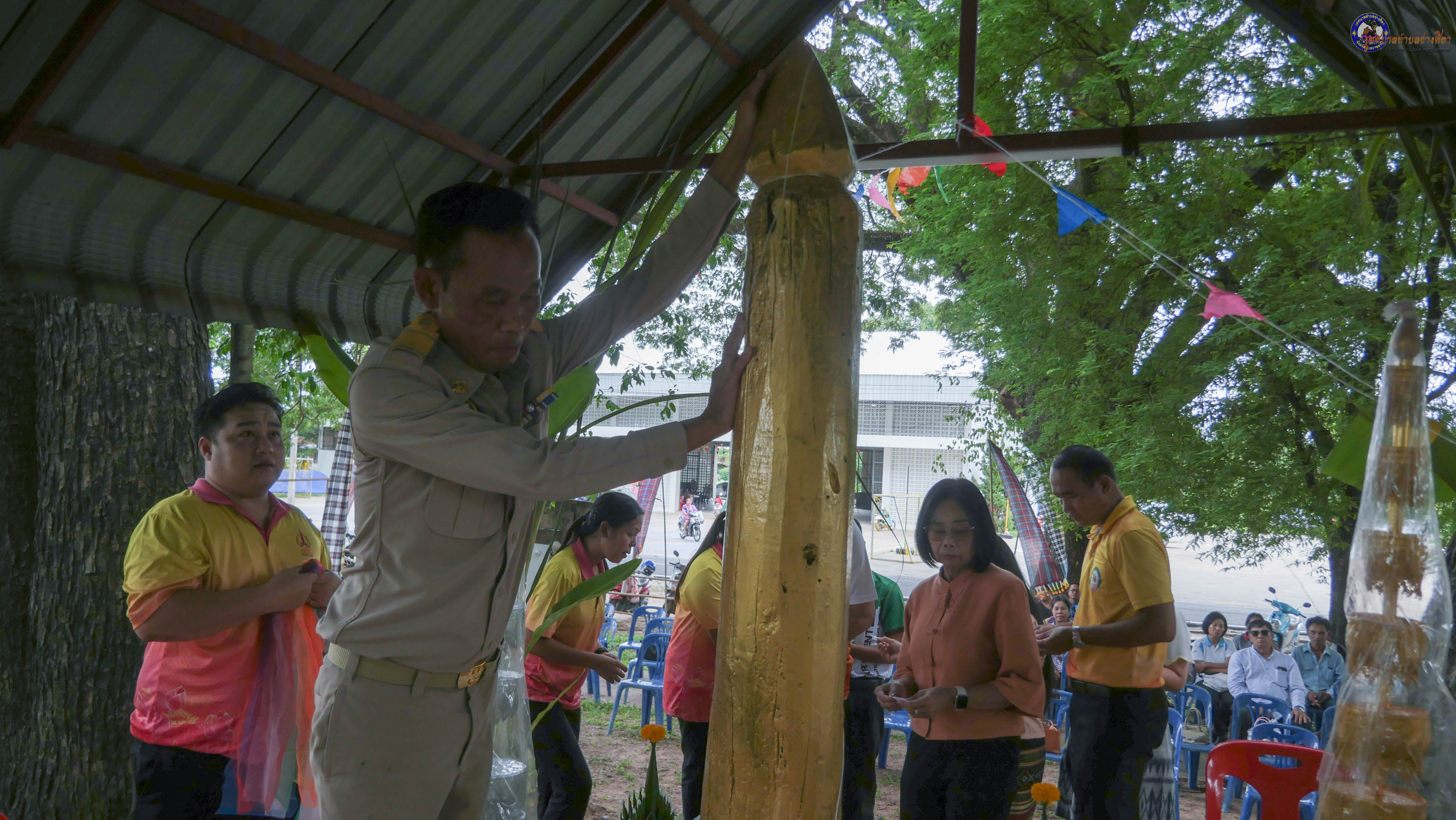 ร่วมพิธีบวงสรวงสักการะศาลหลักบ้าน เพื่อสืบสานวัฒนธรรม ภูมิปัญญาท้องถิ่น งานบุญซำฮะ (บุญเดือน ๗) ตามฮีตสองคองอีสาน เพื่อเป็นการปัดรังควาน ขับไล่สิ่งชั่วร้าย เสนียดจัญไร ภูตผีปีศาจ หรือภัยอันตรายต่างๆให้ออกไปจากหมู่บ้าน ชุมชน ให้เกิดความเป็นสิริมงคลแก่หมู่บ้านและชาวบ้าน โดยมีคุณพ่อสุนีย์ ทองทับ ปราชญ์ชาวบ้านเป็นผู้ประกอบพิธีบวงสรวงสักการะศาลหลักบ้าน