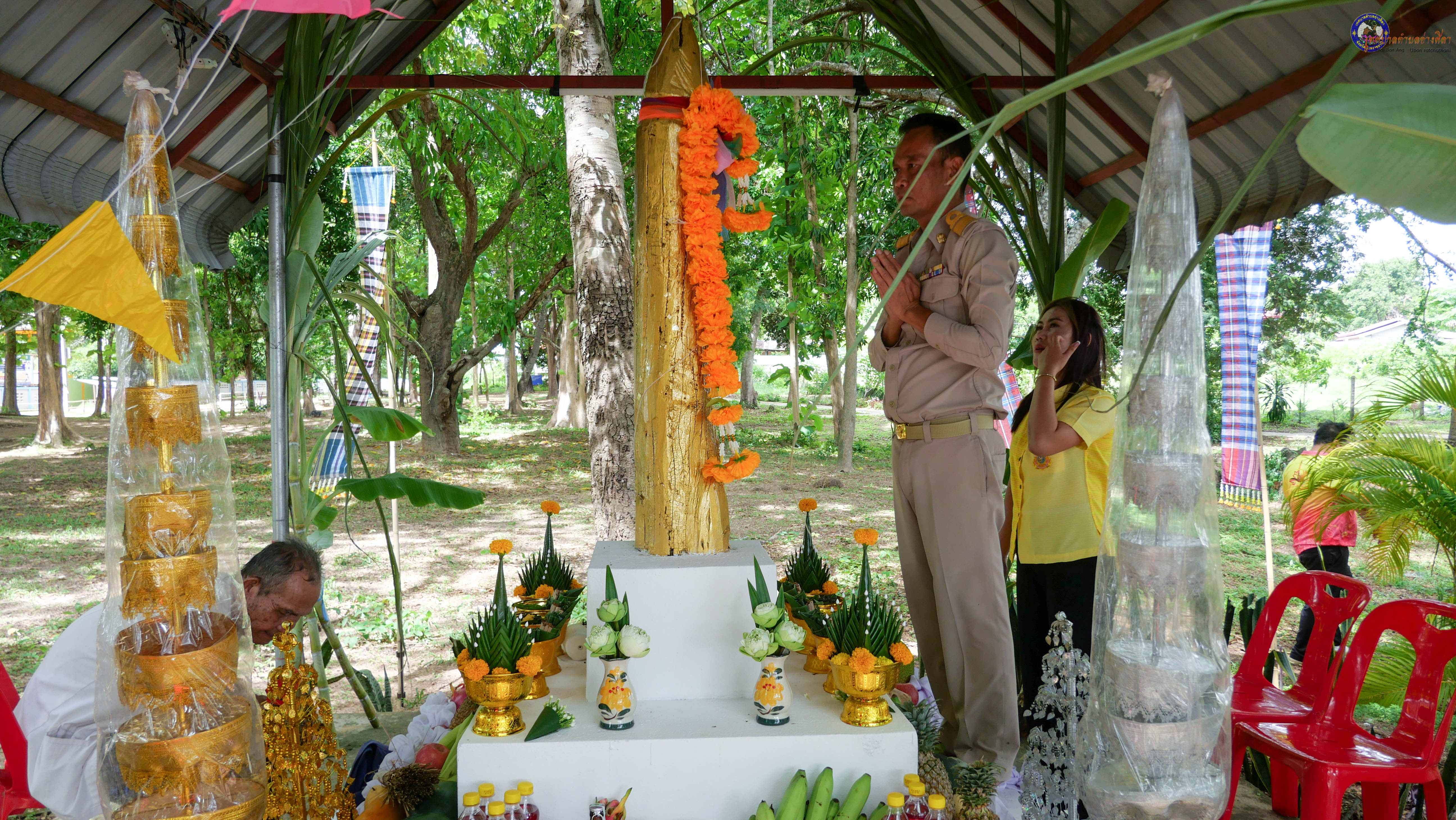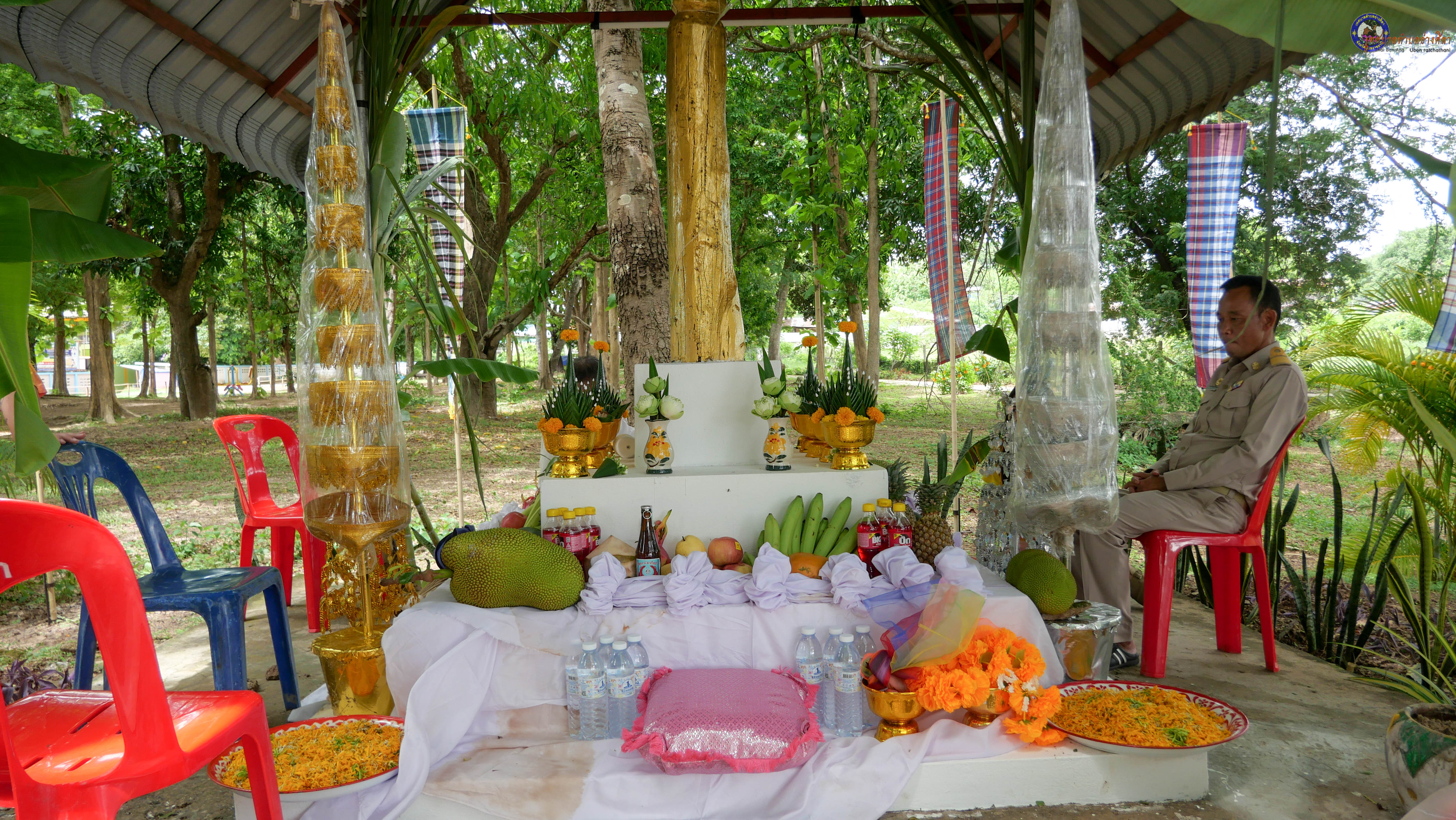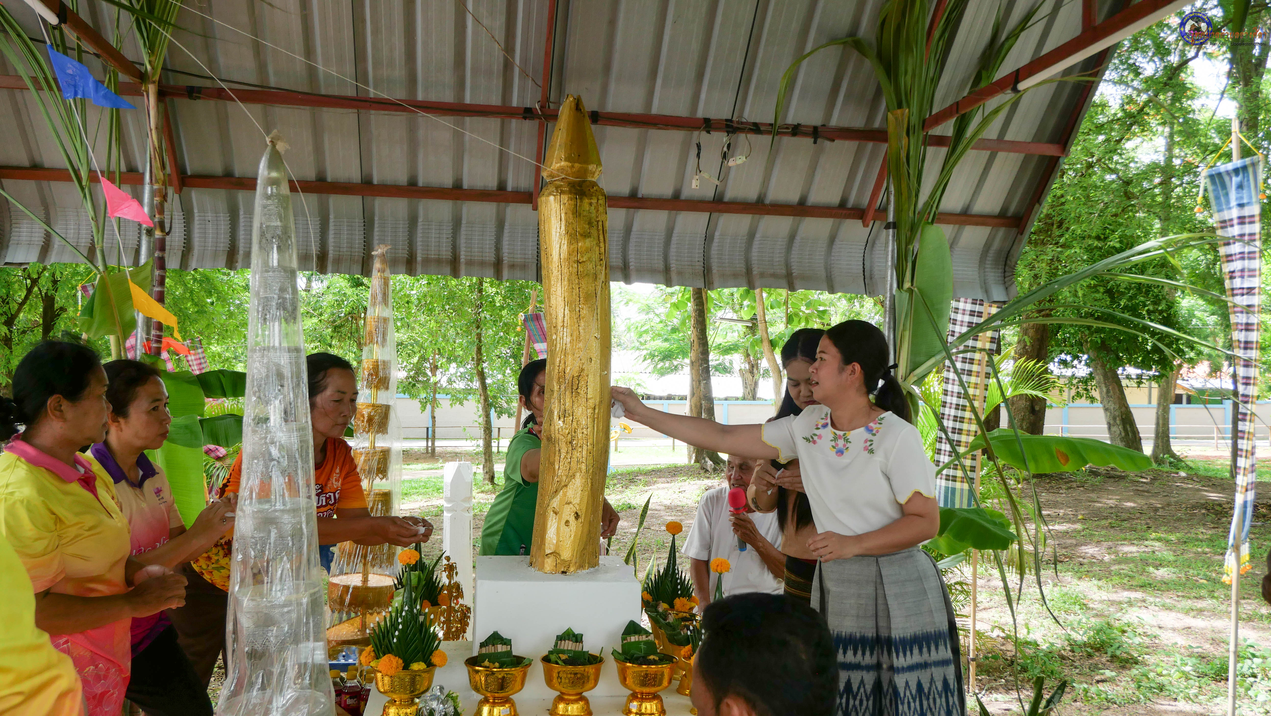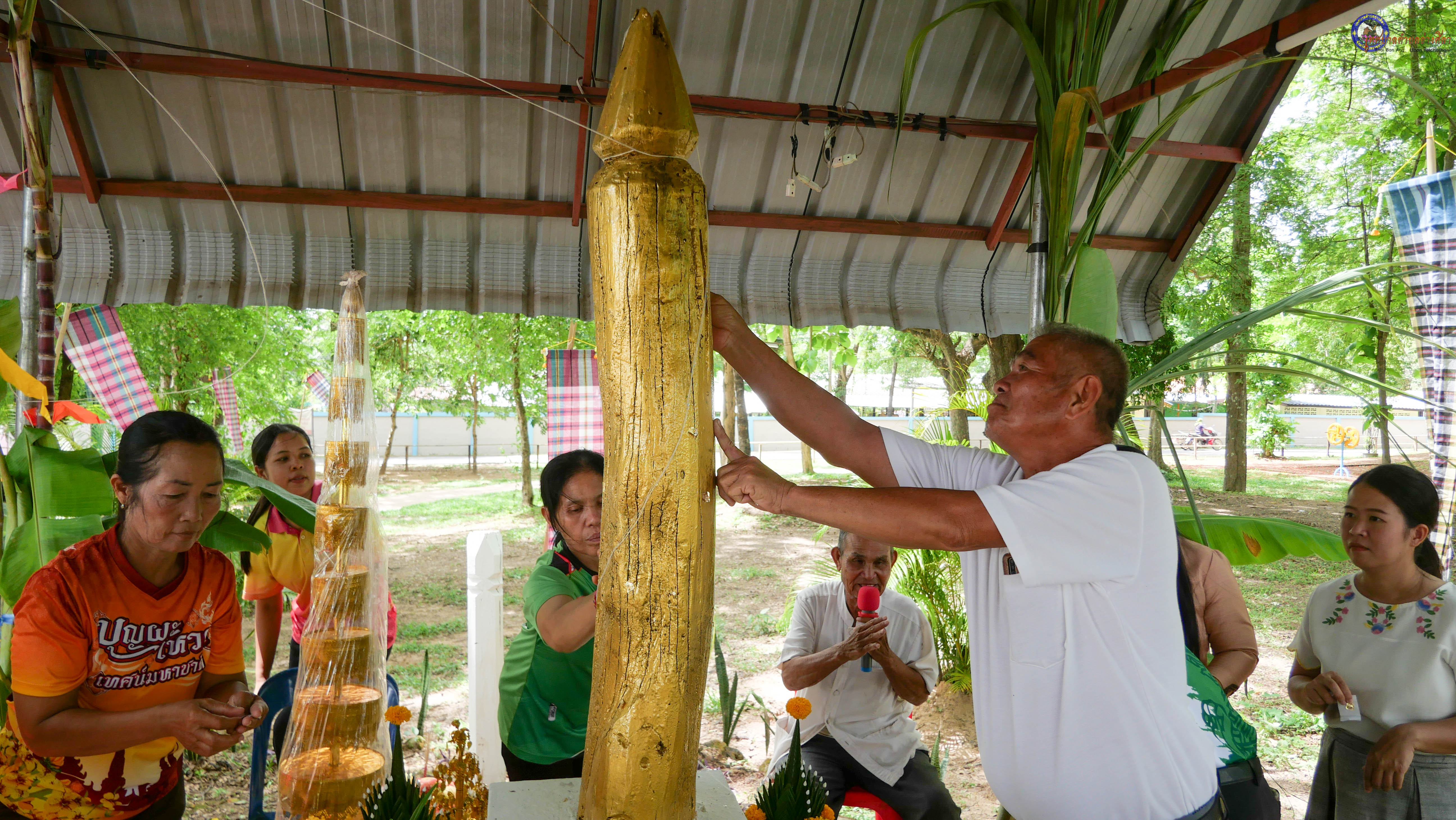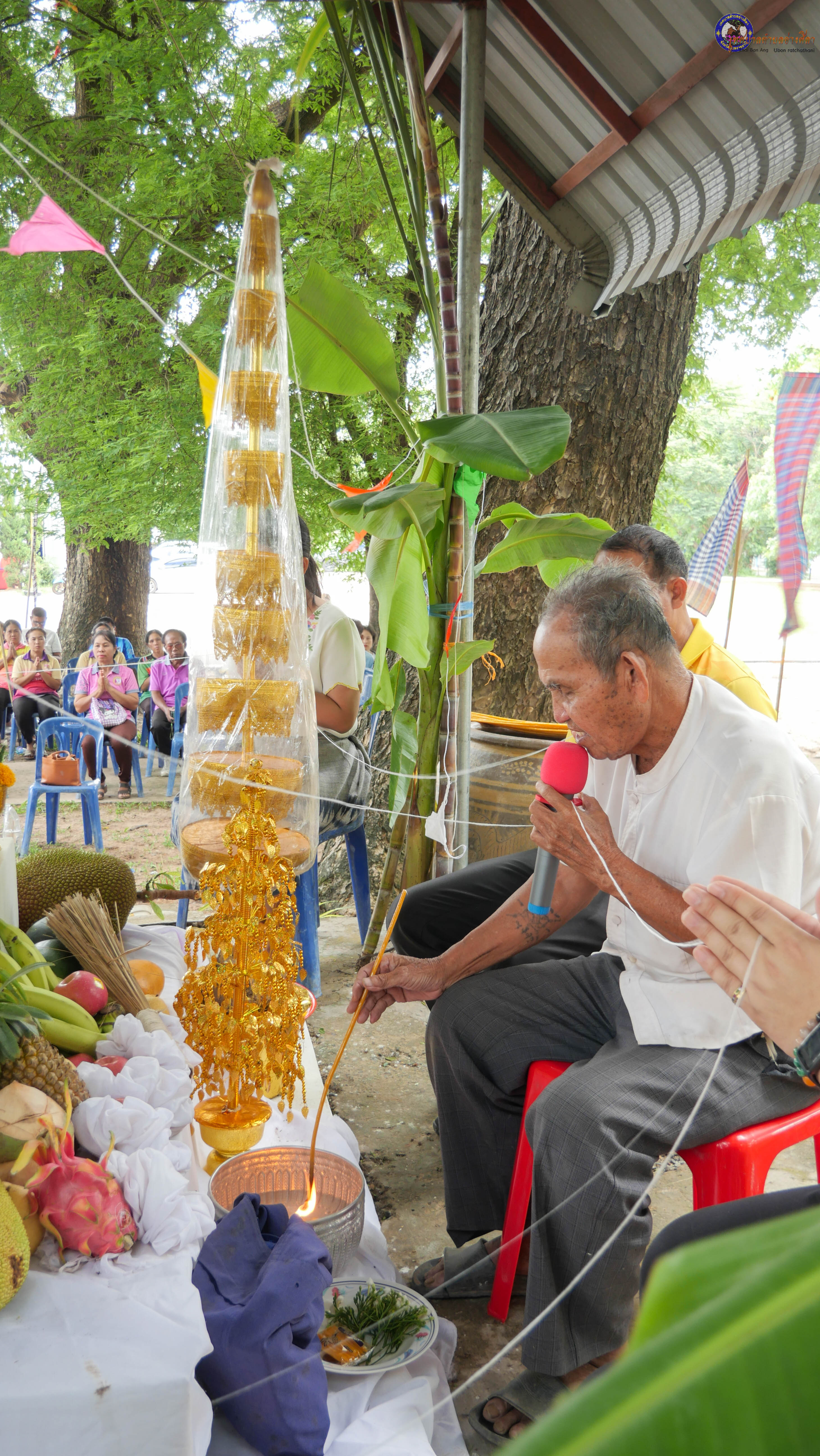 ร่วมพิธีบวงสรวงสักการะศาลหลักบ้าน เพื่อสืบสานวัฒนธรรม ภูมิปัญญาท้องถิ่น งานบุญซำฮะ (บุญเดือน ๗) ตามฮีตสองคองอีสาน เพื่อเป็นการปัดรังควาน ขับไล่สิ่งชั่วร้าย เสนียดจัญไร ภูตผีปีศาจ หรือภัยอันตรายต่างๆให้ออกไปจากหมู่บ้าน ชุมชน ให้เกิดความเป็นสิริมงคลแก่หมู่บ้านและชาวบ้าน โดยมีคุณพ่อสุนีย์ ทองทับ ปราชญ์ชาวบ้านเป็นผู้ประกอบพิธีบวงสรวงสักการะศาลหลักบ้าน