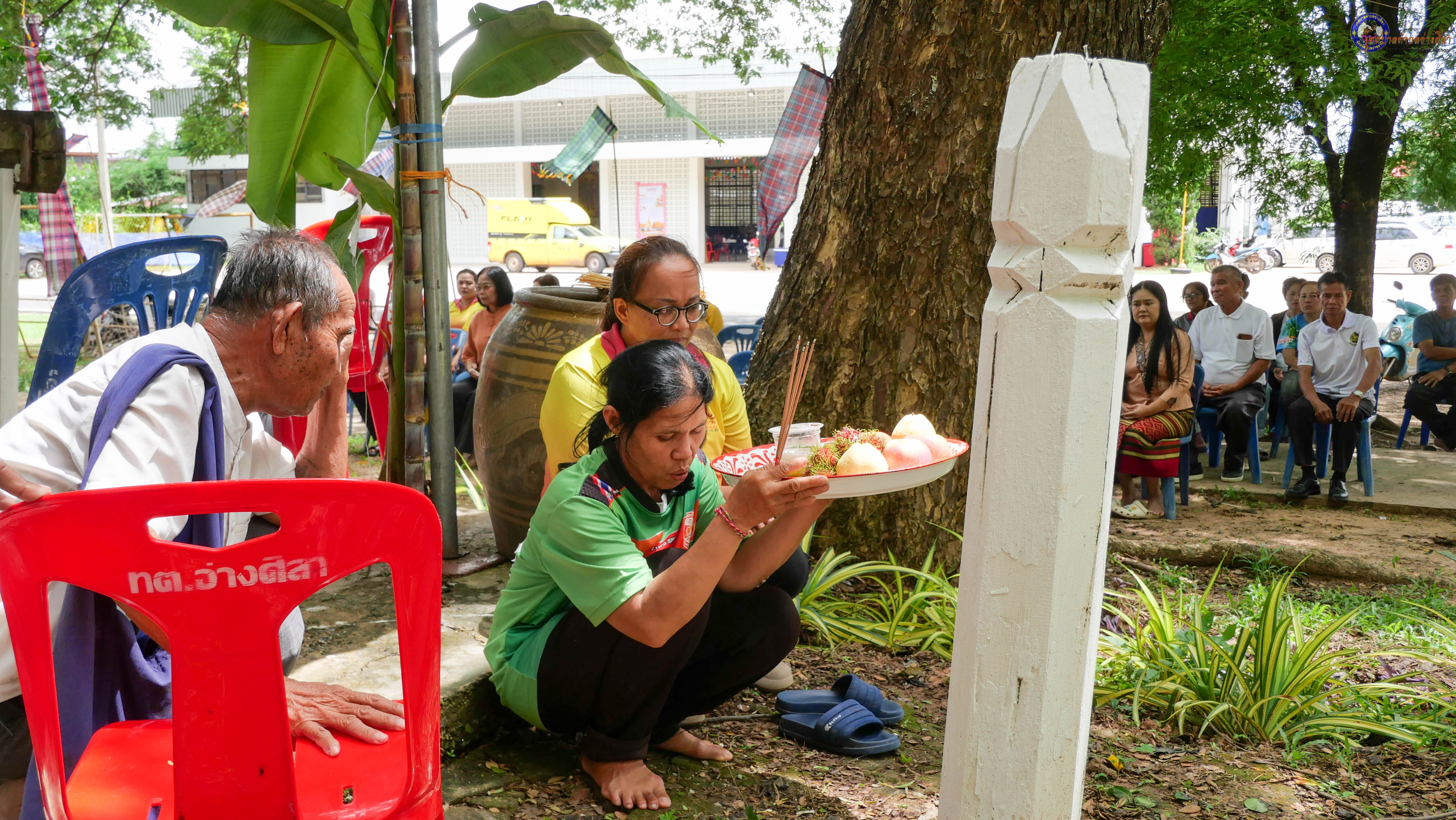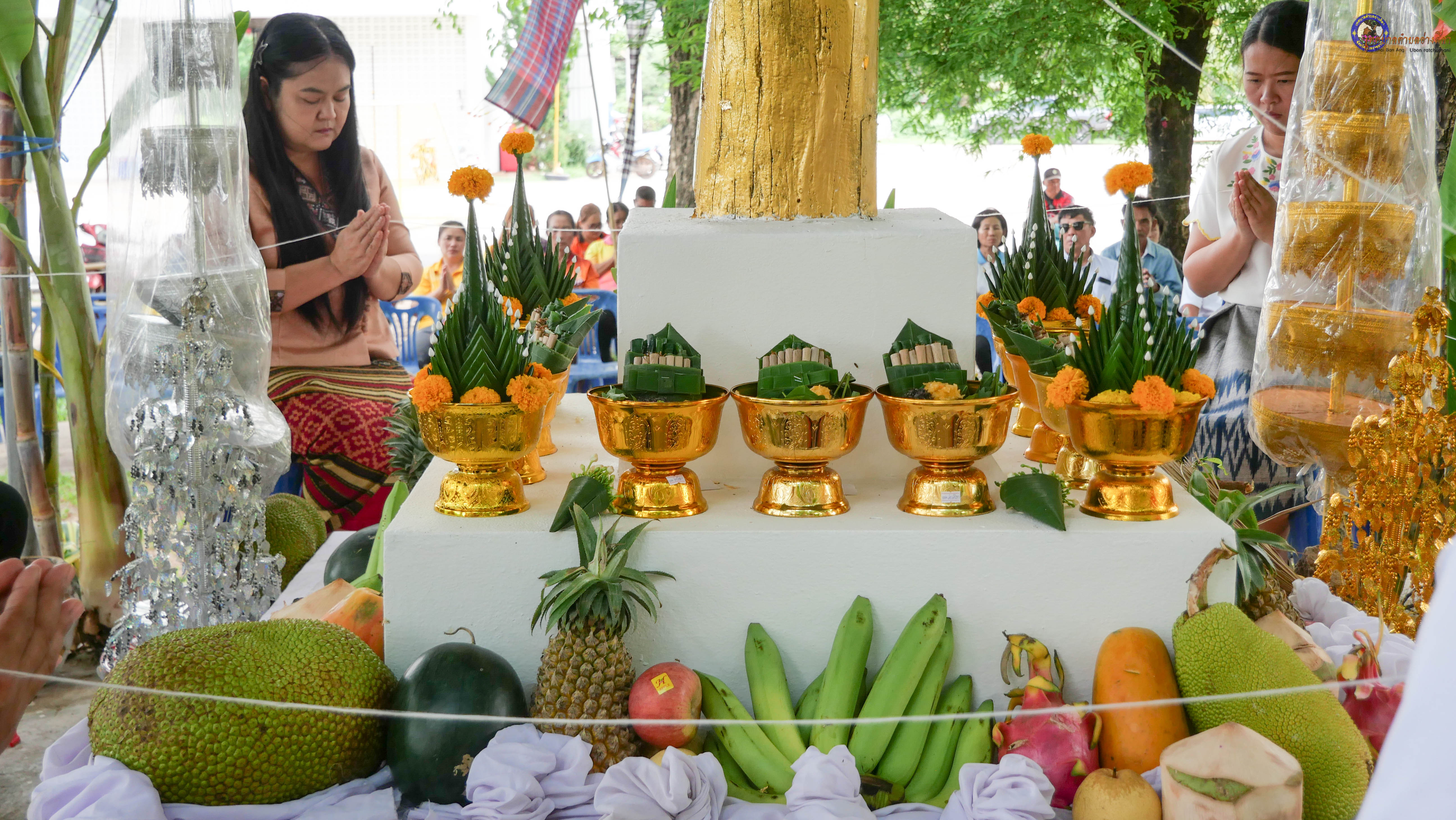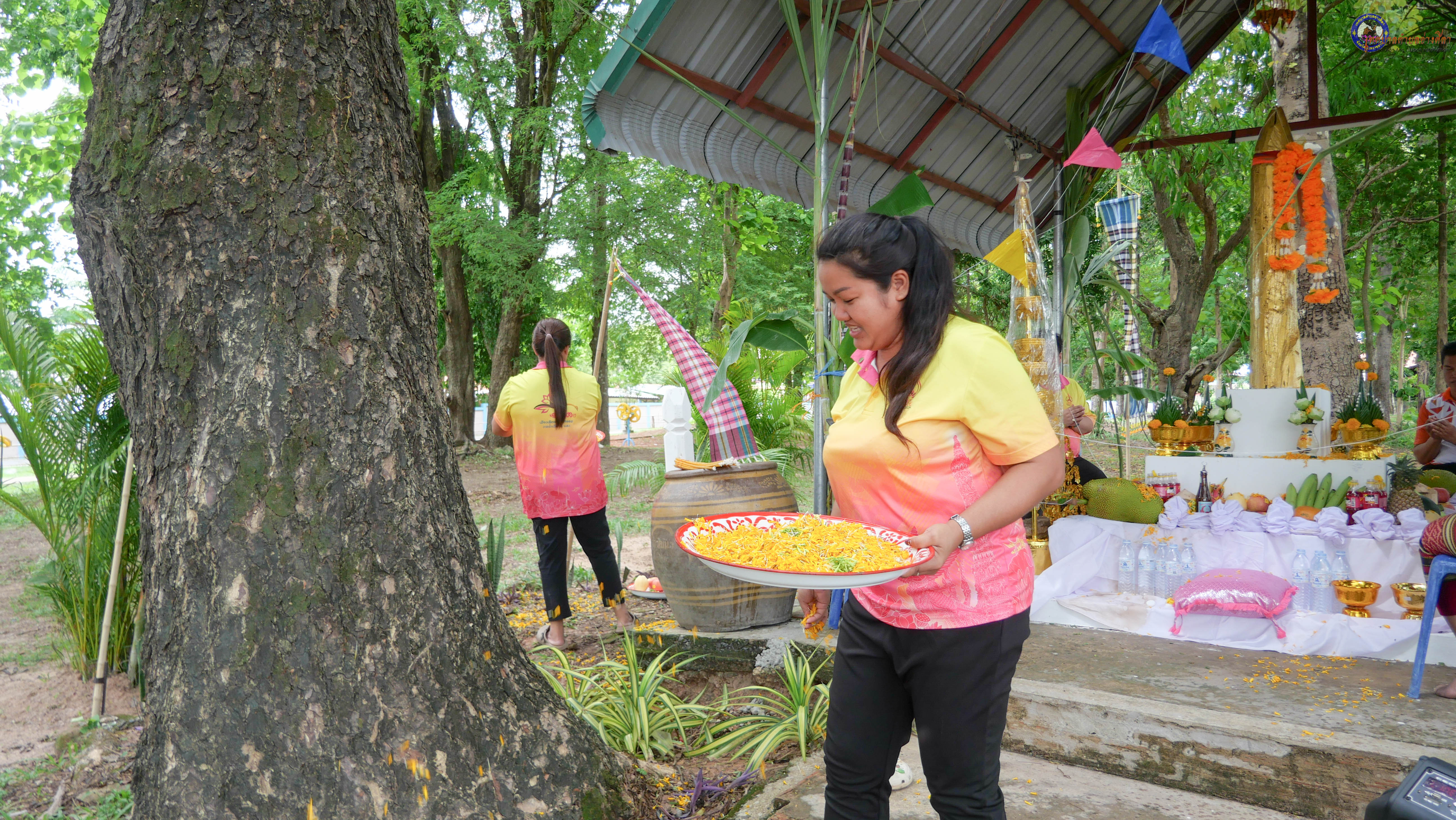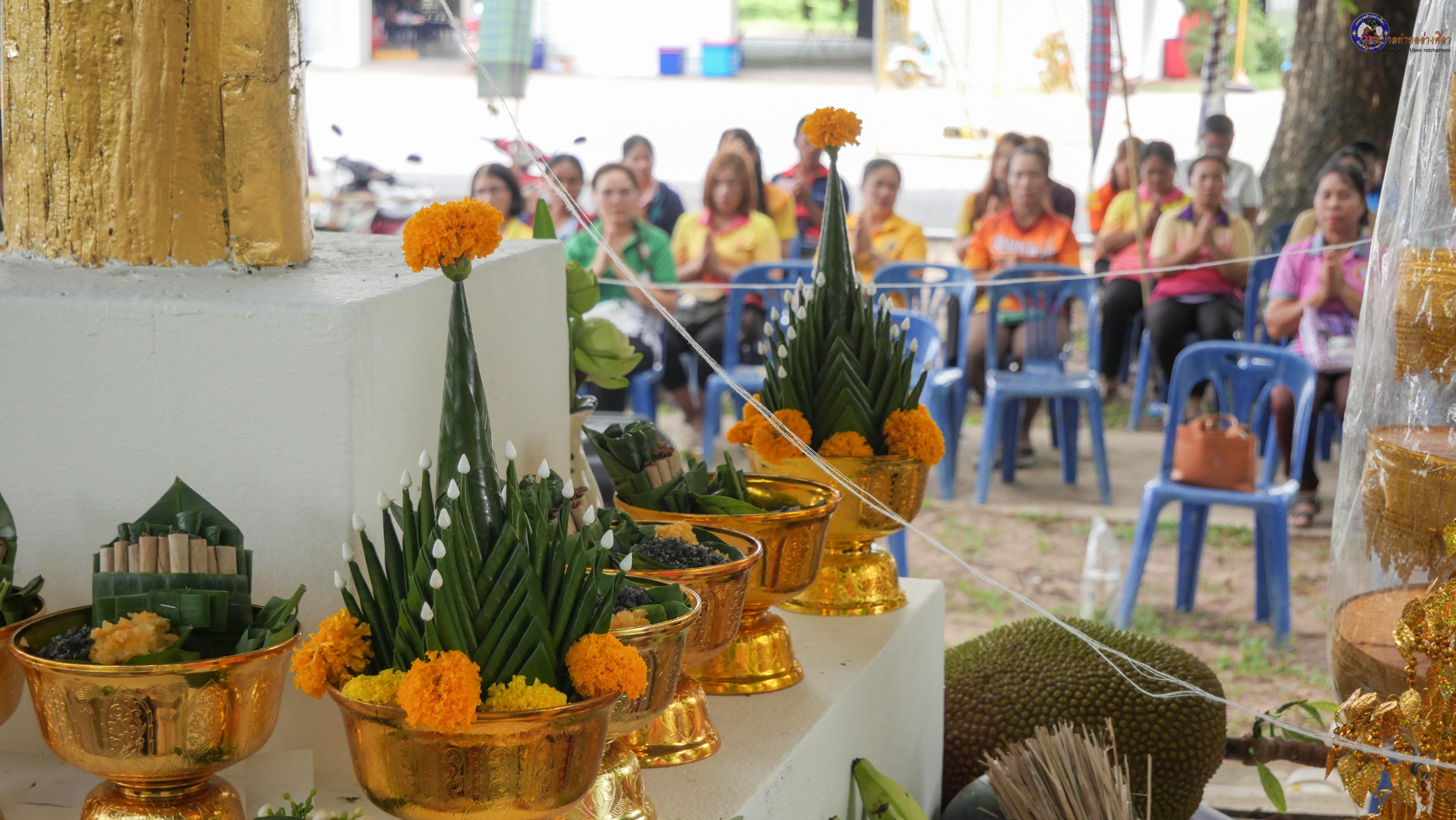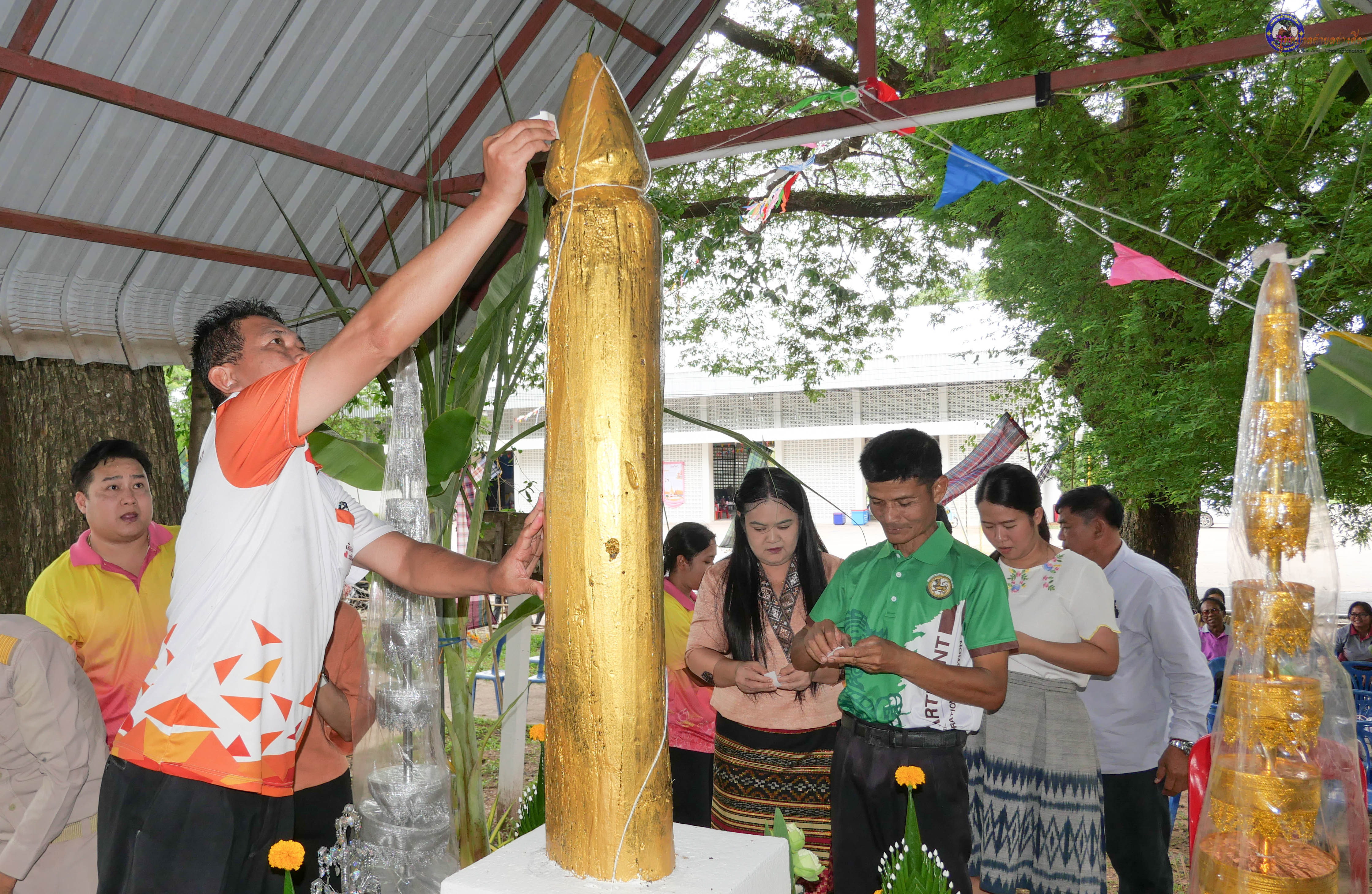 ร่วมพิธีบวงสรวงสักการะศาลหลักบ้าน เพื่อสืบสานวัฒนธรรม ภูมิปัญญาท้องถิ่น งานบุญซำฮะ (บุญเดือน ๗) ตามฮีตสองคองอีสาน เพื่อเป็นการปัดรังควาน ขับไล่สิ่งชั่วร้าย เสนียดจัญไร ภูตผีปีศาจ หรือภัยอันตรายต่างๆให้ออกไปจากหมู่บ้าน ชุมชน ให้เกิดความเป็นสิริมงคลแก่หมู่บ้านและชาวบ้าน โดยมีคุณพ่อสุนีย์ ทองทับ ปราชญ์ชาวบ้านเป็นผู้ประกอบพิธีบวงสรวงสักการะศาลหลักบ้าน