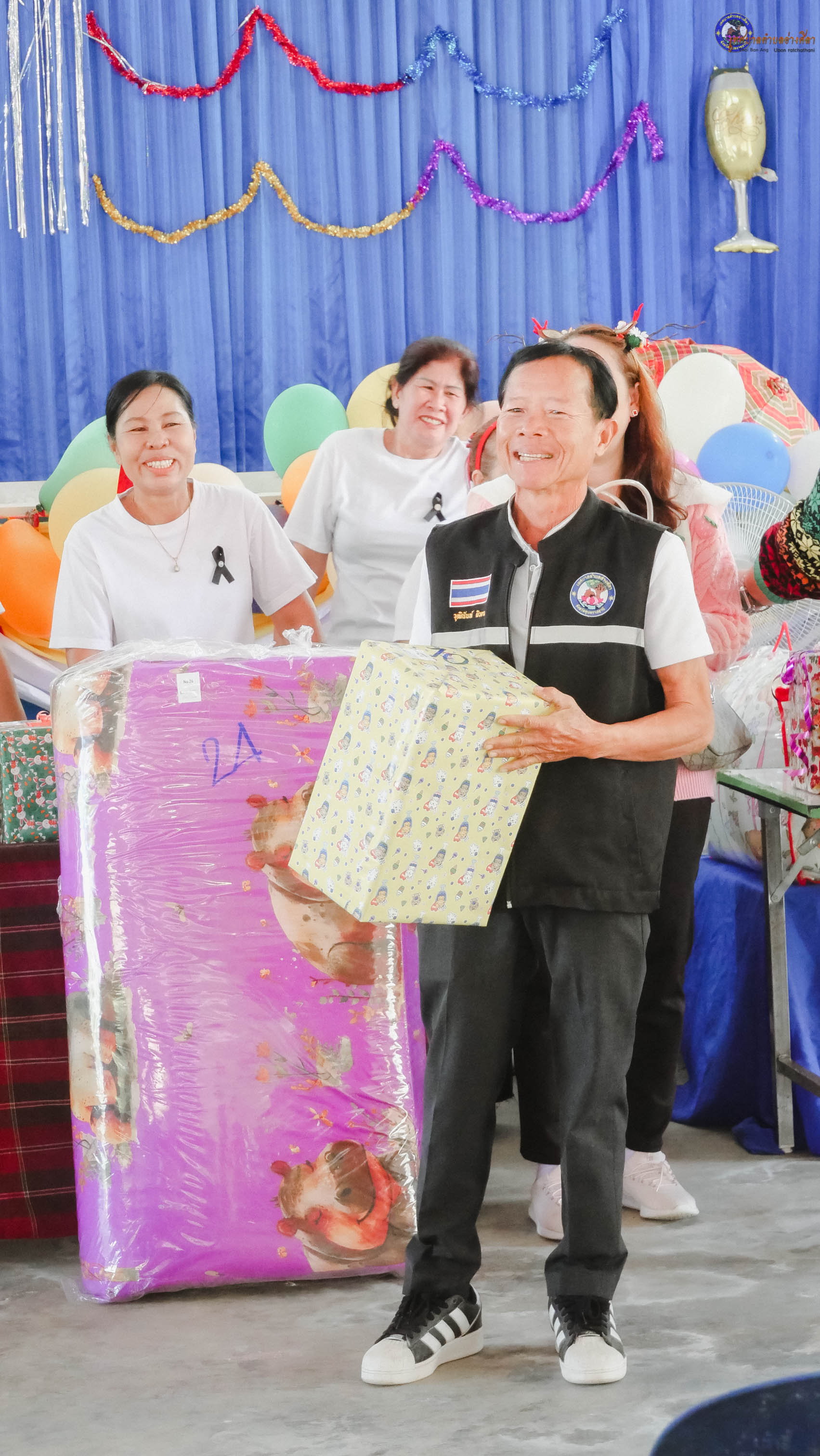 พร้อมด้วย นายสมัย วงค์คำ นายสำเนา บุญราม รองนายกเทศมนตรี นายวุฒินันท์ ผิวขาว ประธานสภาเทศบาลตำบลอ่างศิลา สมาชิกสภาเทศบาลทุกท่าน นายกมลวรรธน์ ดุมแก้ว ผอ.กองการศึกษา นางสุบรรณ พิมพบุตร ผอ.รพ.สต.อ่างศิลา นางจิรณัฐ สิงห์คำ ผอ.รพ.สต.นาชุม ผู้สูงอายุ และพนักงานลูกจ้างเทศบาลตำบลอ่างศิลา
