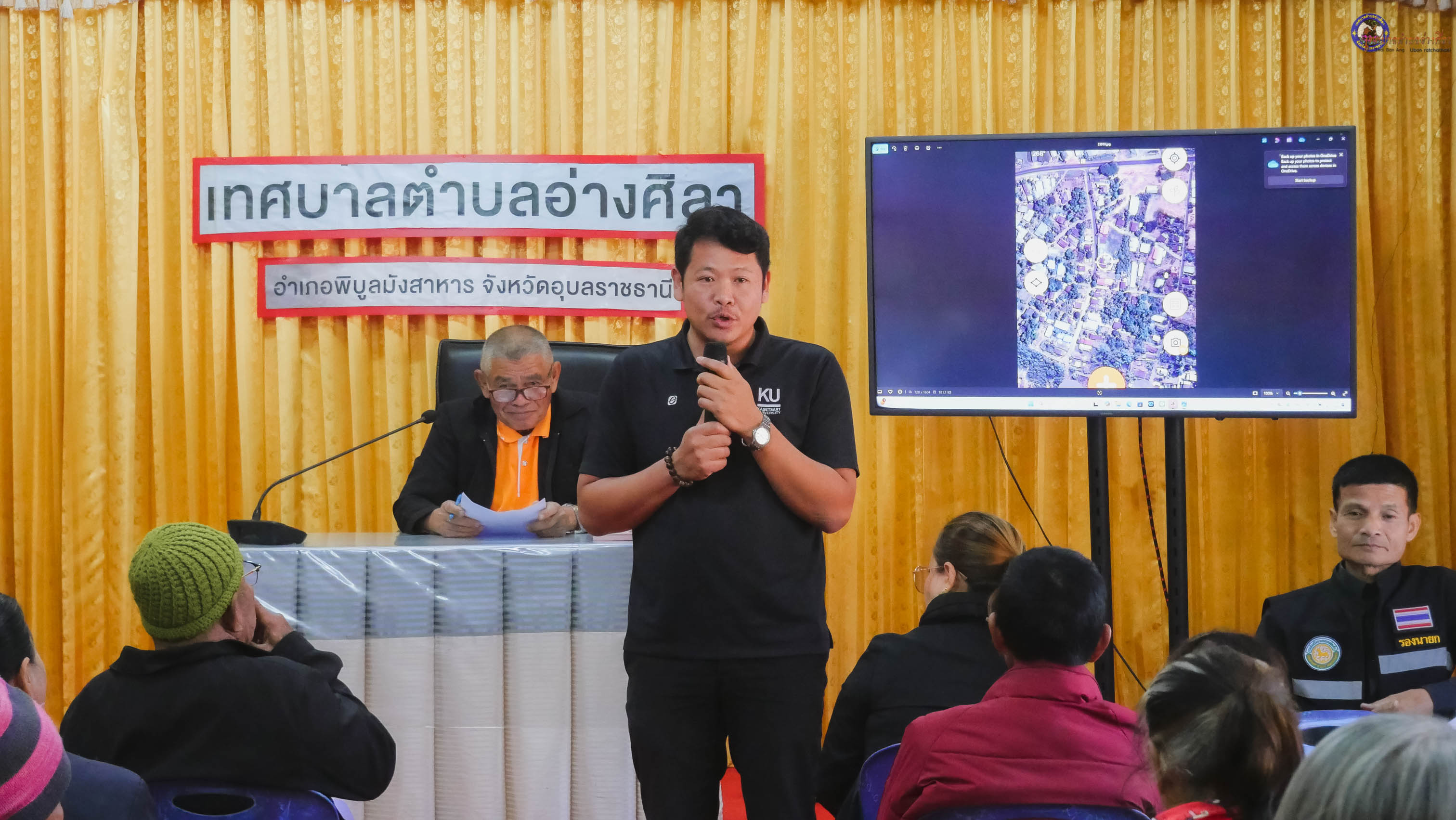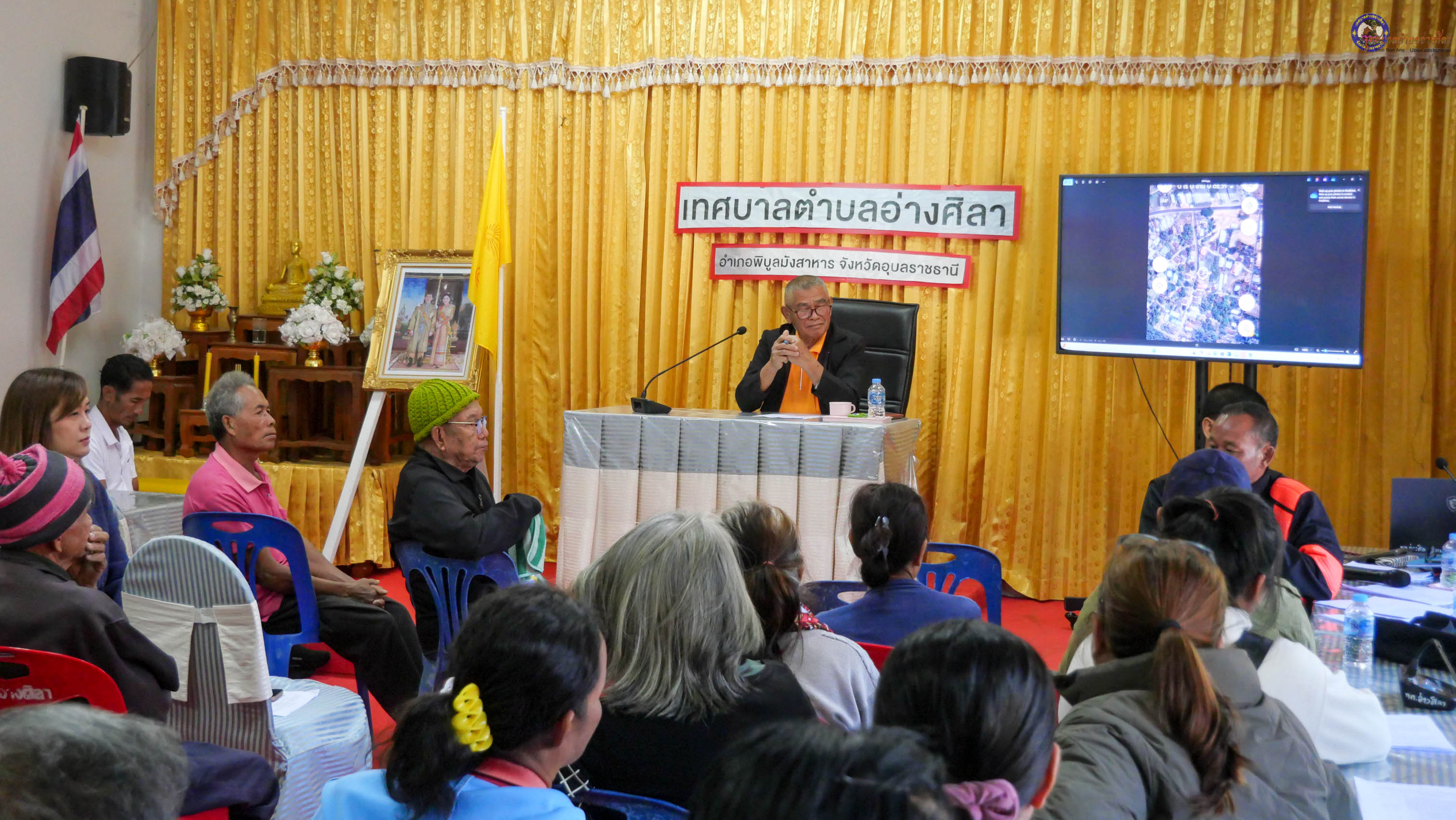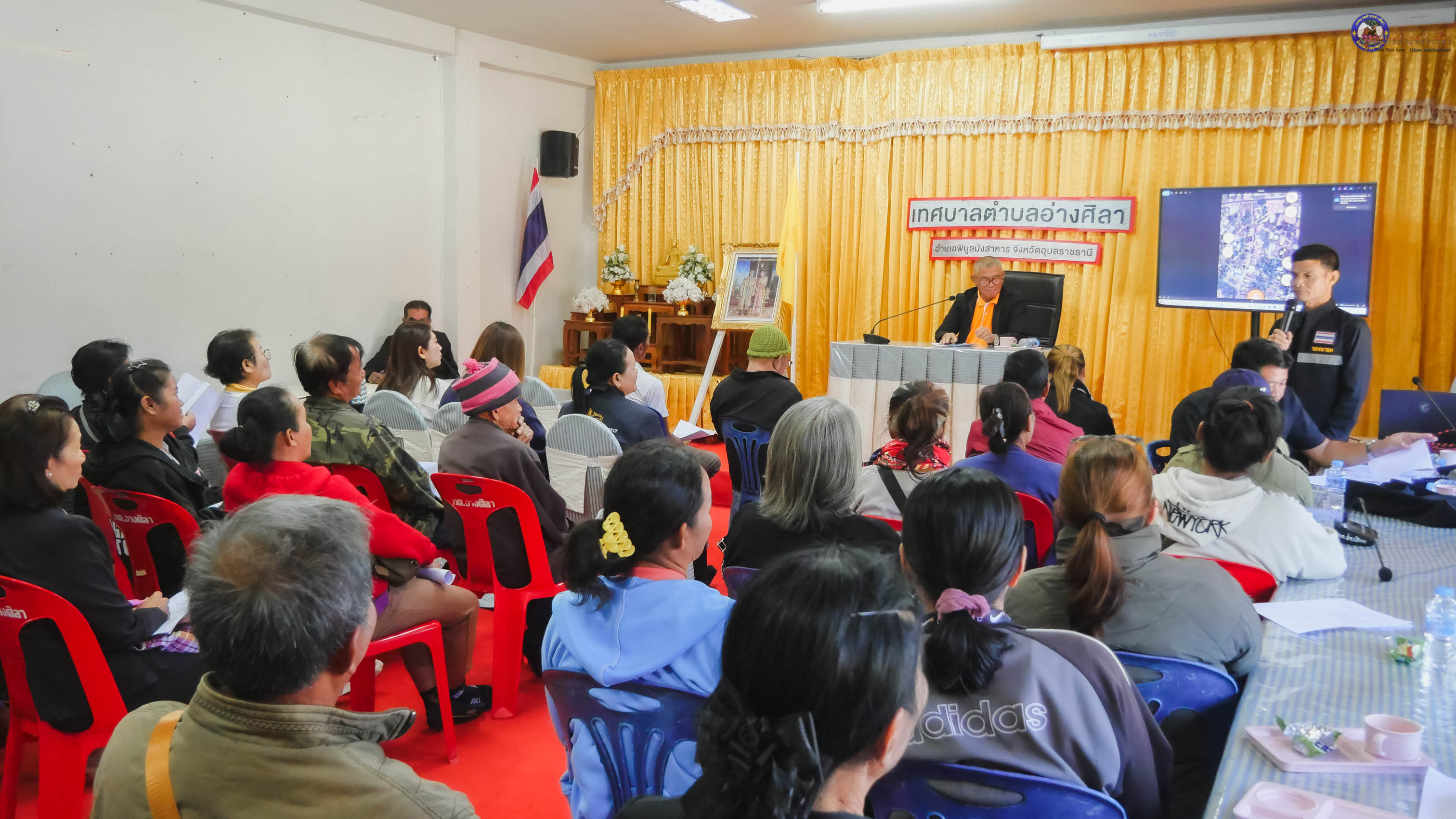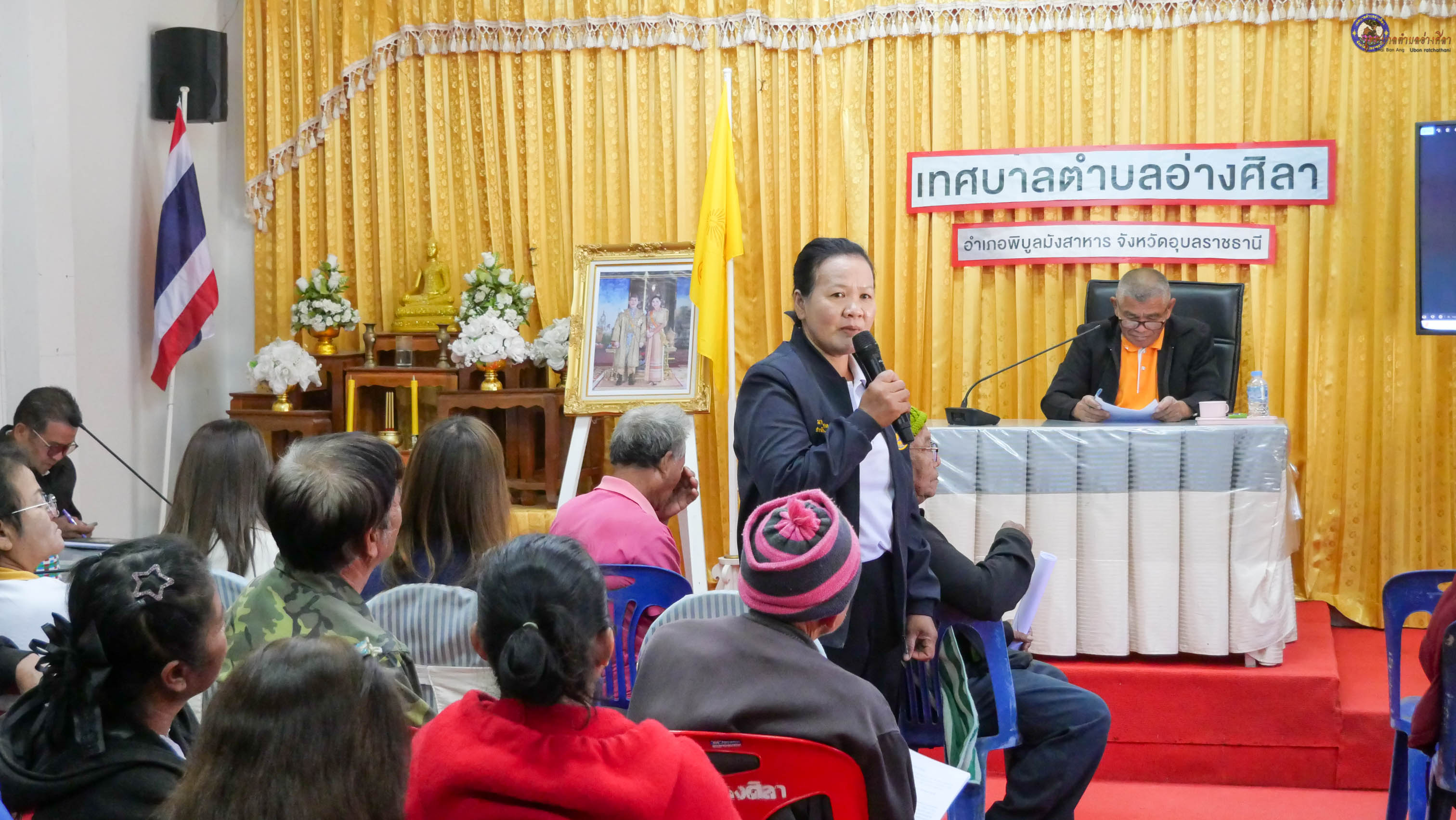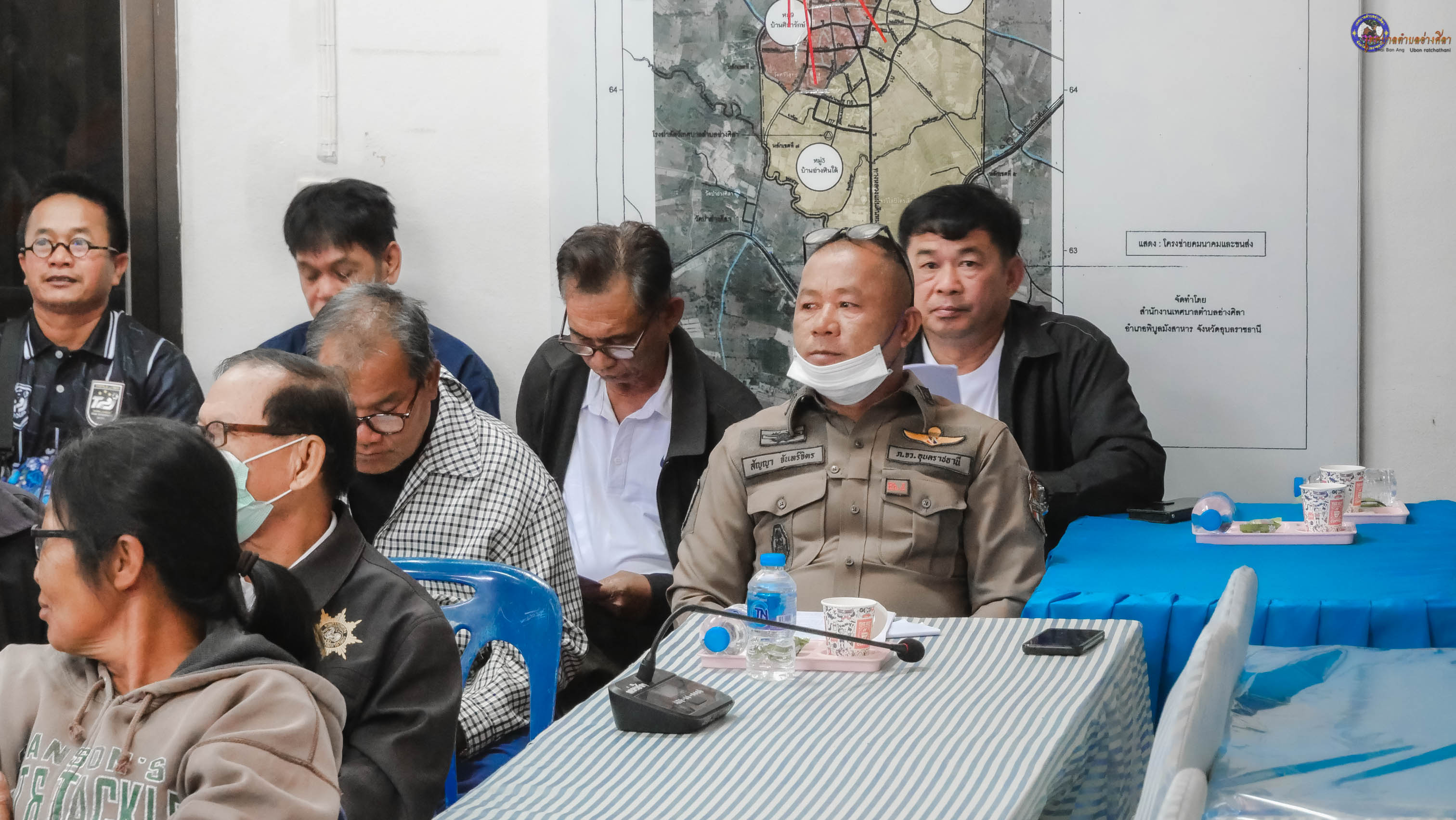 พร้อมด้วย นายสมัย วงค์คำ นายสำเนา บุญราม รองนายกเทศมนตรี นายวุฒินันท์ ผิวขาว ประธานสภาเทศบาลตำบลอ่างศิลา นายชาลี นามบุตร ปลัดเทศบาลตำบลอ่างศิลา สมาชิกสภาเทศบาลตำบลอ่างศิลา ร.ต.อ.สัญญา จันทร์จิตร รอง สวป.สภ.พิบูลมังสาหาร นางมาลัย สีแสด กำนันตำบลอ่างศิลา นายทรงชัย พงษ์โคกสี นิติกรชำนาญการ ผู้ใหญ่บ้าน/ผู้นำชุมชน ผู้แทนจากรพ.สต.อ่างศิลา โรงเรียนบ้านอ่างหิน(เพียรพิทยาคาร) ผู้แทนภาคประชาชน และพ่อค้าแม่ค้า