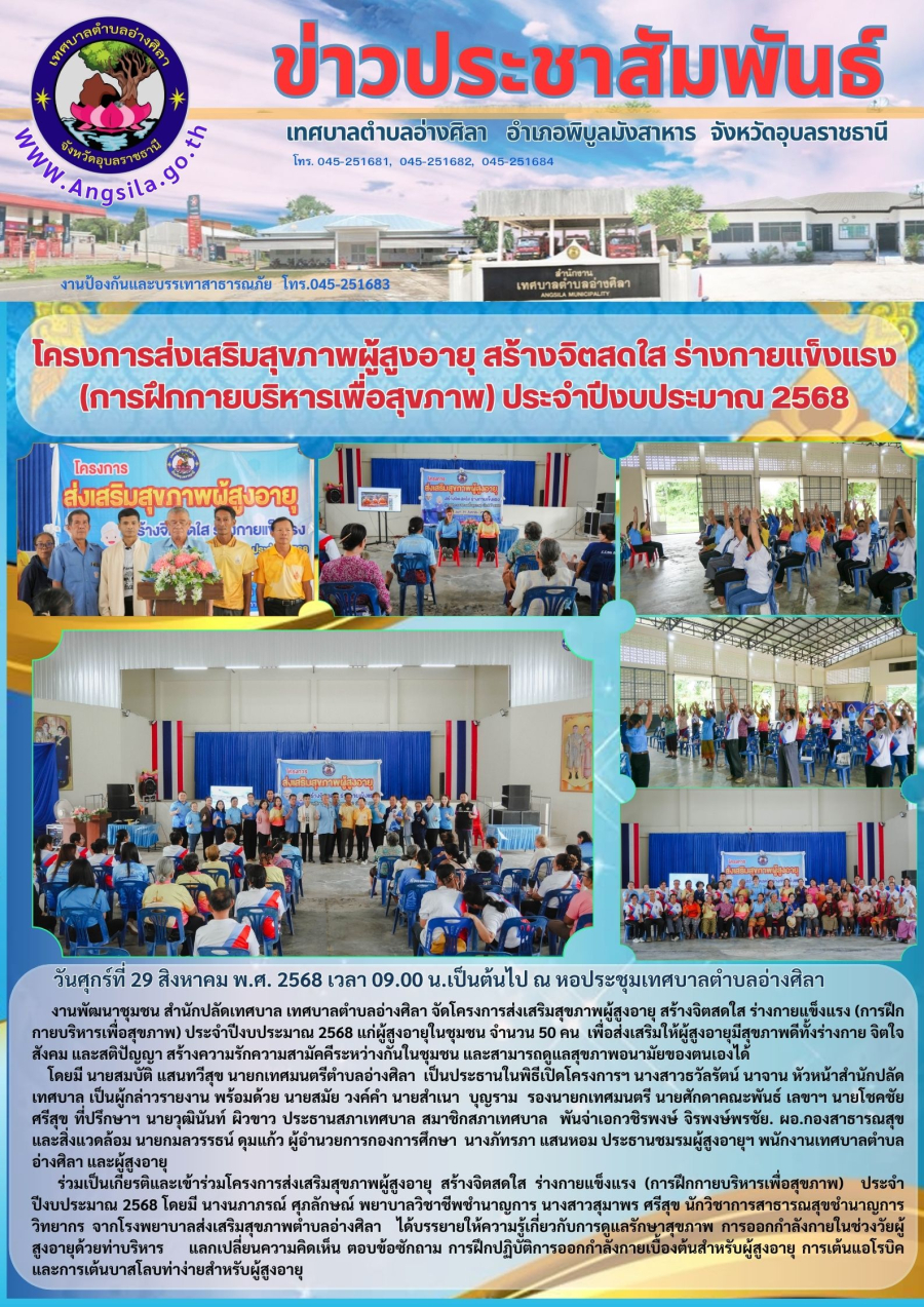 โครงการส่งเสริมสุขภาพผู้สูงอายุ สร้างจิตสดใส ร่างกายแข็งแรง (การฝึกกายบริหารเพื่อสุขภาพ) ประจำปีงบประมาณ 2568