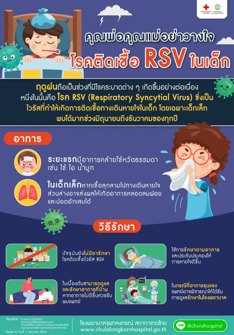 #ฤดูฝน เป็นช่วงที่มีโรคระบาดต่าง ๆ เกิดขึ้นอย่างต่อเนื่อง หนึ่งในนั้นคือ โรค #RSV (Respiratory Syncytial Virus) ซึ่งเป็นไวรัสที่ทำให้เกิดติดเชื้อทางเดินหายใจในเด็ก โดยเฉพาะในเด็กเล็ก พบได้มากช่วงมิถุนายนถึงธันวาคมของทุกปี‼️