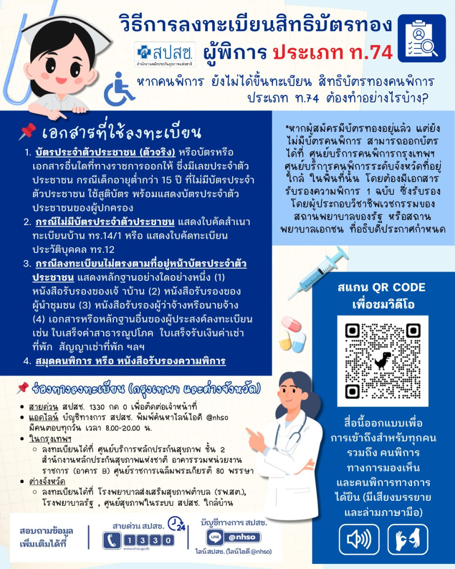 สิทธิบัตรทองผู้พิการ ท.74 เป็นสิทธิหลักประกันสุขภาพแห่งชาติ ที่ครอบคลุม
